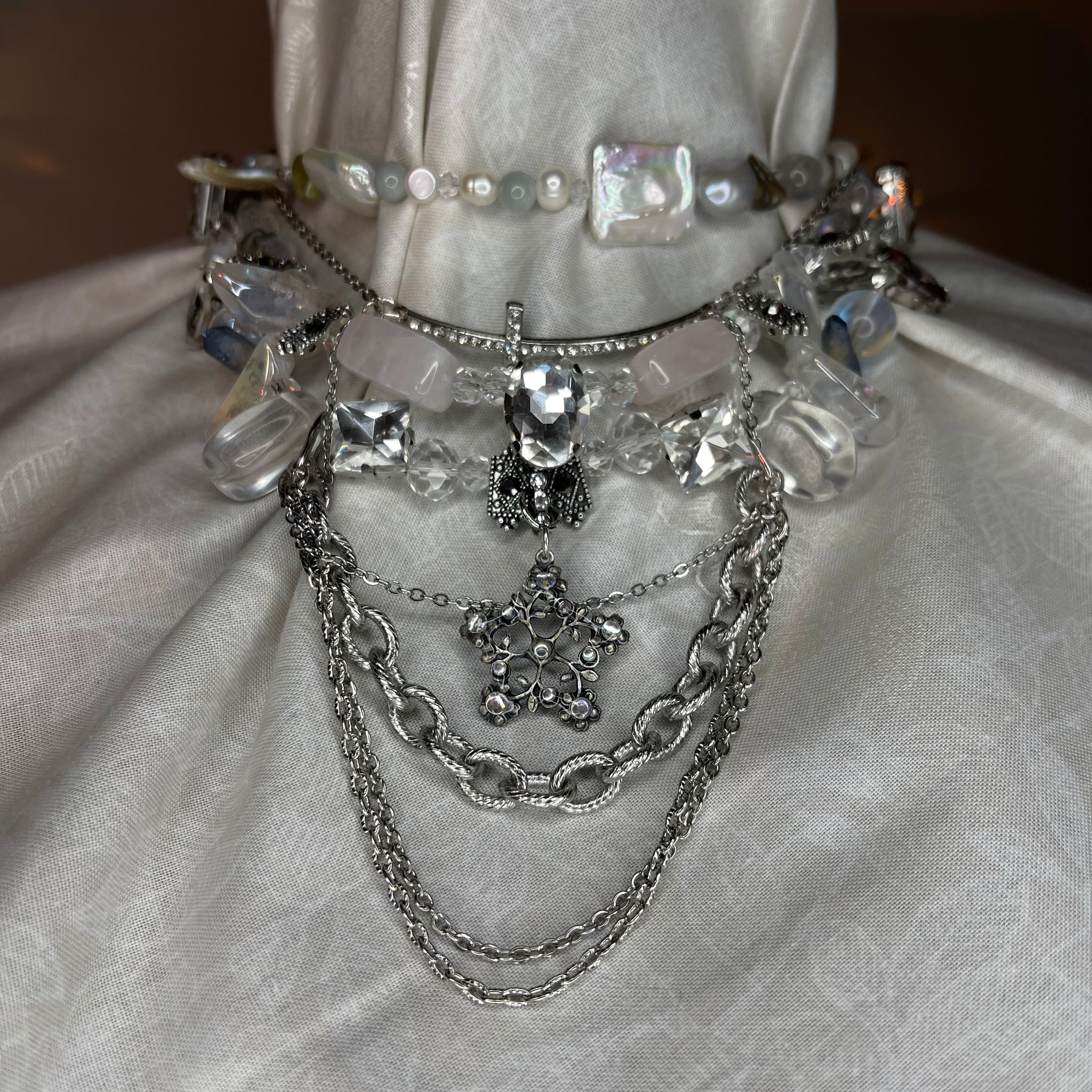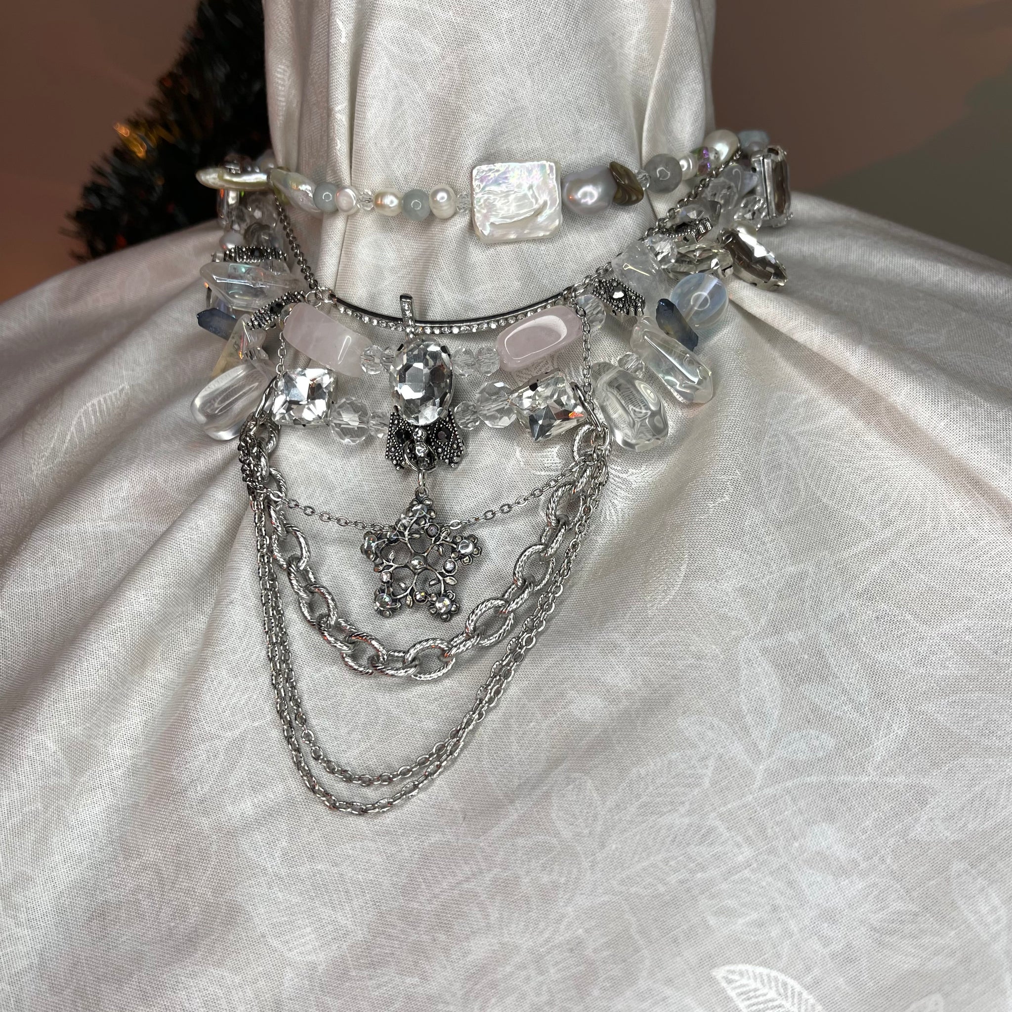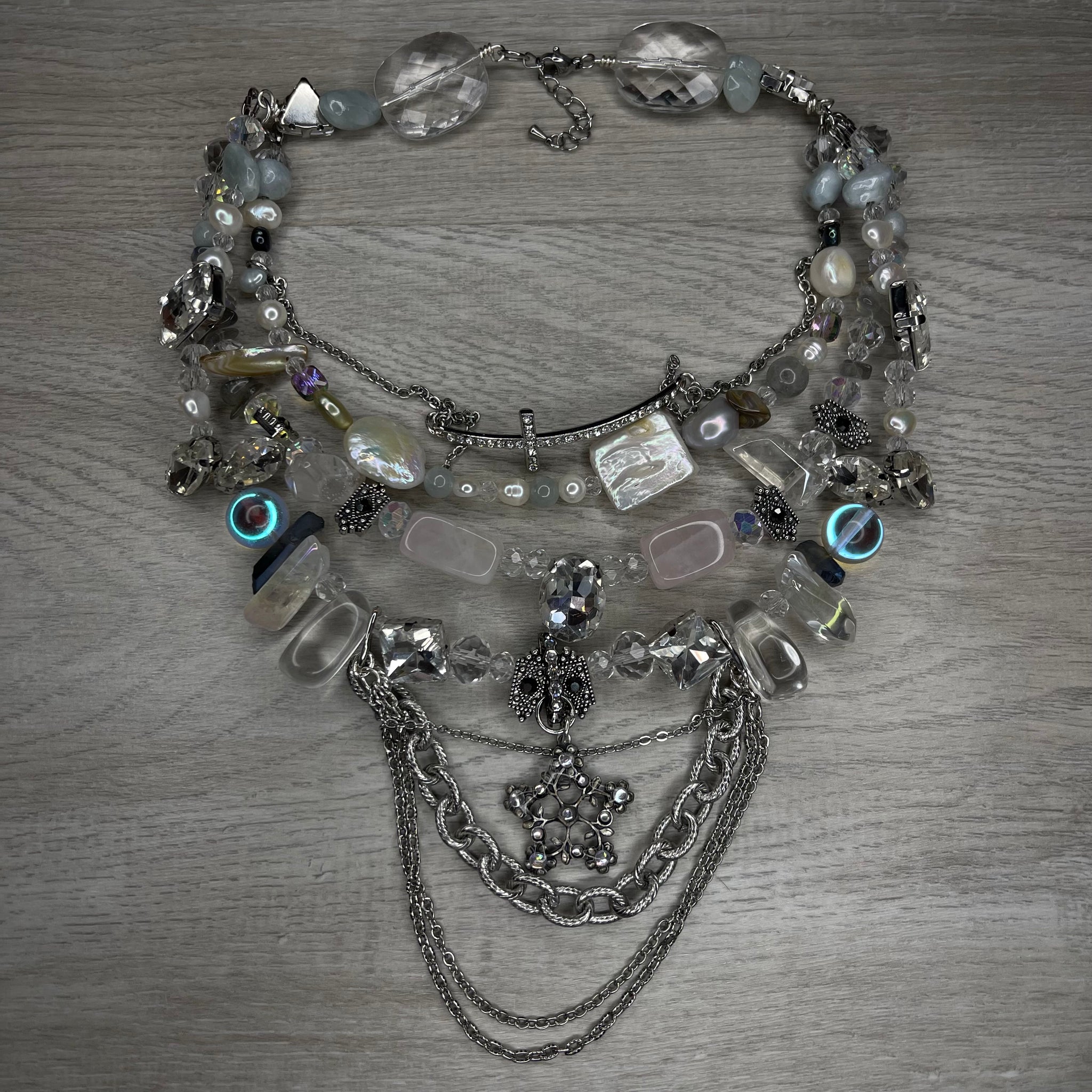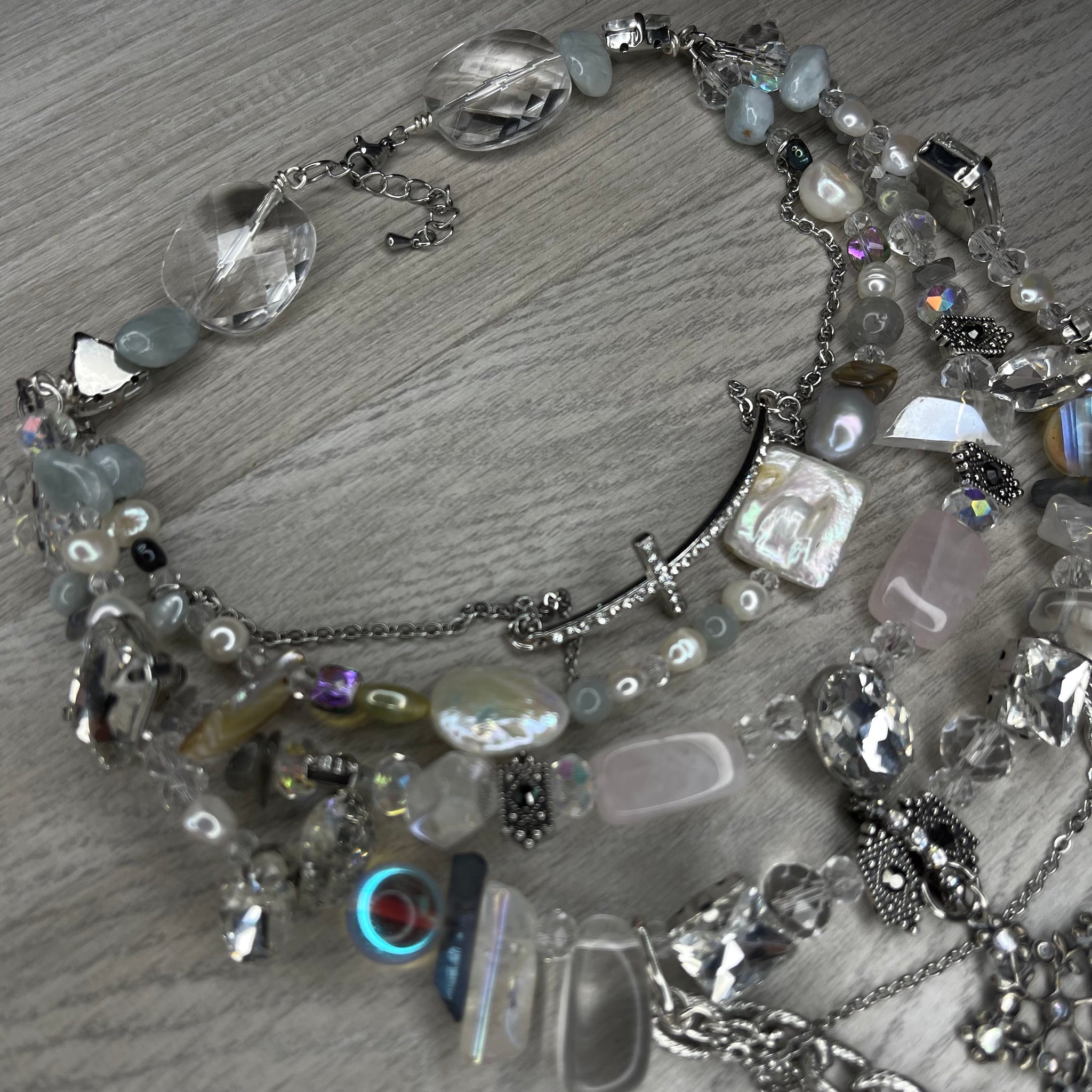 Made with: Freshwater pearls, Cloudy Quartz, Clear Quartz, Shell, Metal, Stainless steel, Glass, Quartz and Resined pendant