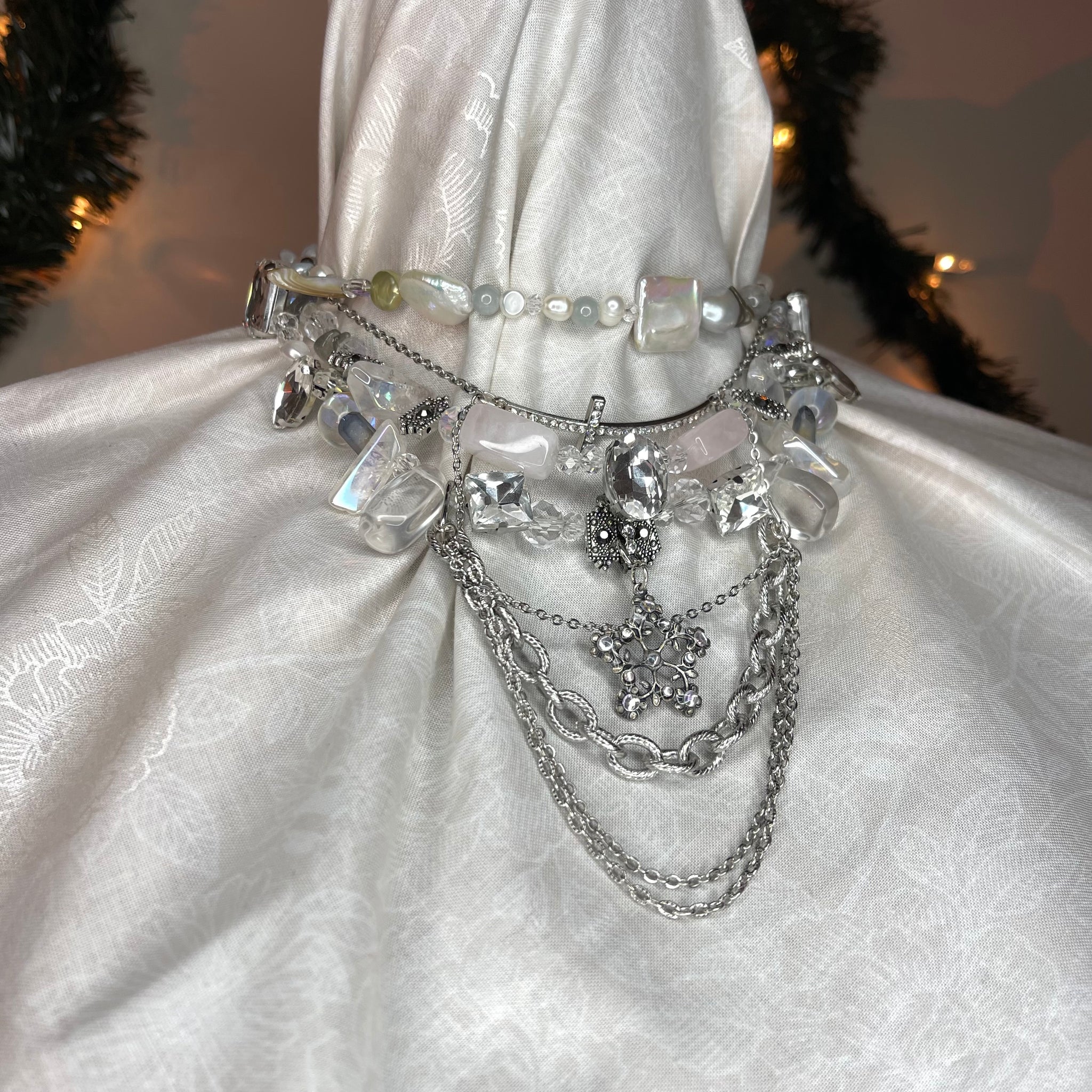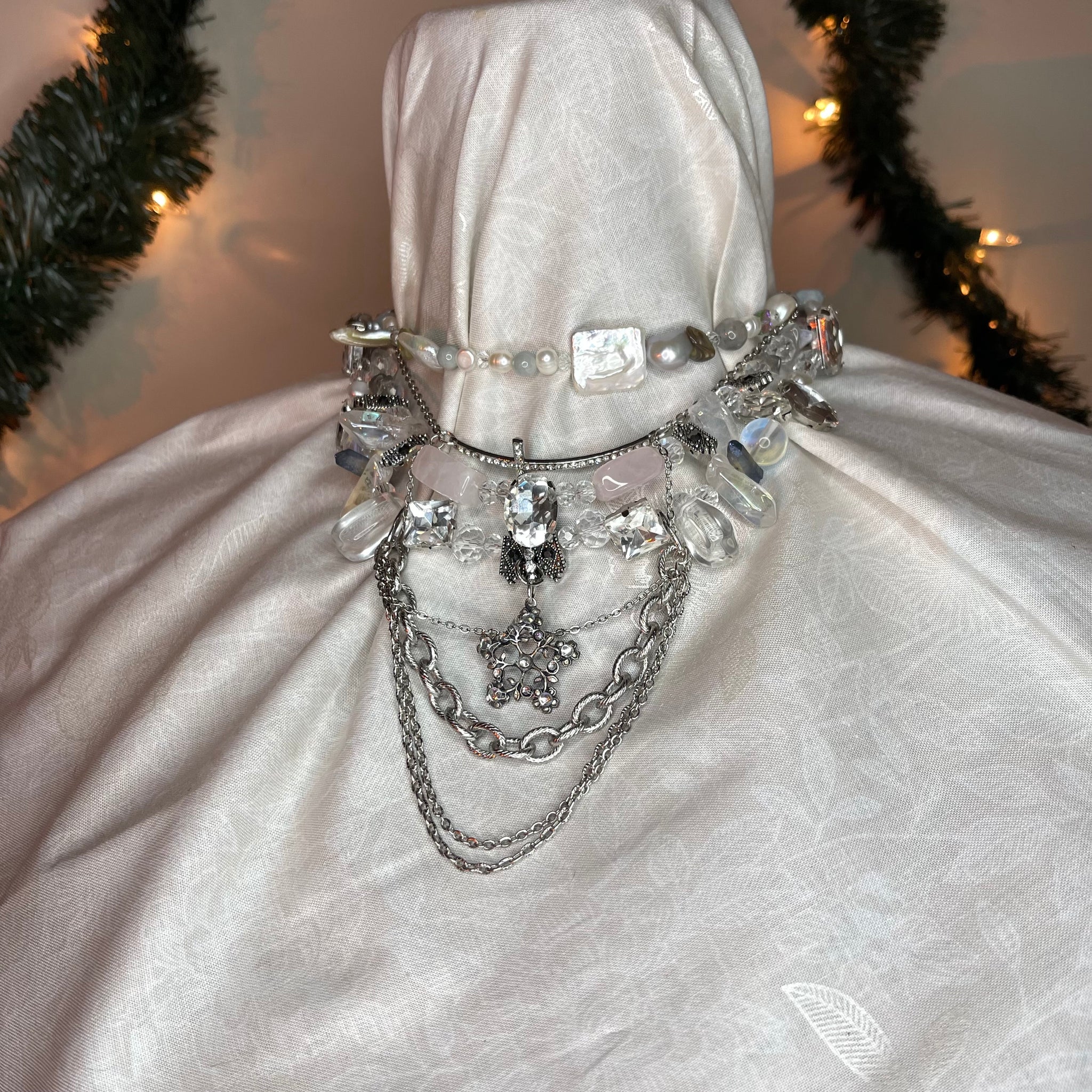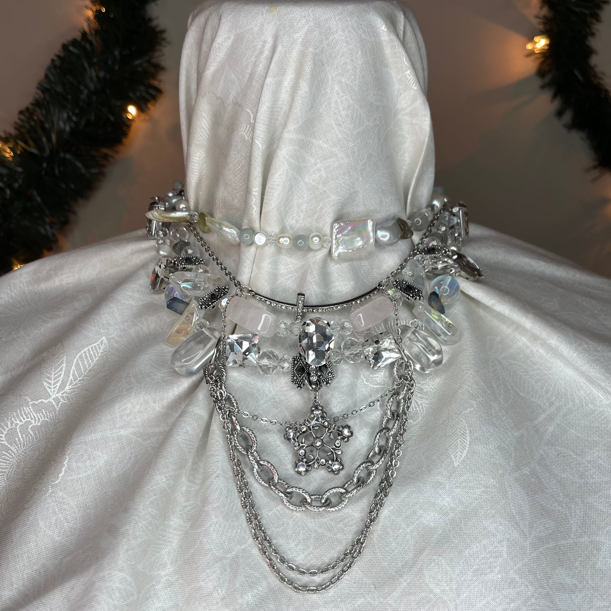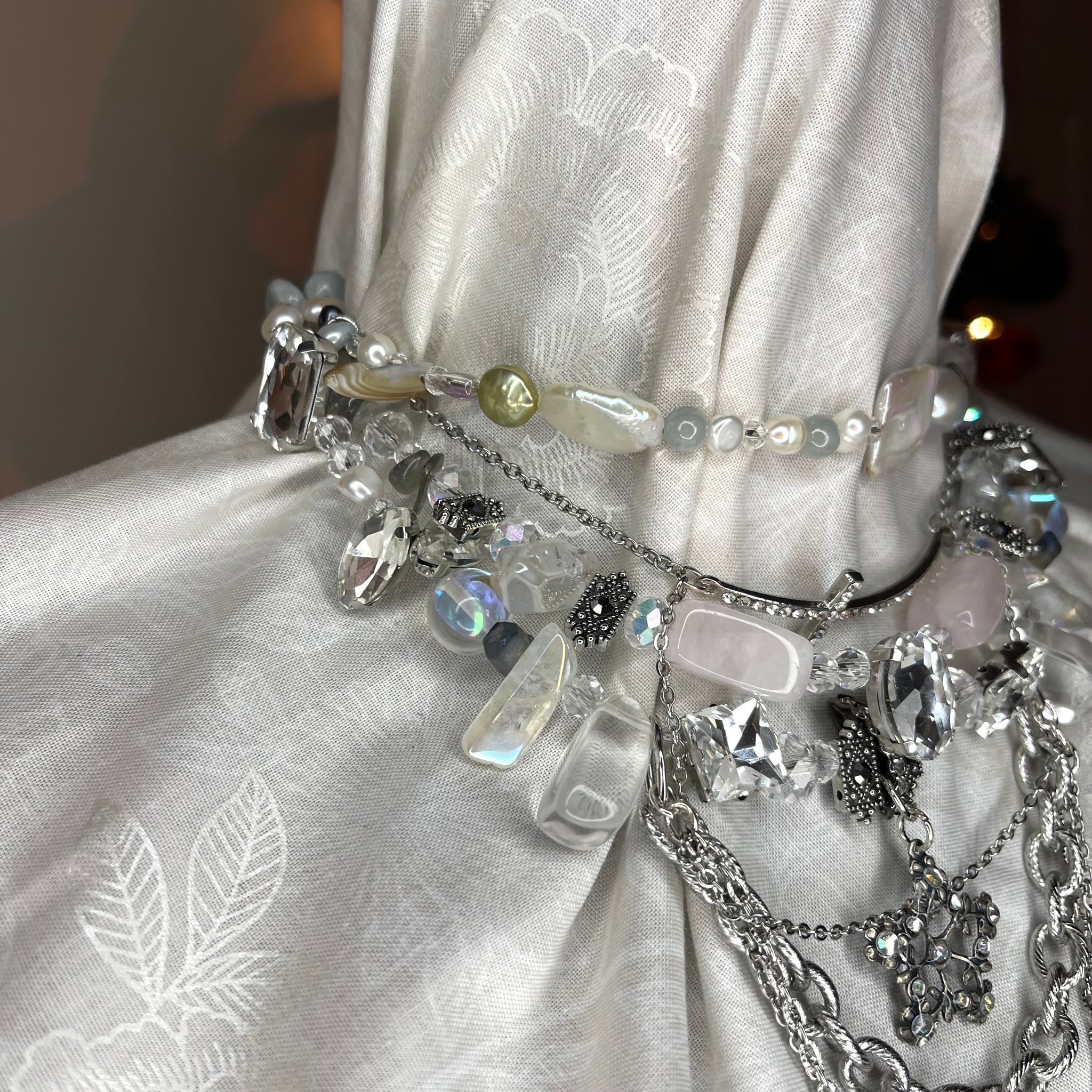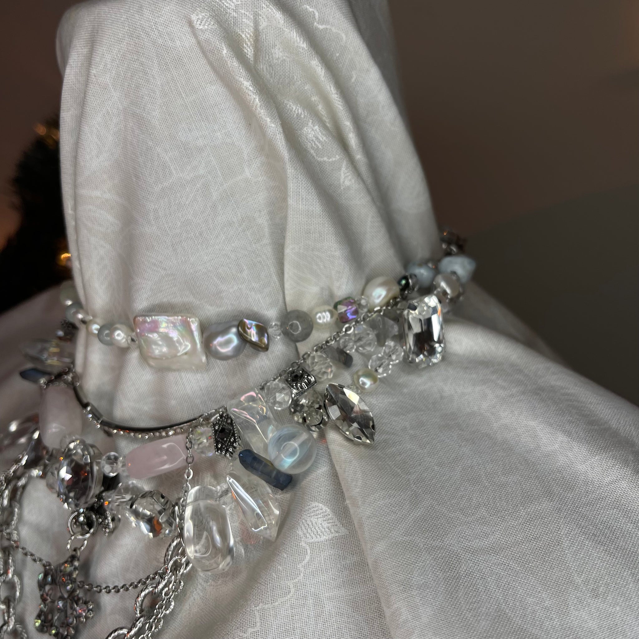 Made with: Freshwater pearls, Cloudy Quartz, Clear Quartz, Shell, Metal, Stainless steel, Glass, Quartz and Resined pendant