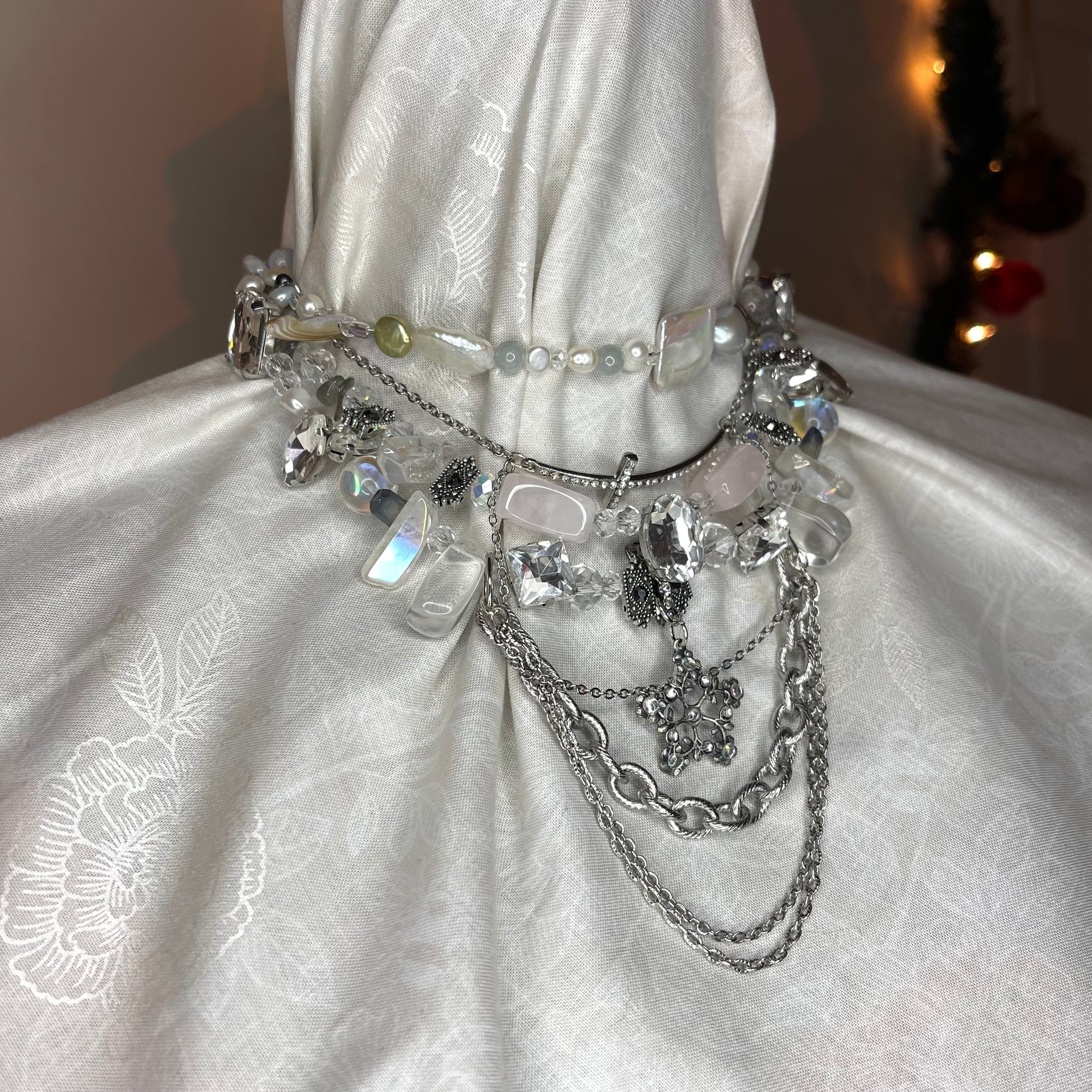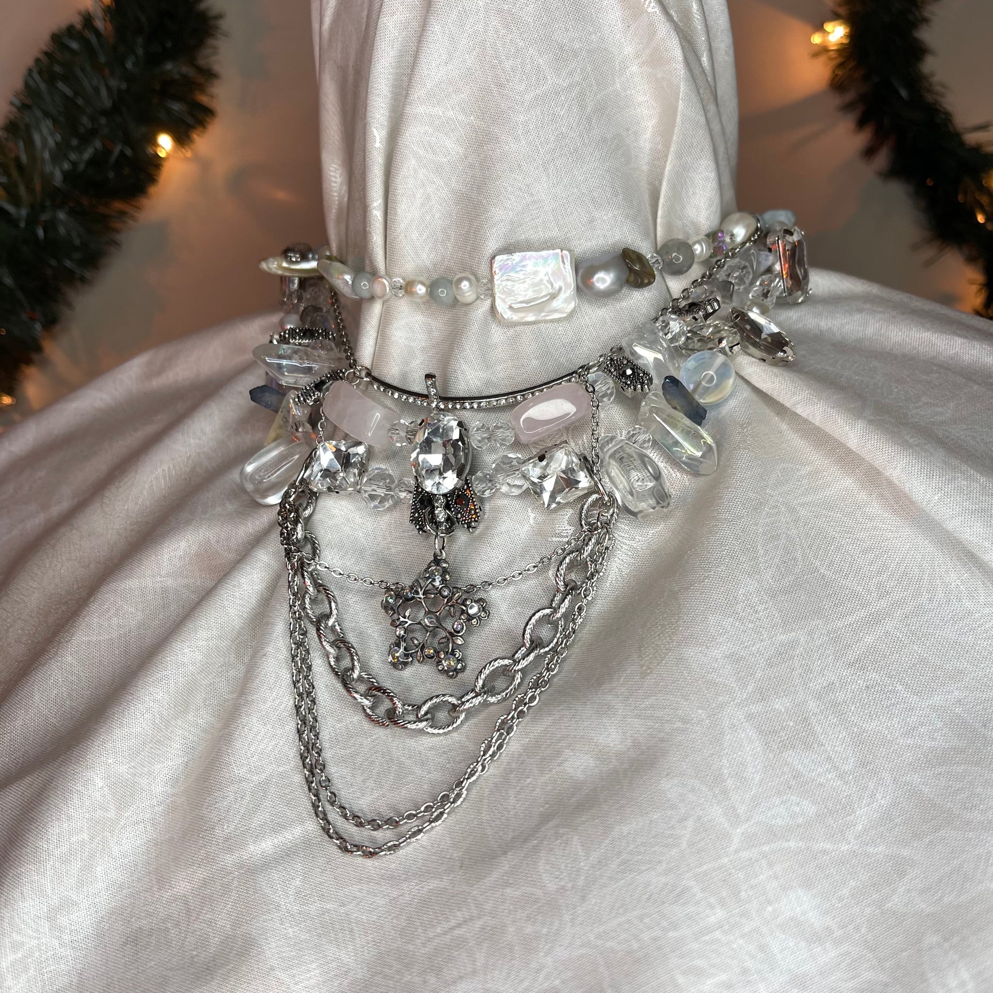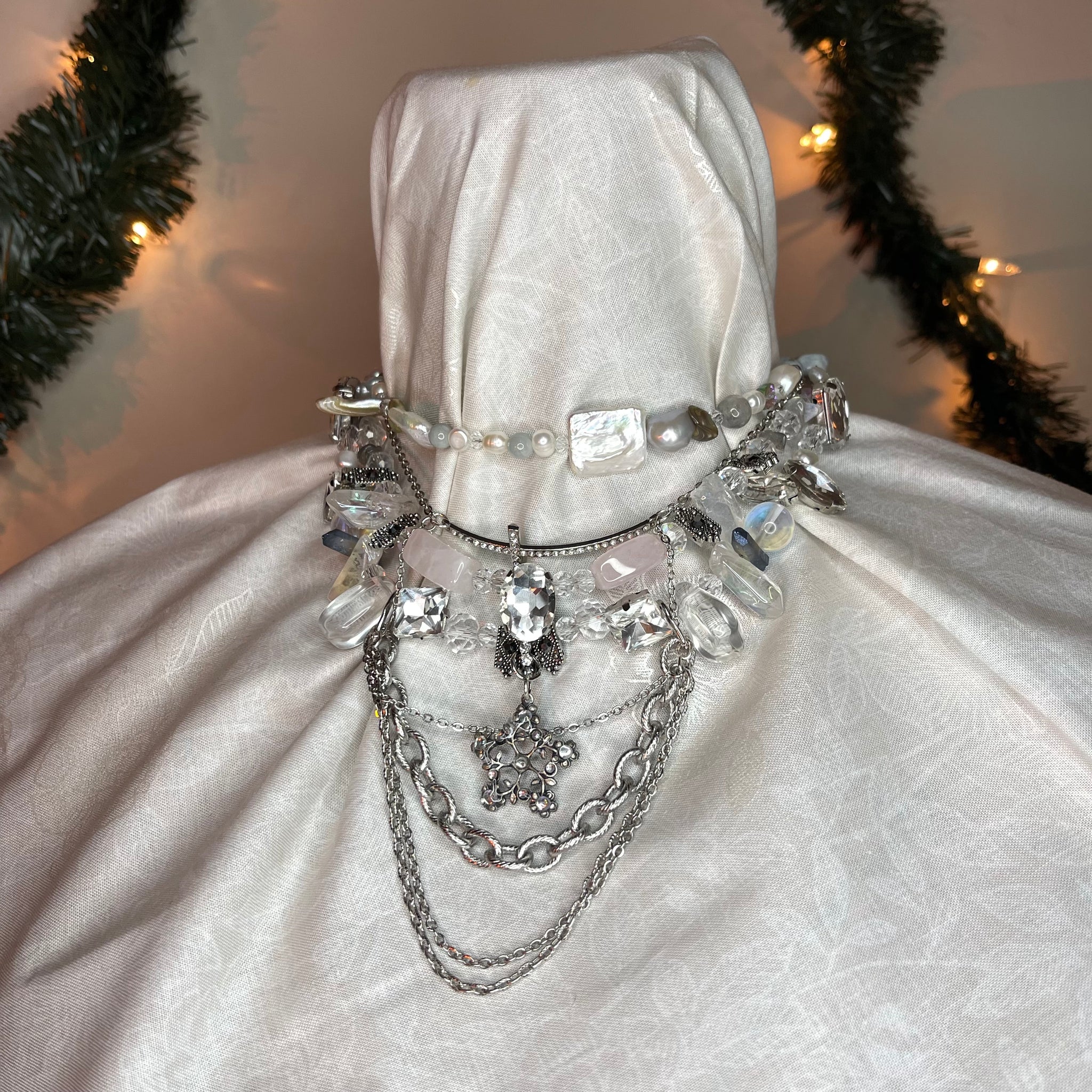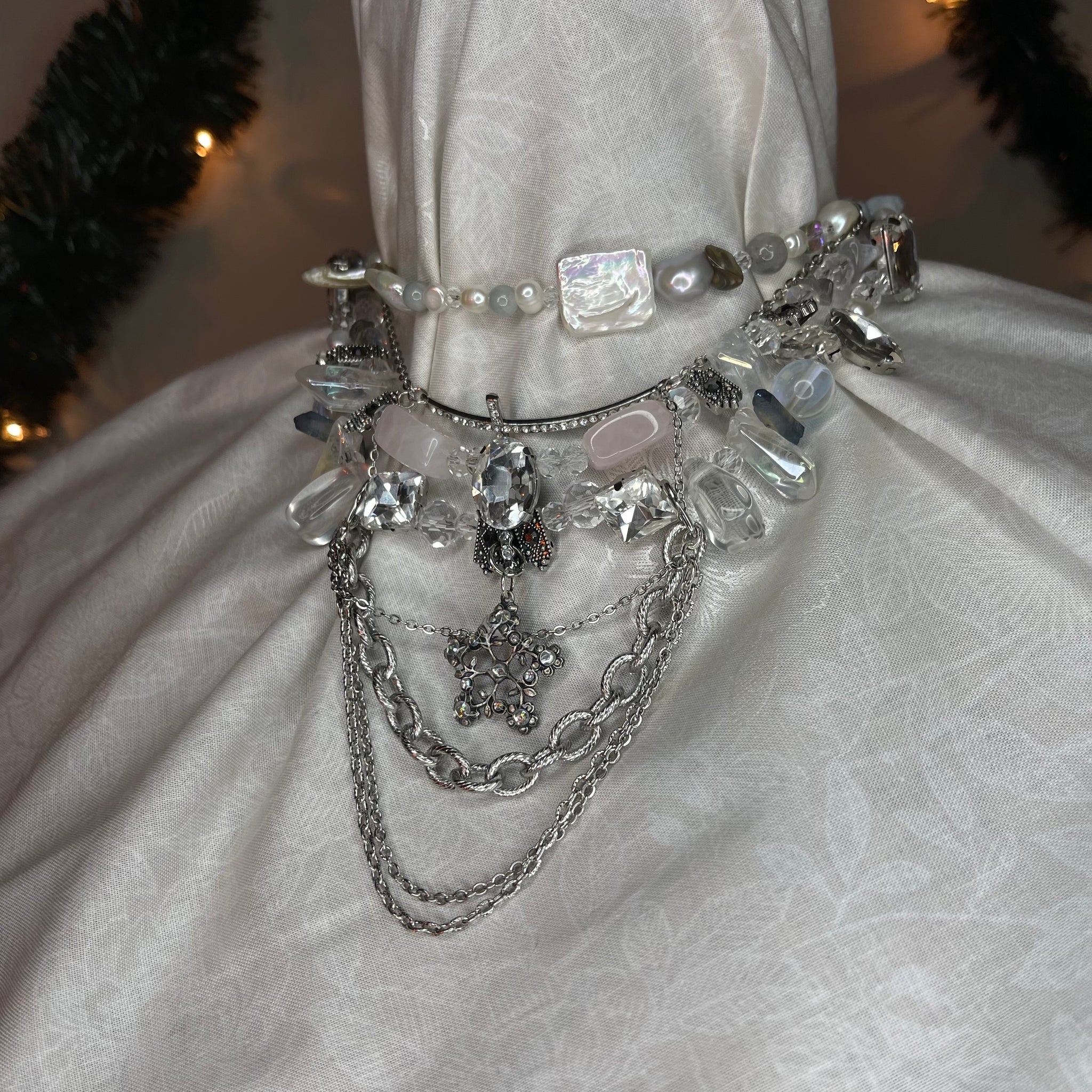 Made with: Freshwater pearls, Cloudy Quartz, Clear Quartz, Shell, Metal, Stainless steel, Glass, Quartz and Resined pendant