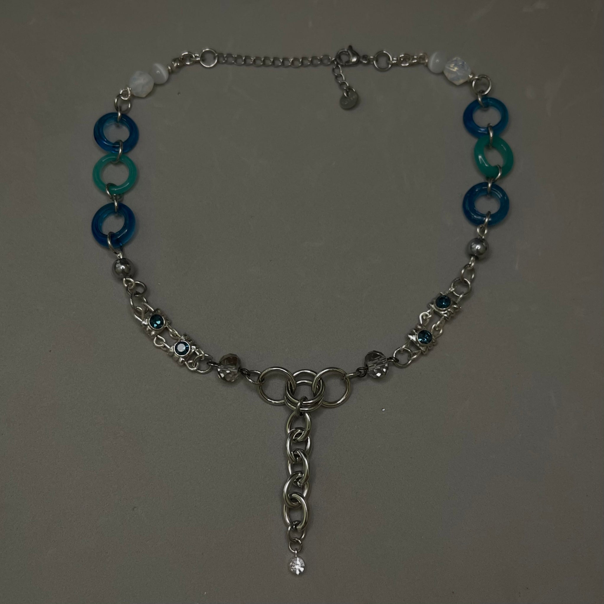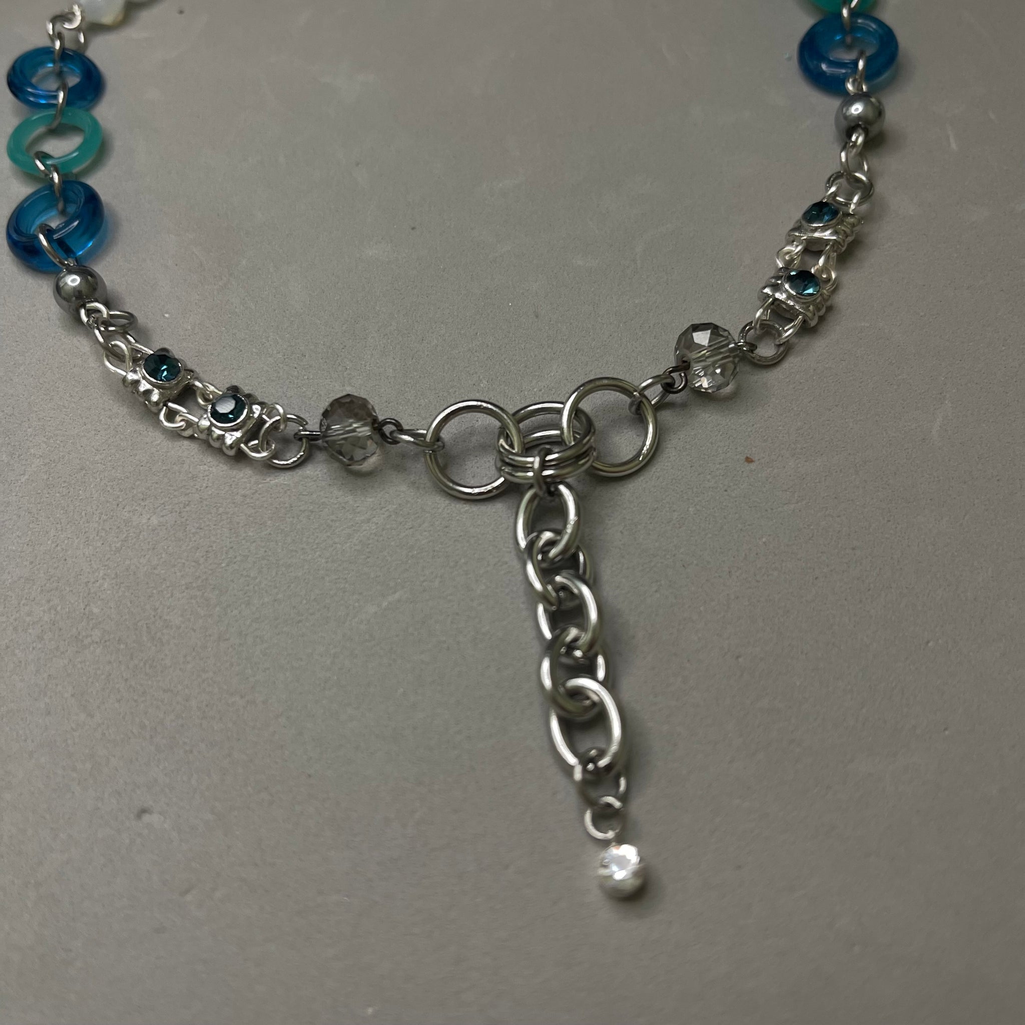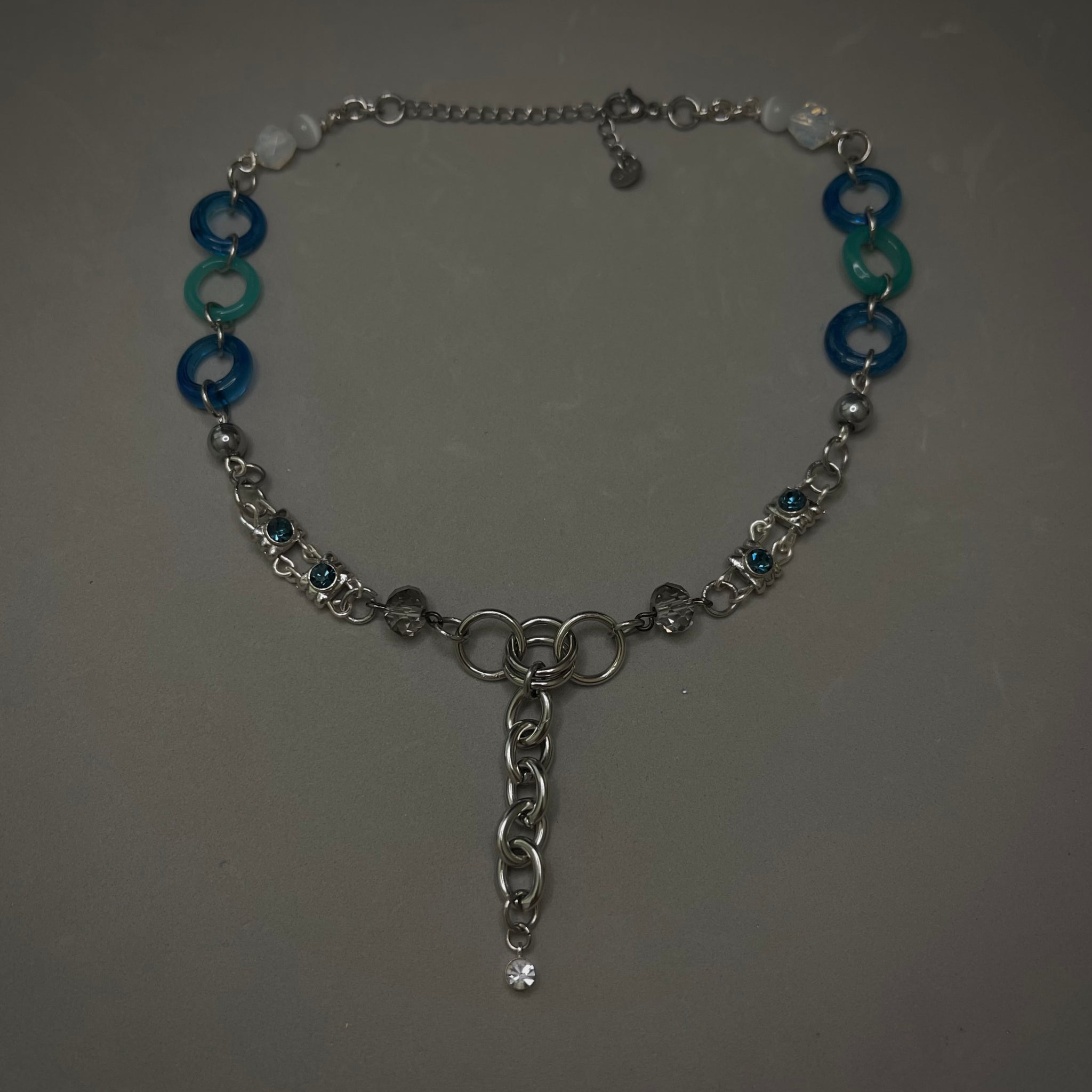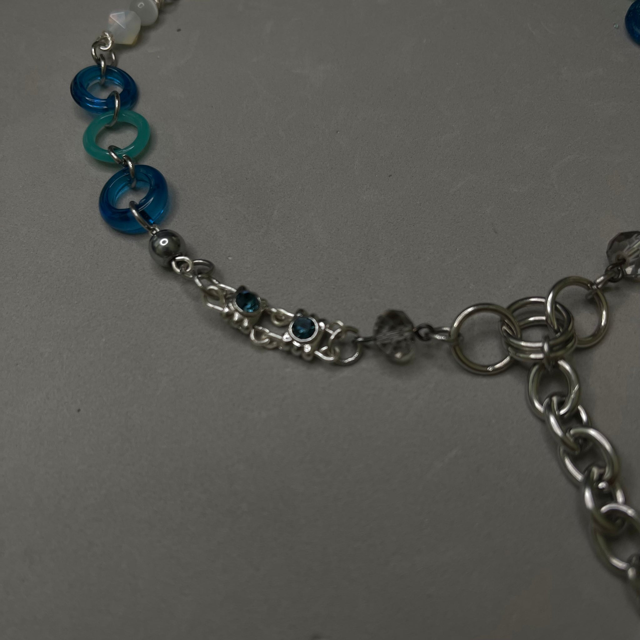 Made with: Blown glass rings, Stainless steel, cats eye, opal, hematite, glass and rhinestone.