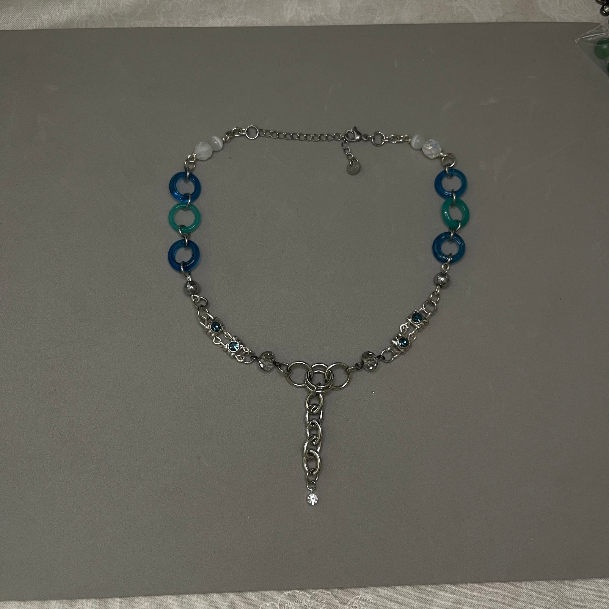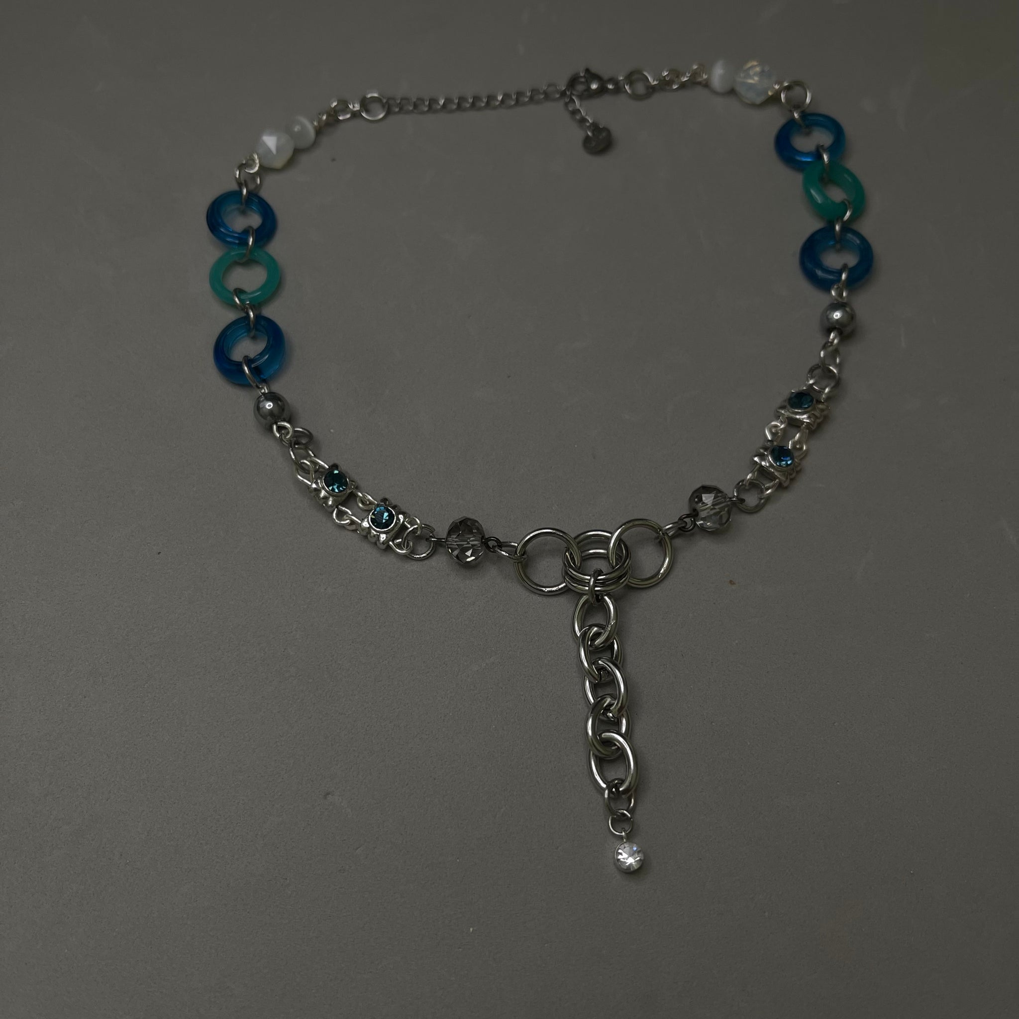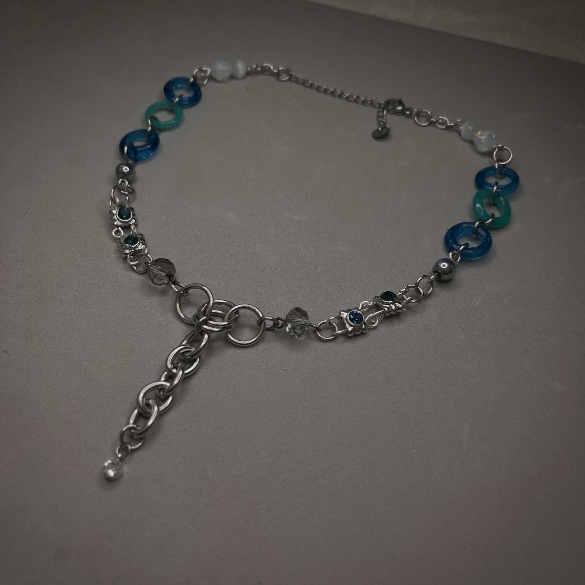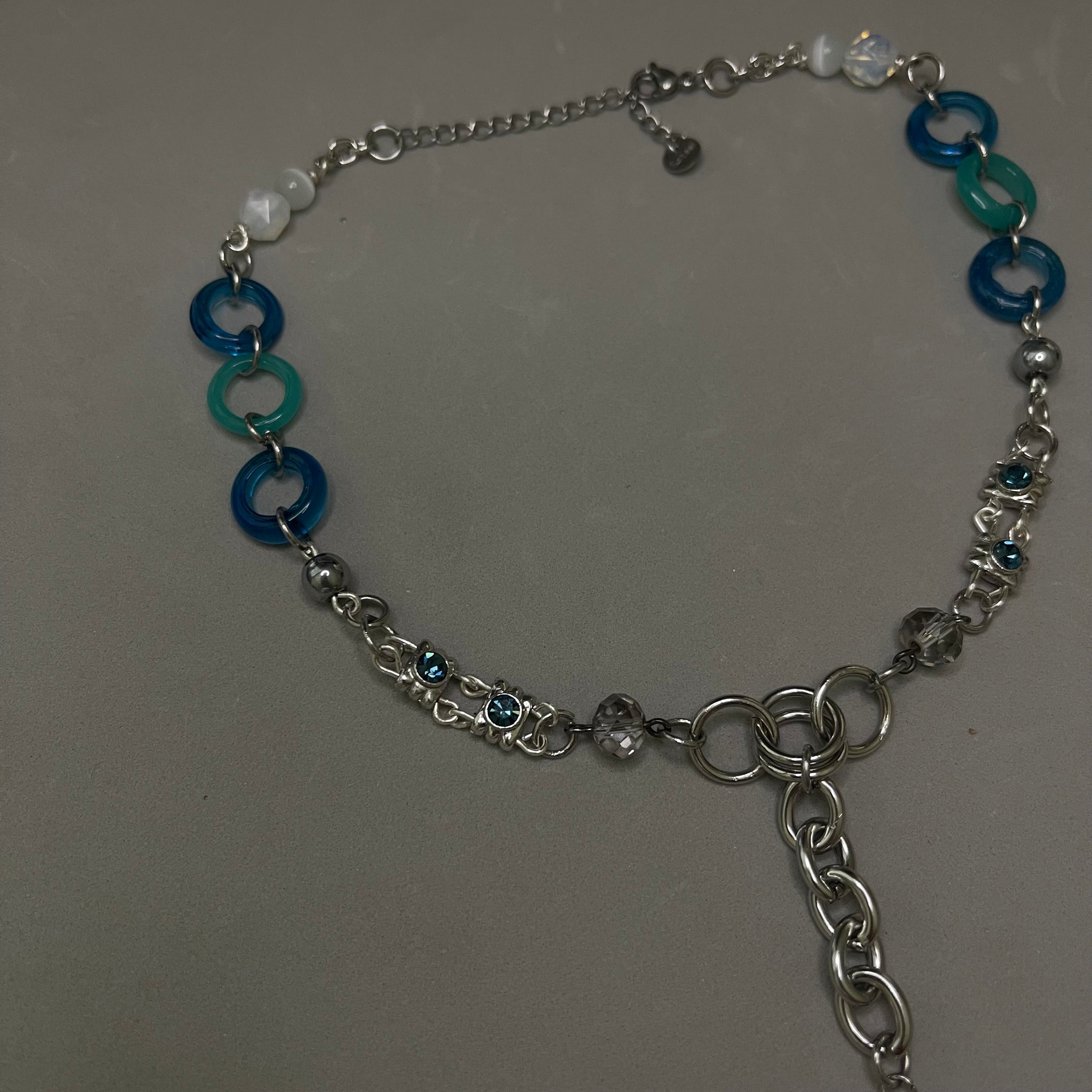 Made with: Blown glass rings, Stainless steel, cats eye, opal, hematite, glass and rhinestone.