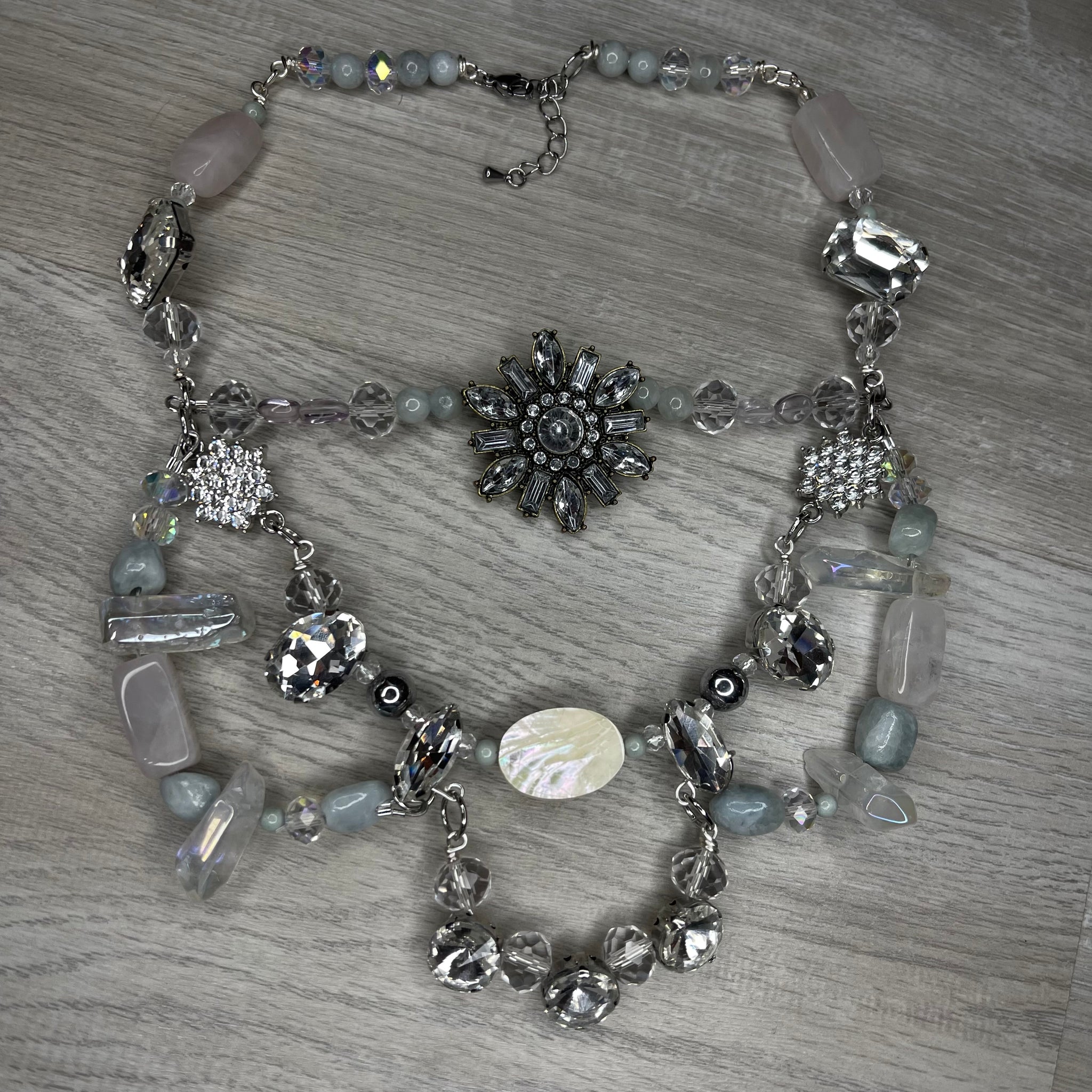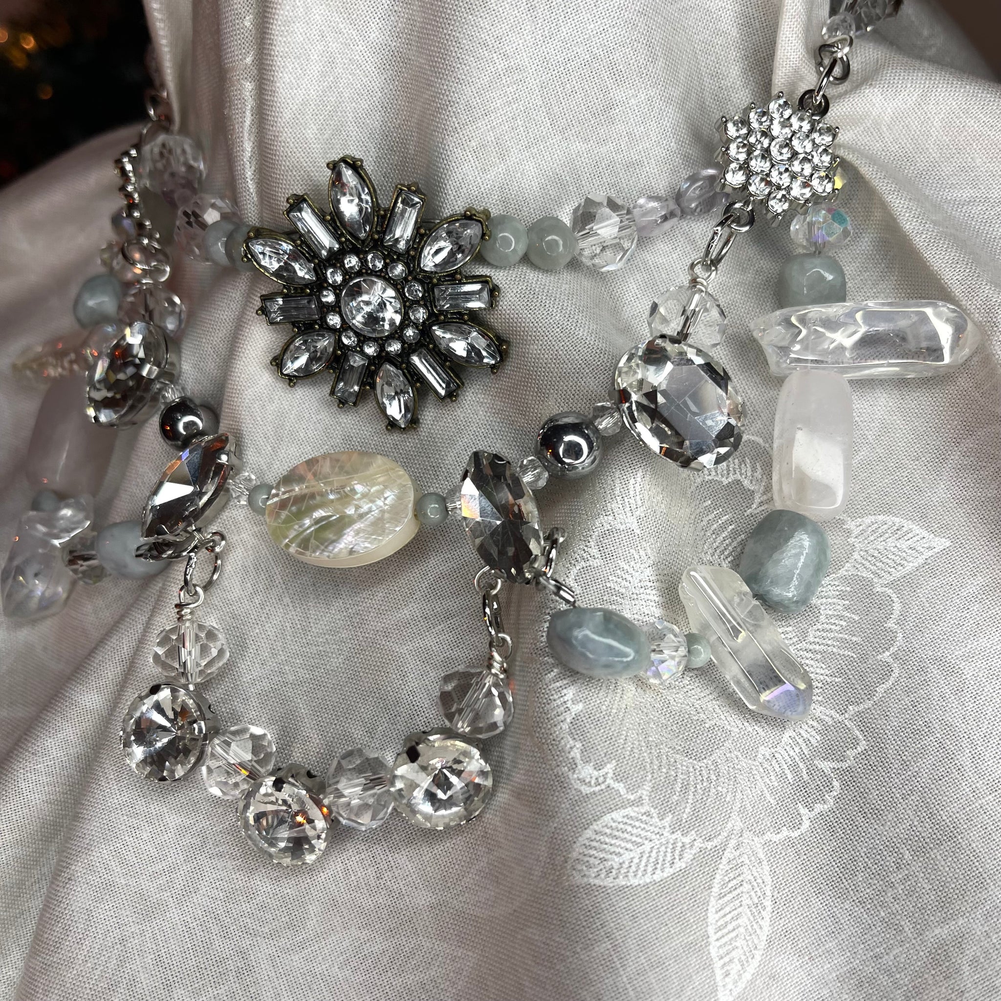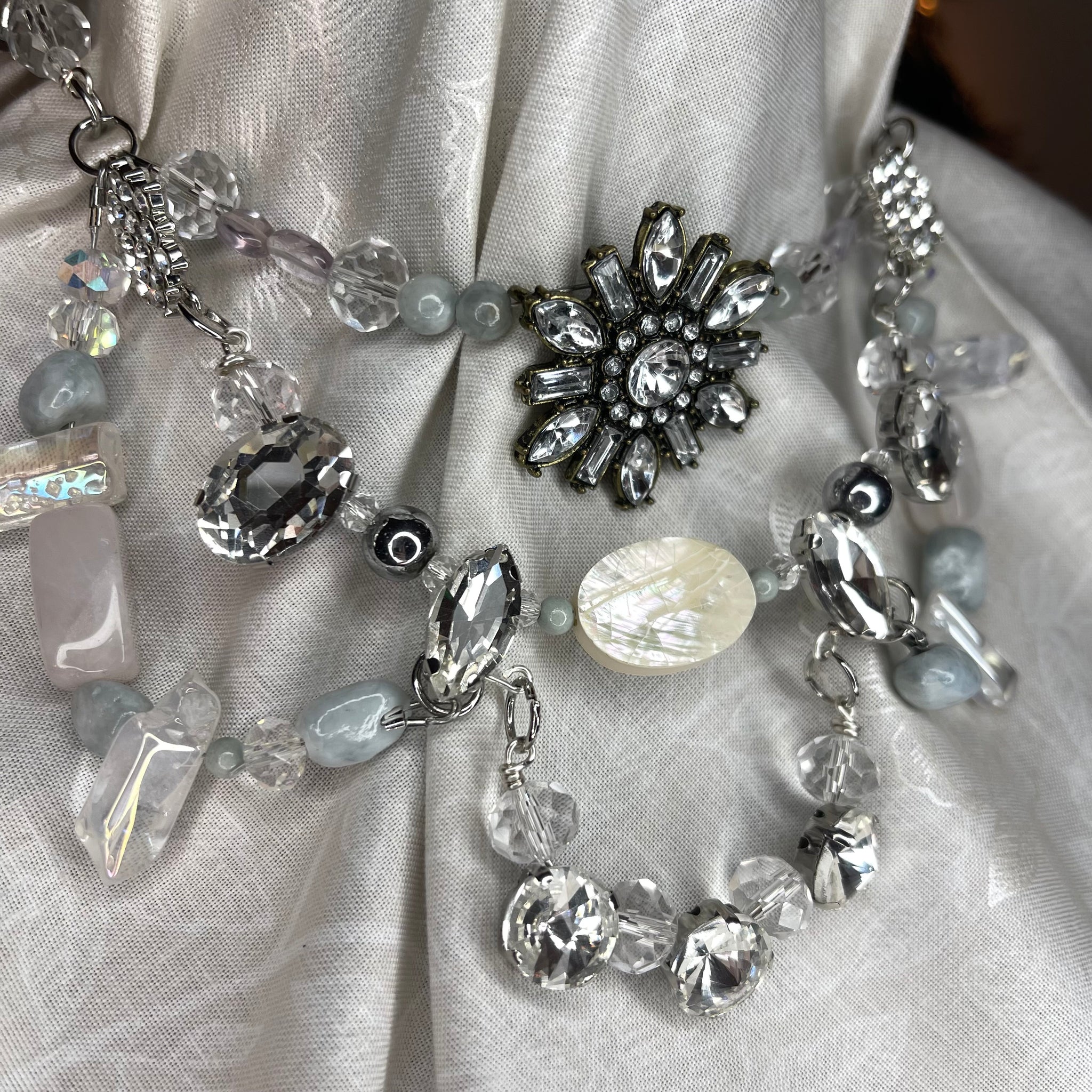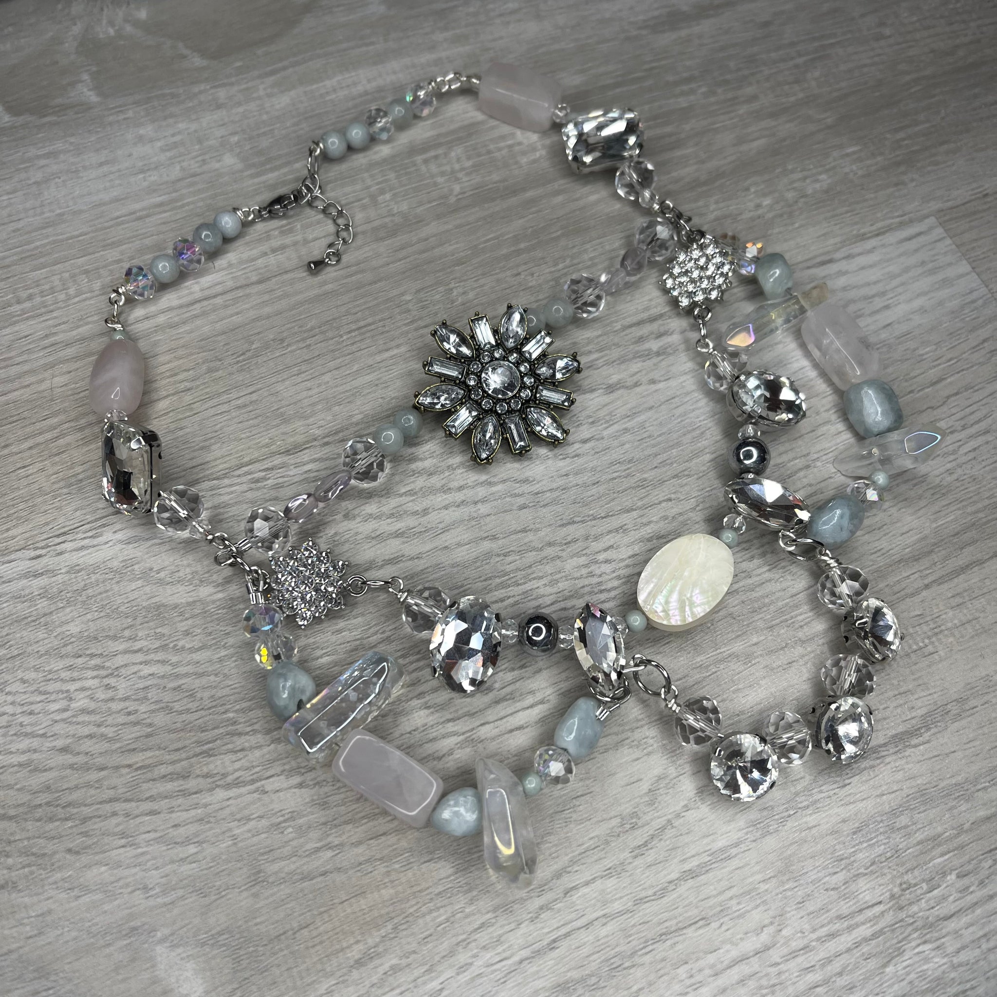 Made with: Stainless steel, Clear Quartz, Cloudy quartz, Quartz, Shell, Hematite and Glass.