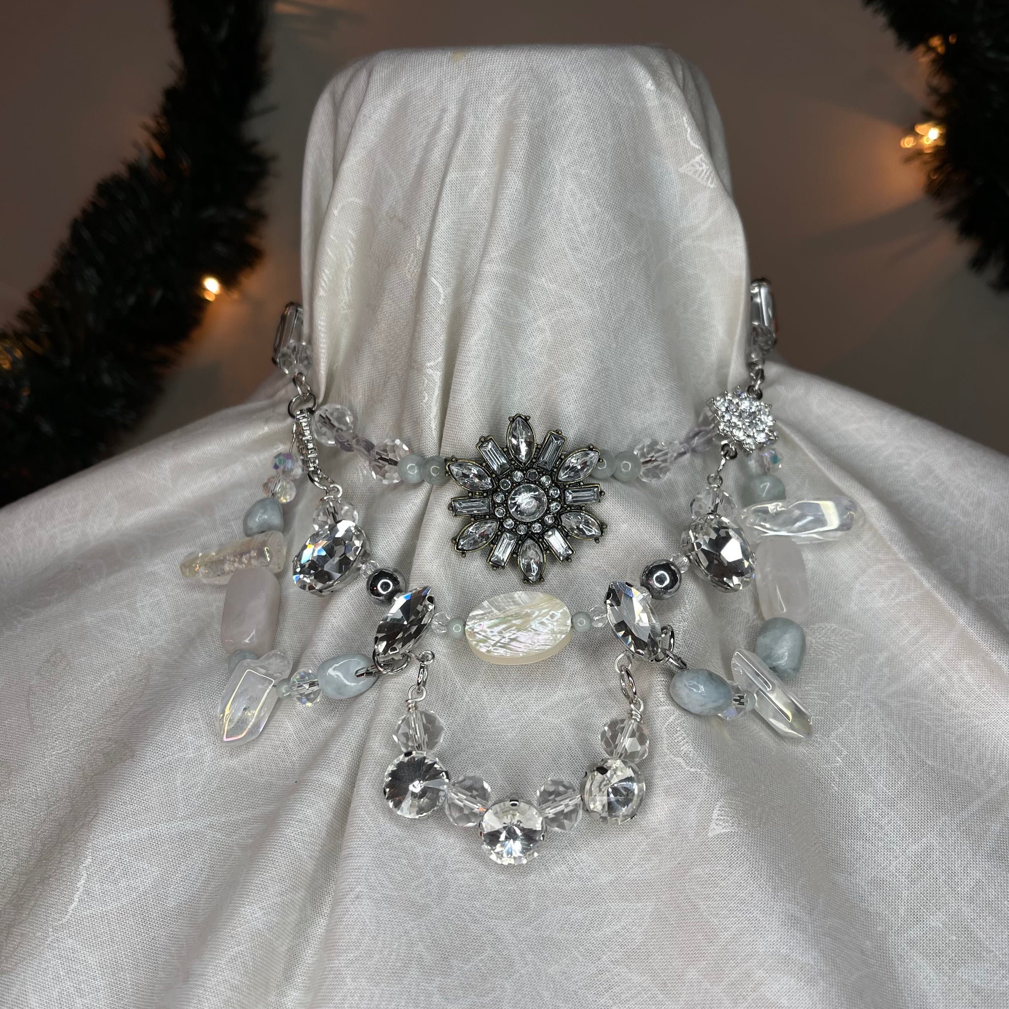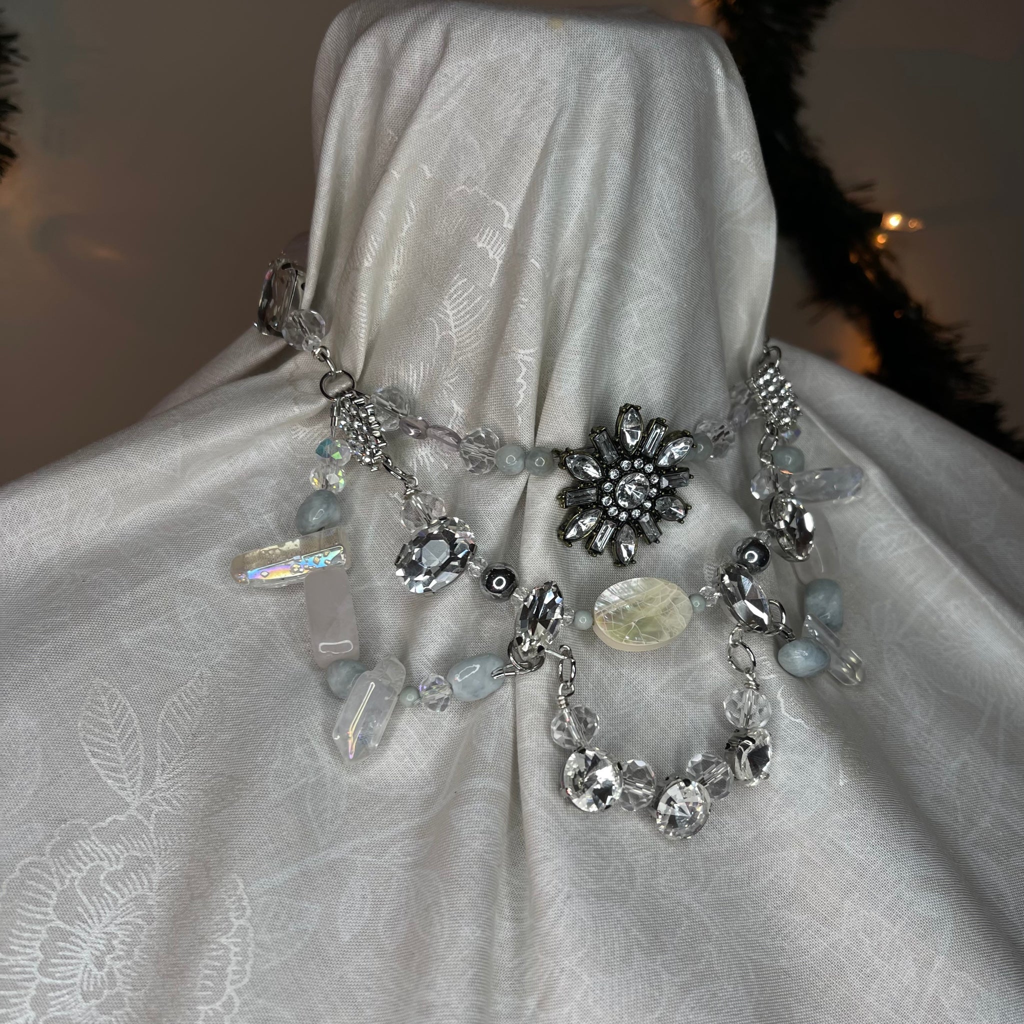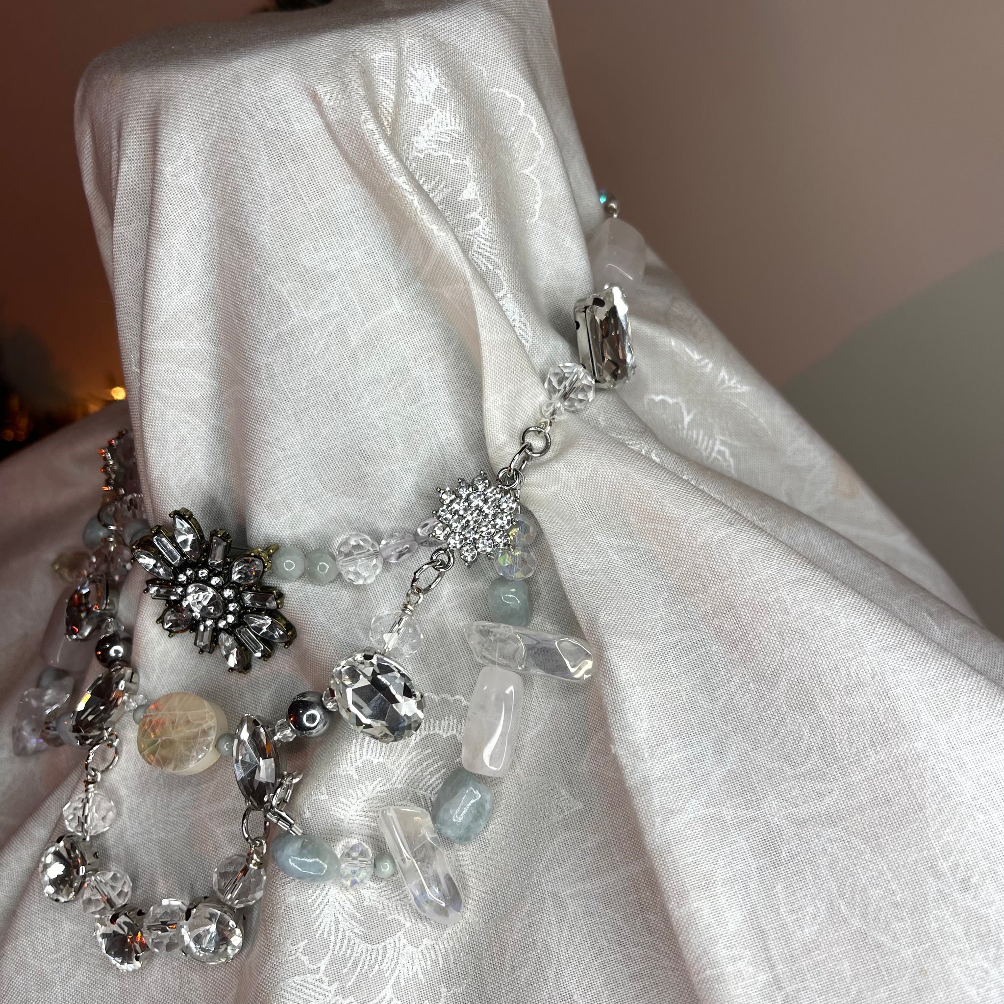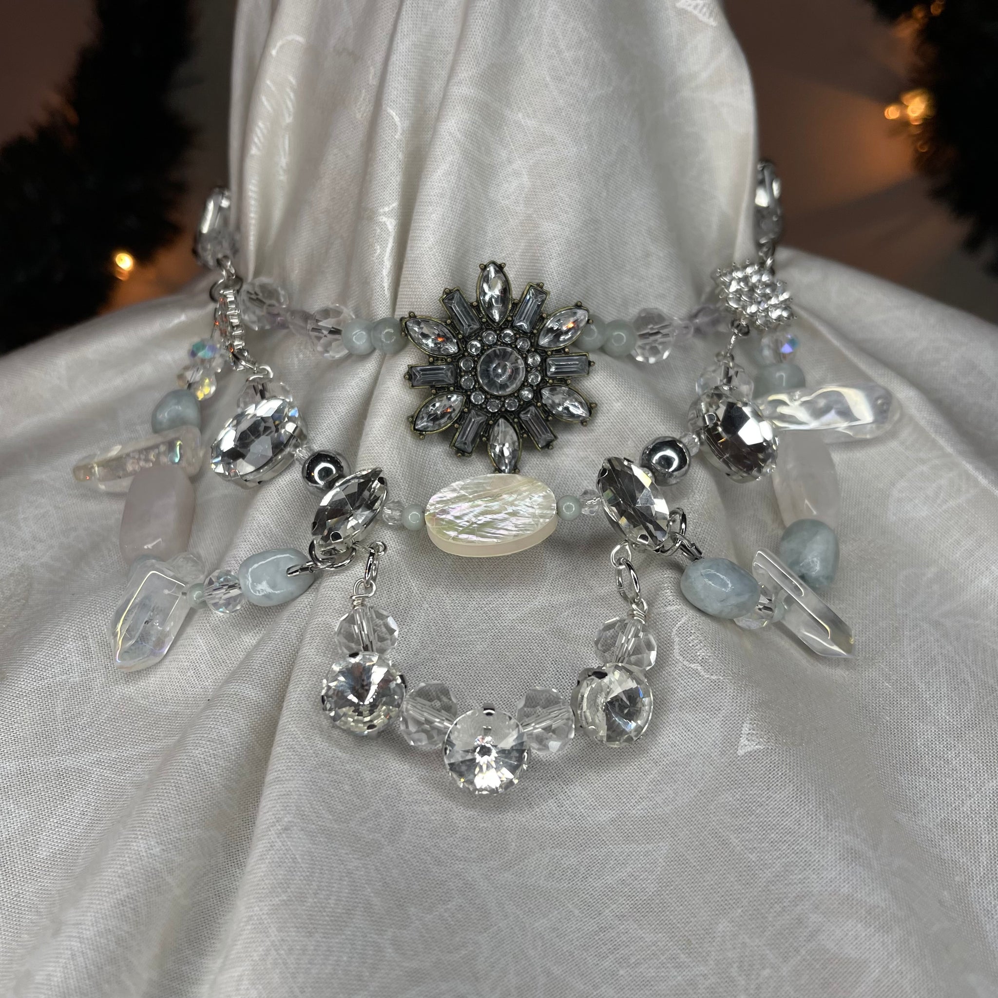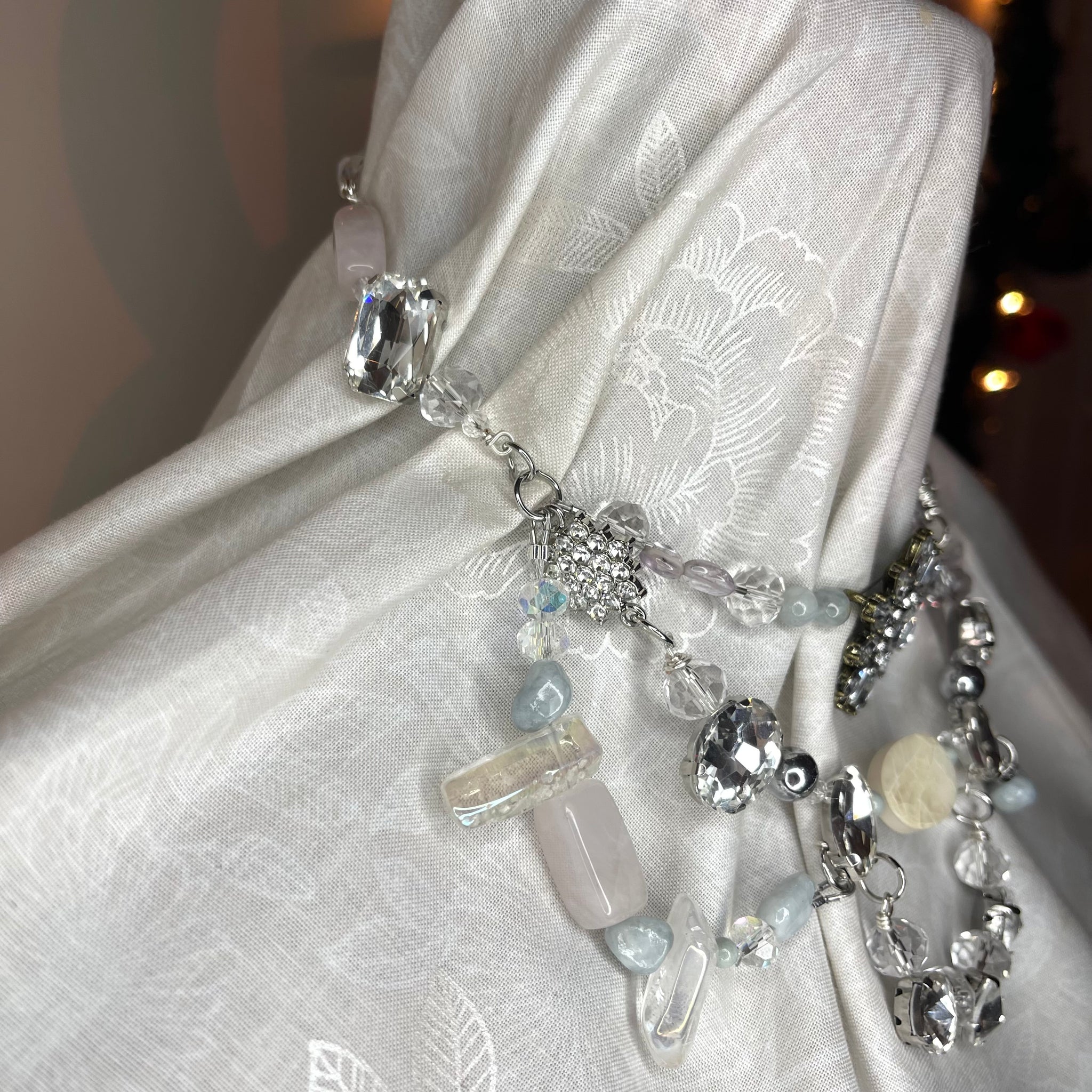 Made with: Stainless steel, Clear Quartz, Cloudy quartz, Quartz, Shell, Hematite and Glass.