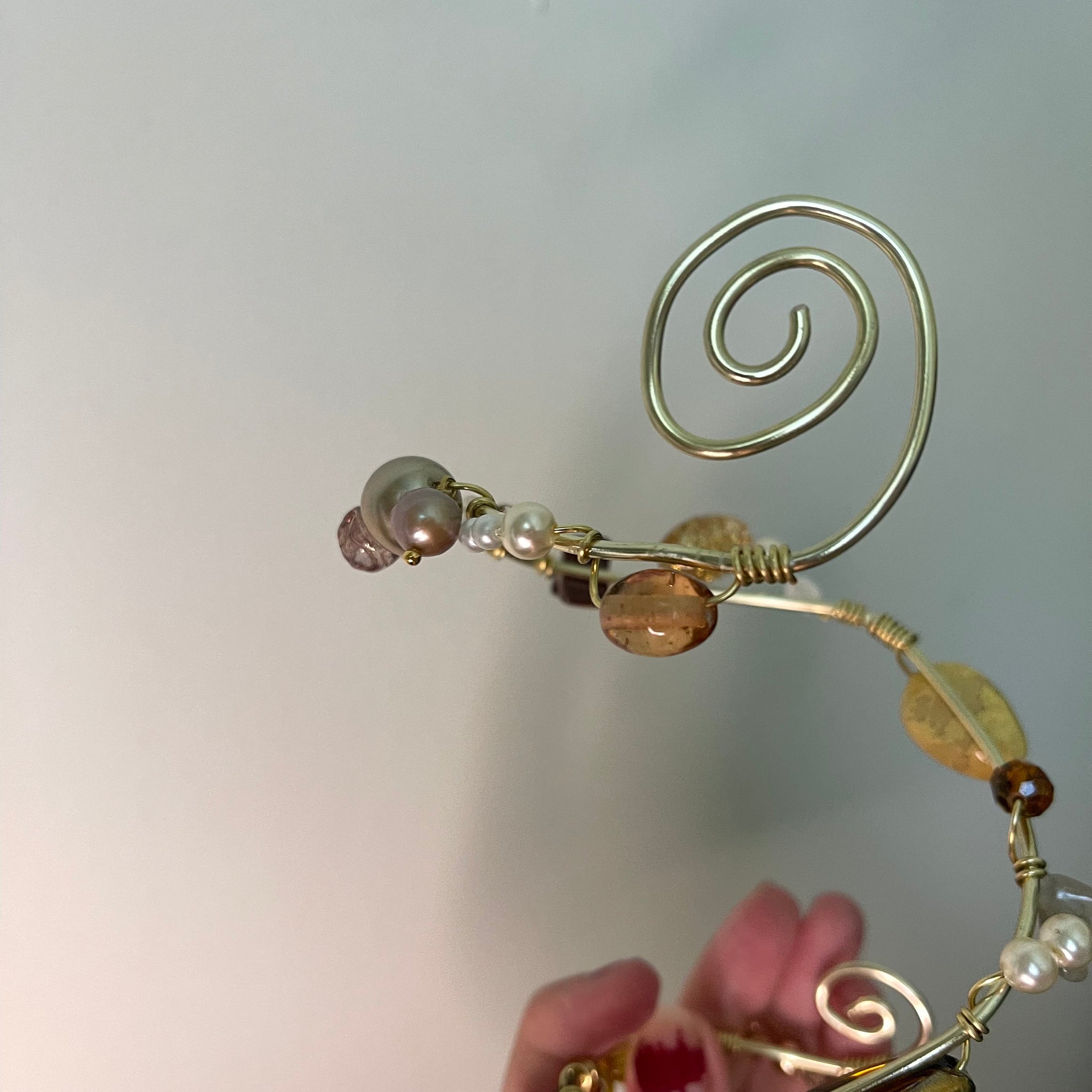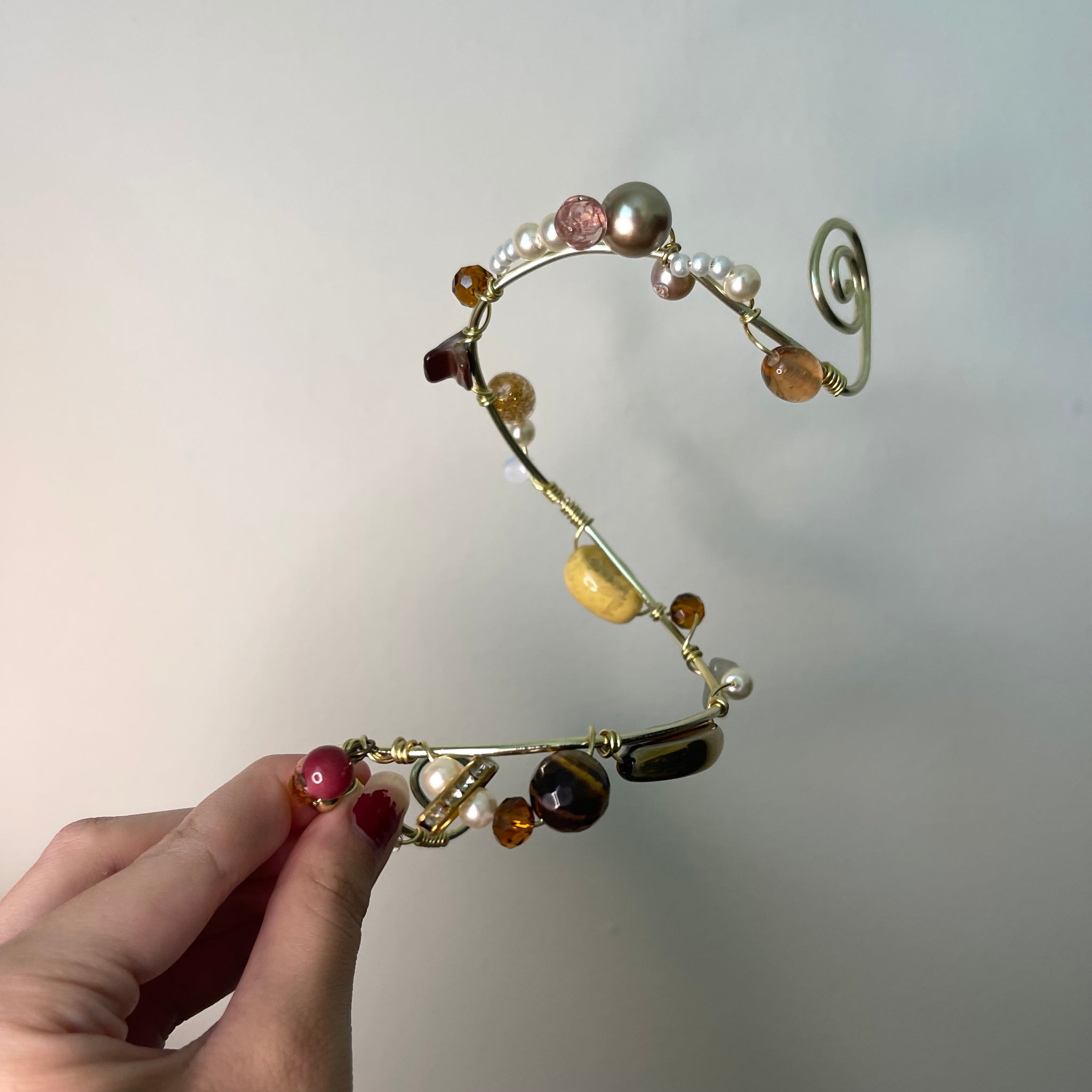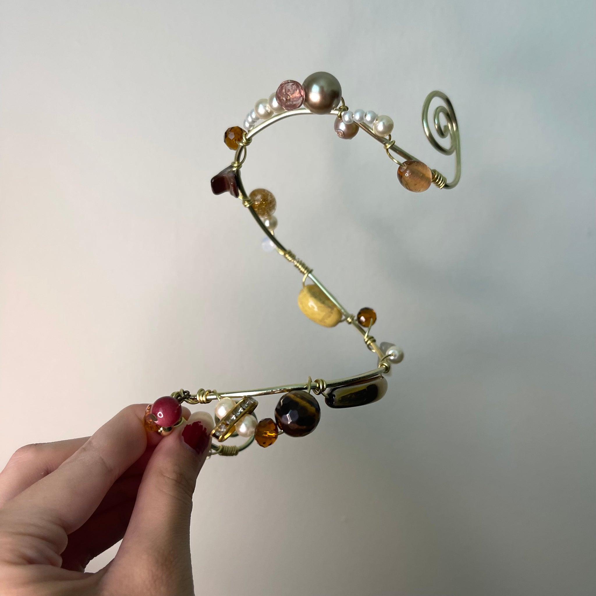 Made with: Glass, Shell, Tigers eye, Jasper, labradorite, Aluminum and metals.