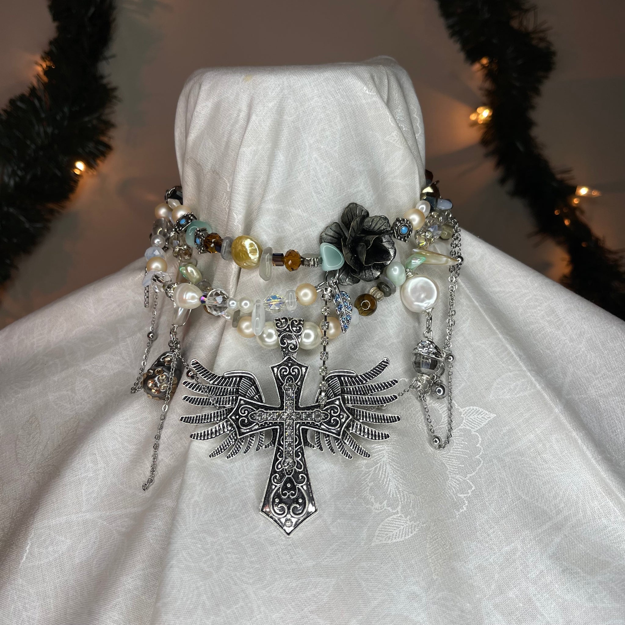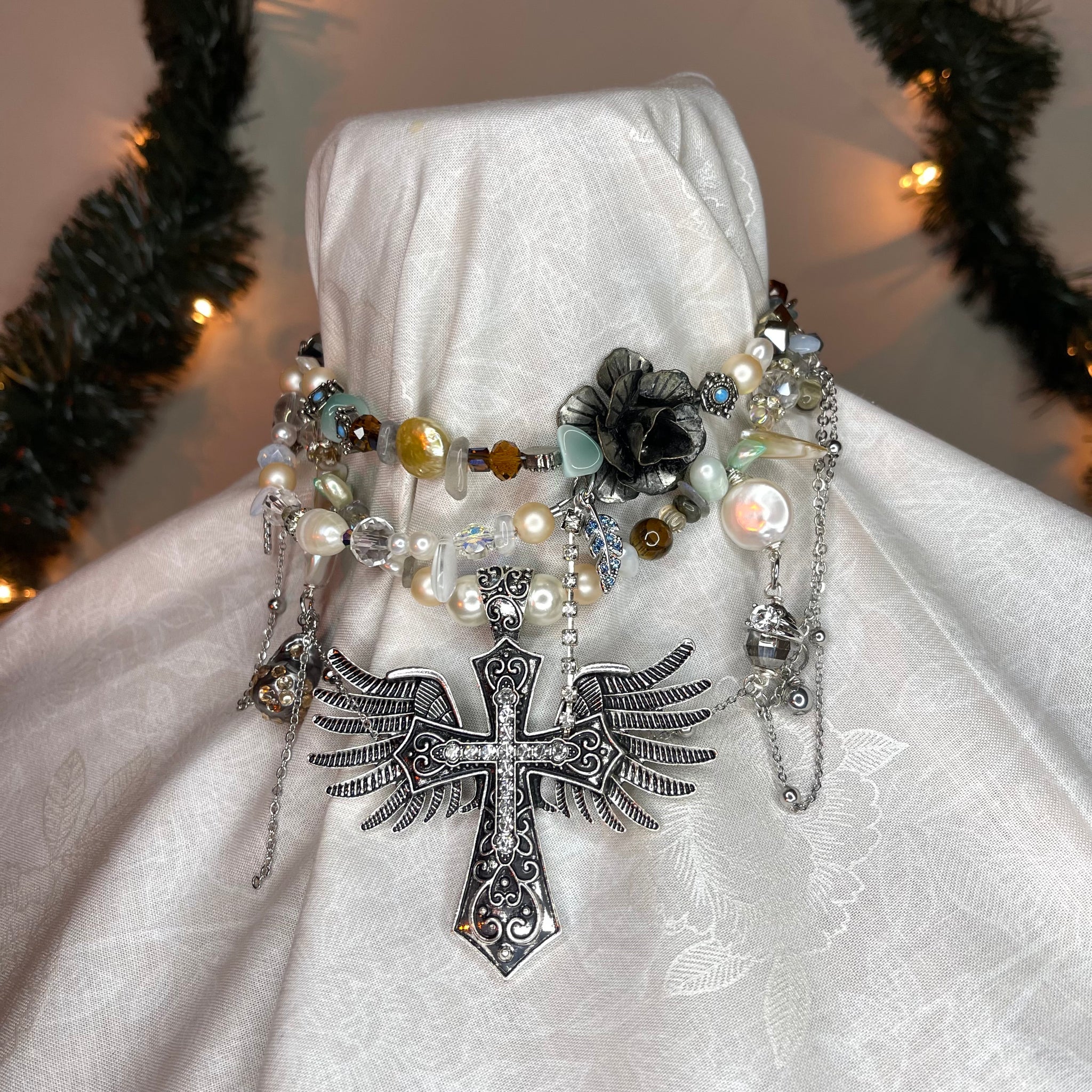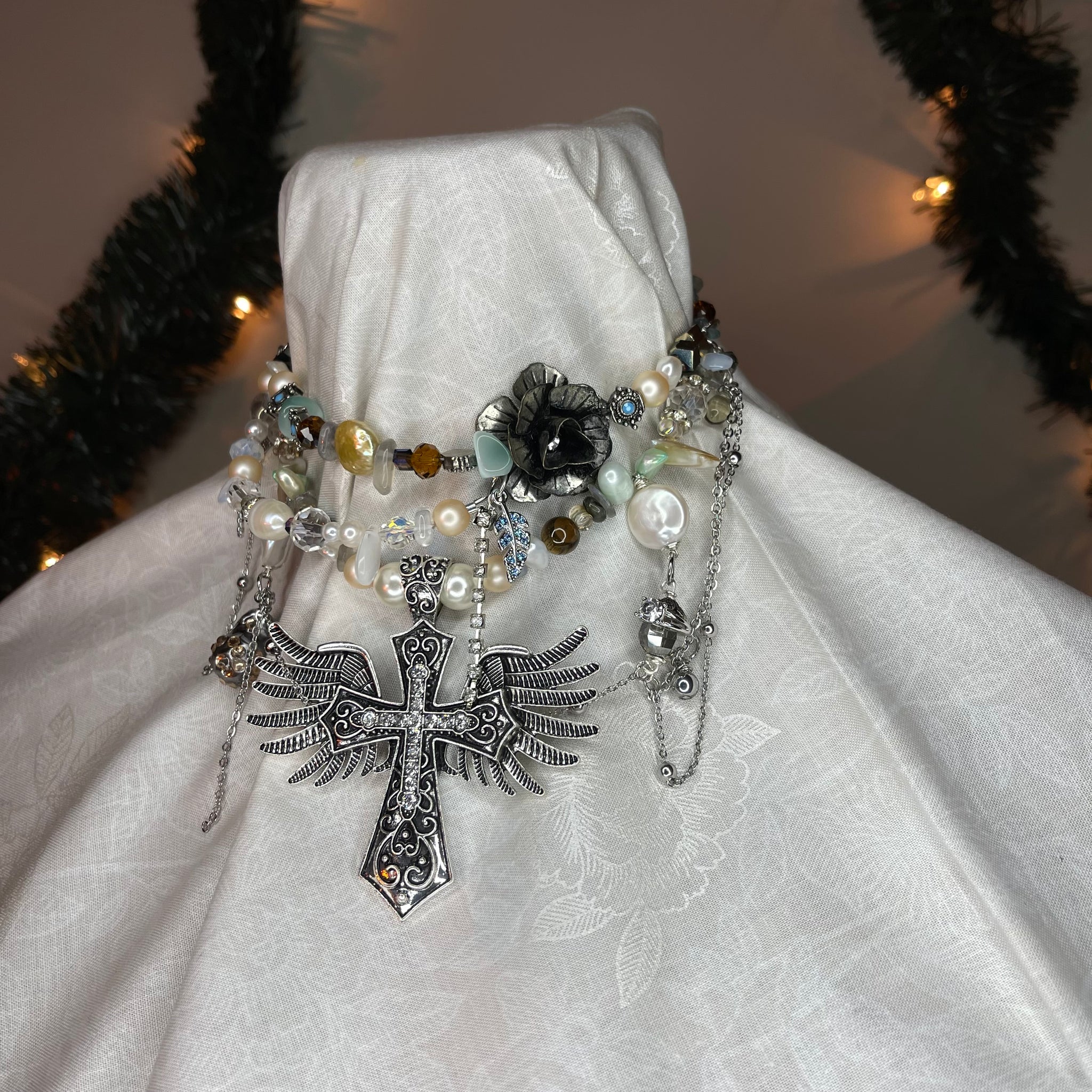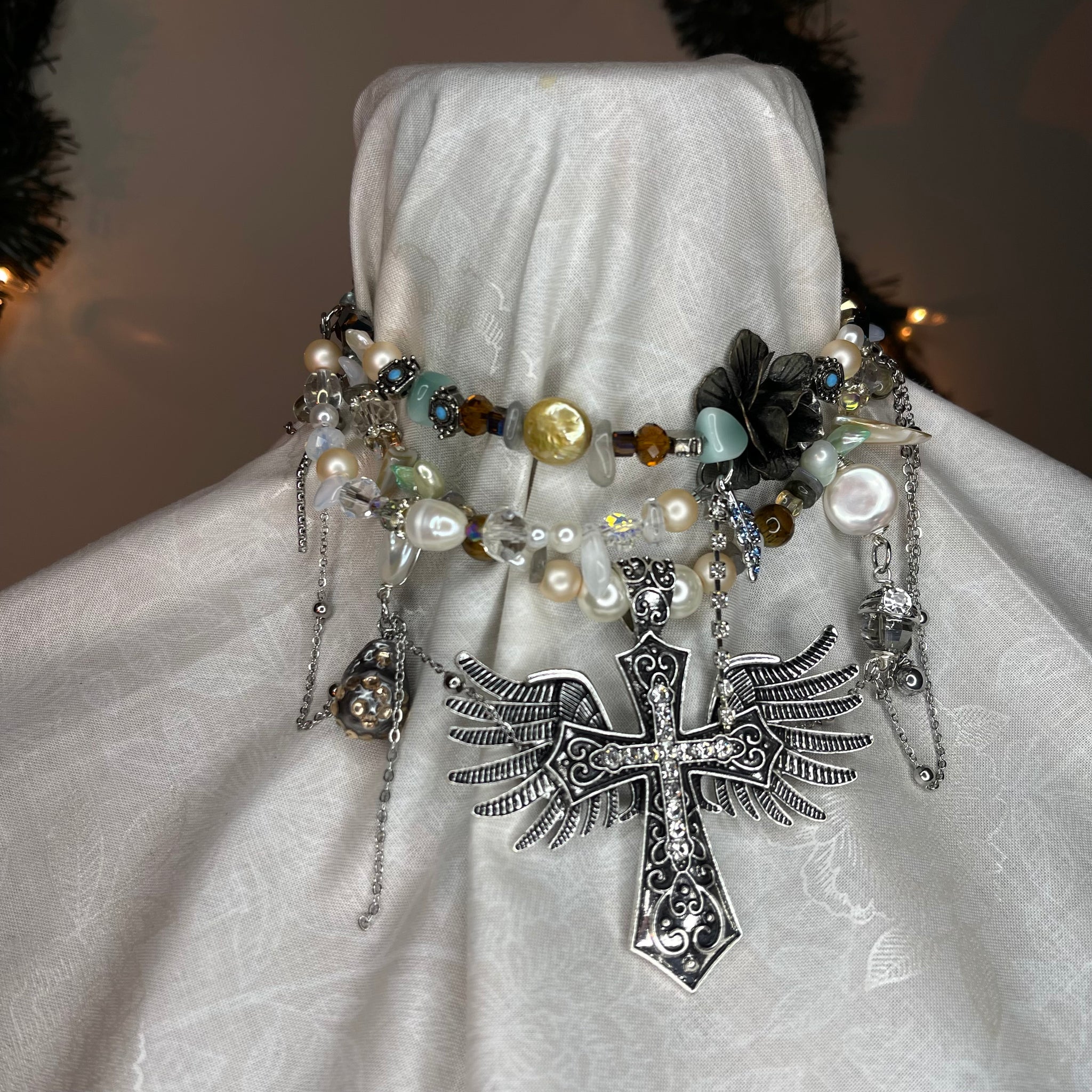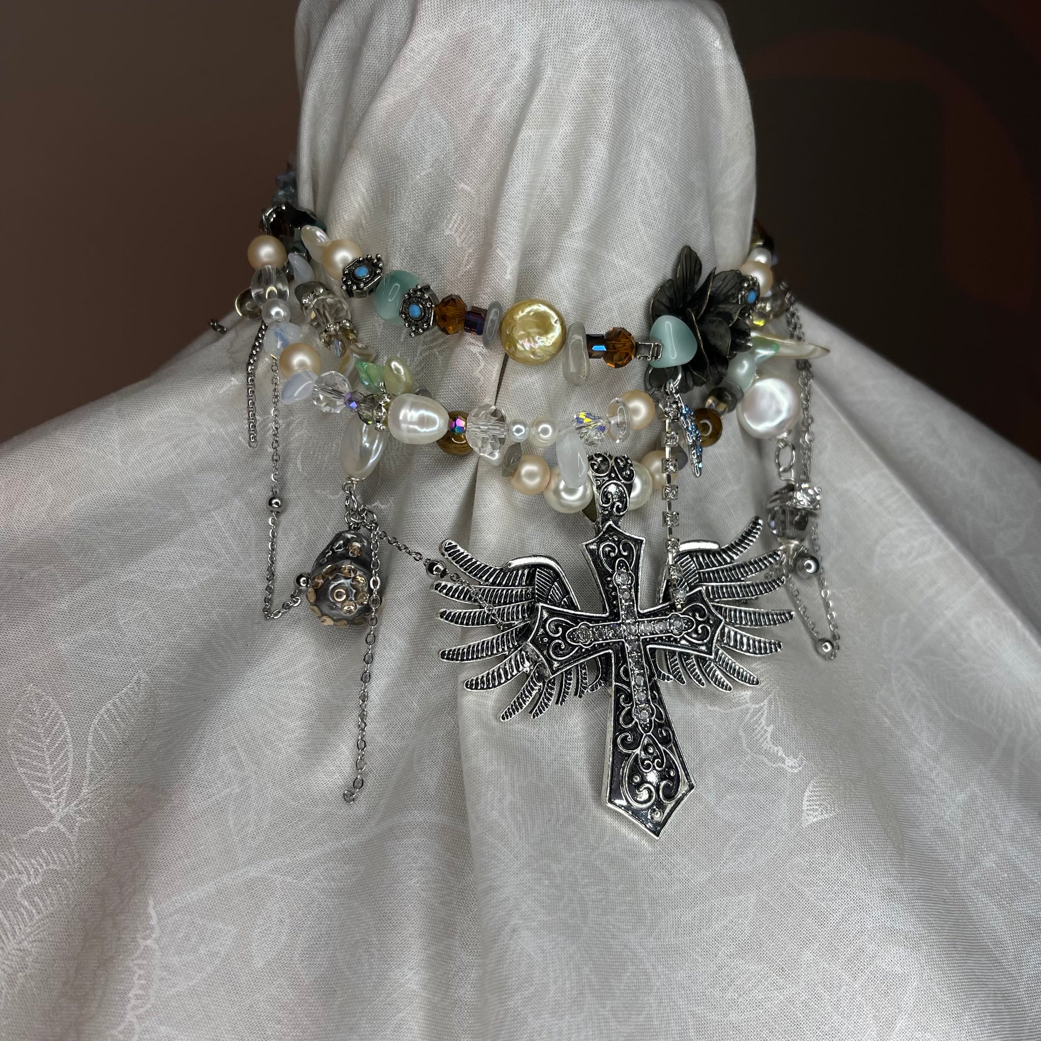 Made with: Freshwater pearls, Glass, Labradorite, Shell, Metals, Baroque pearls, Tigers eye, Coin Pearl, Clear Quartz and stainless steel.