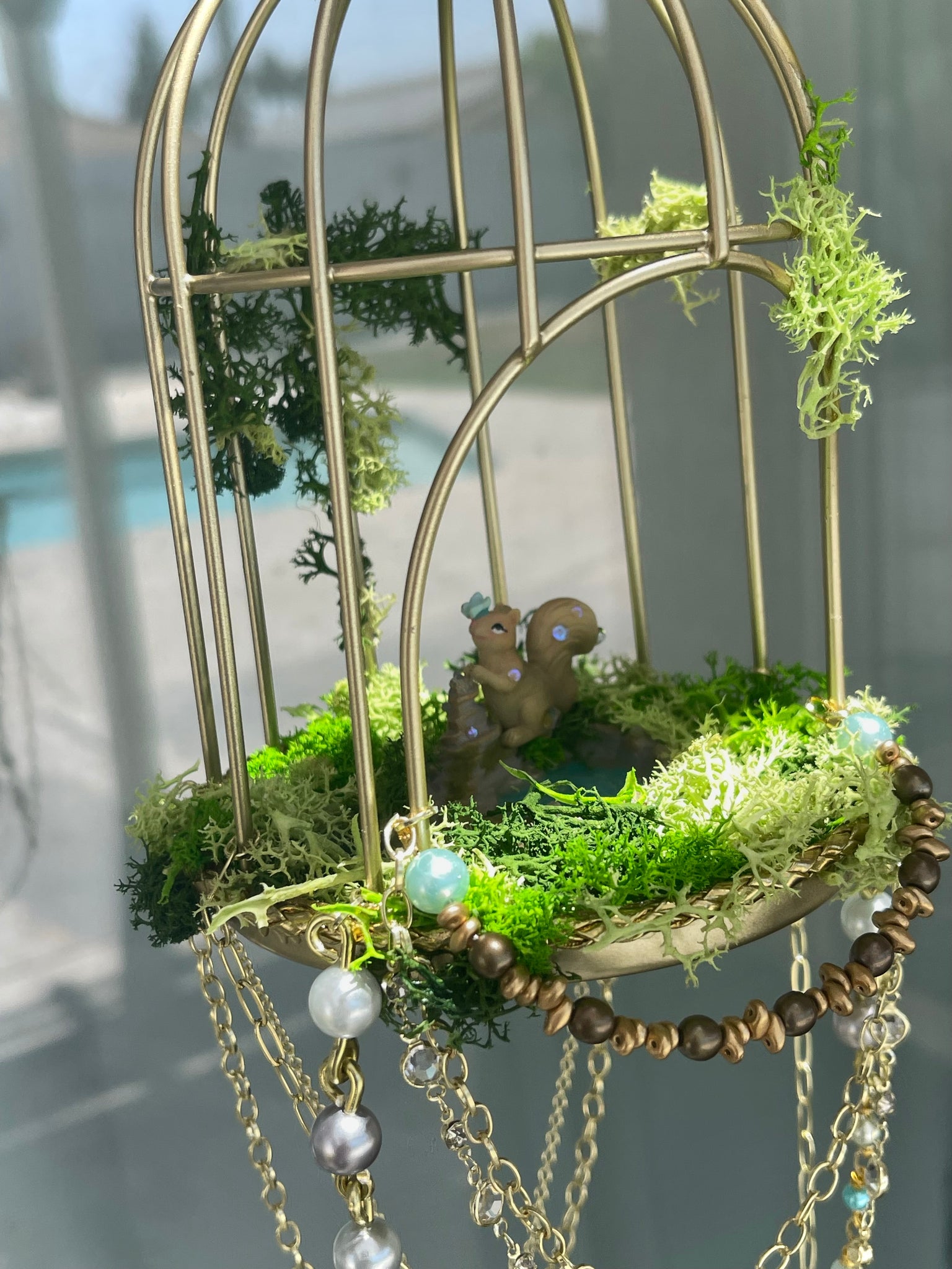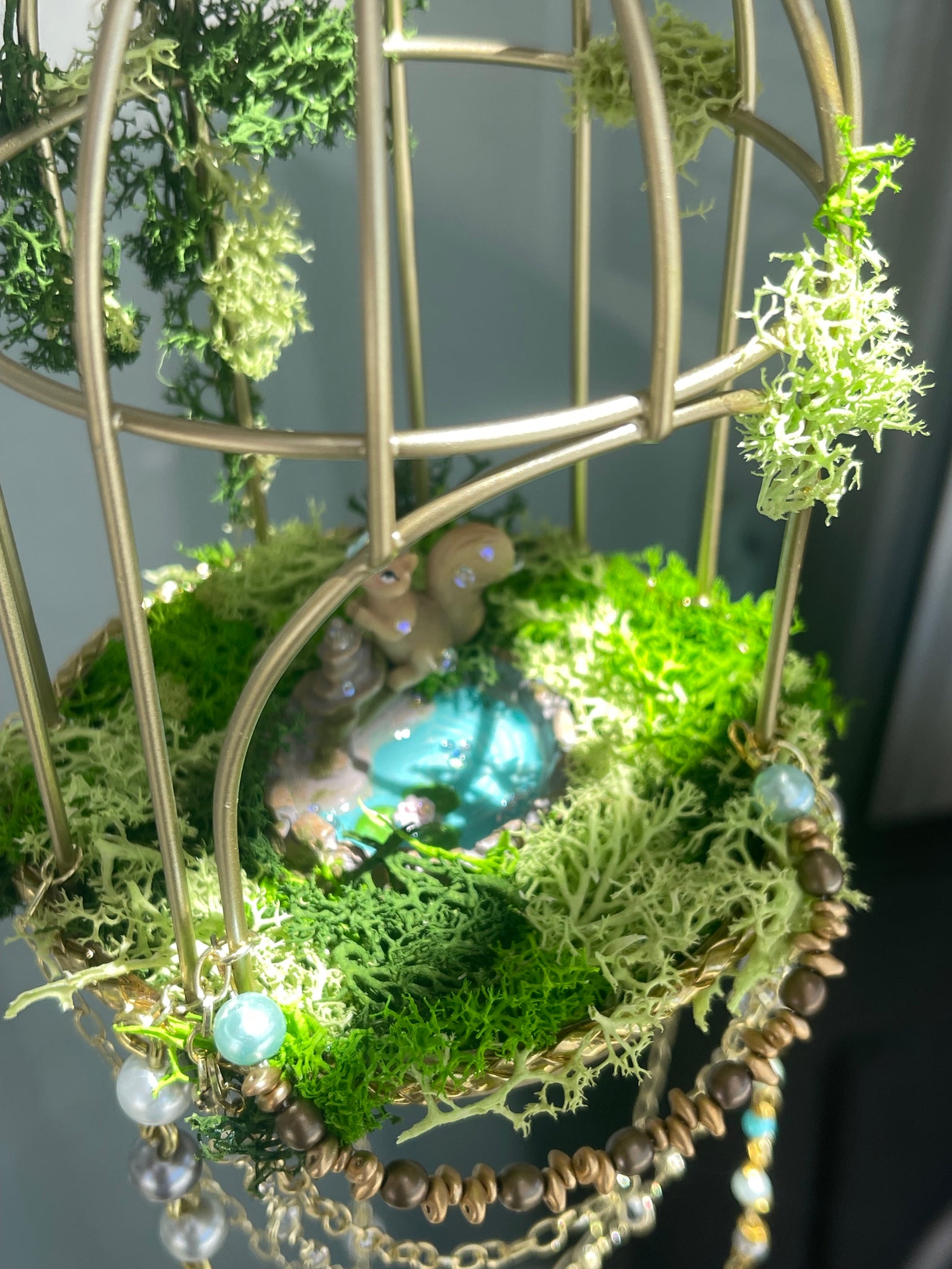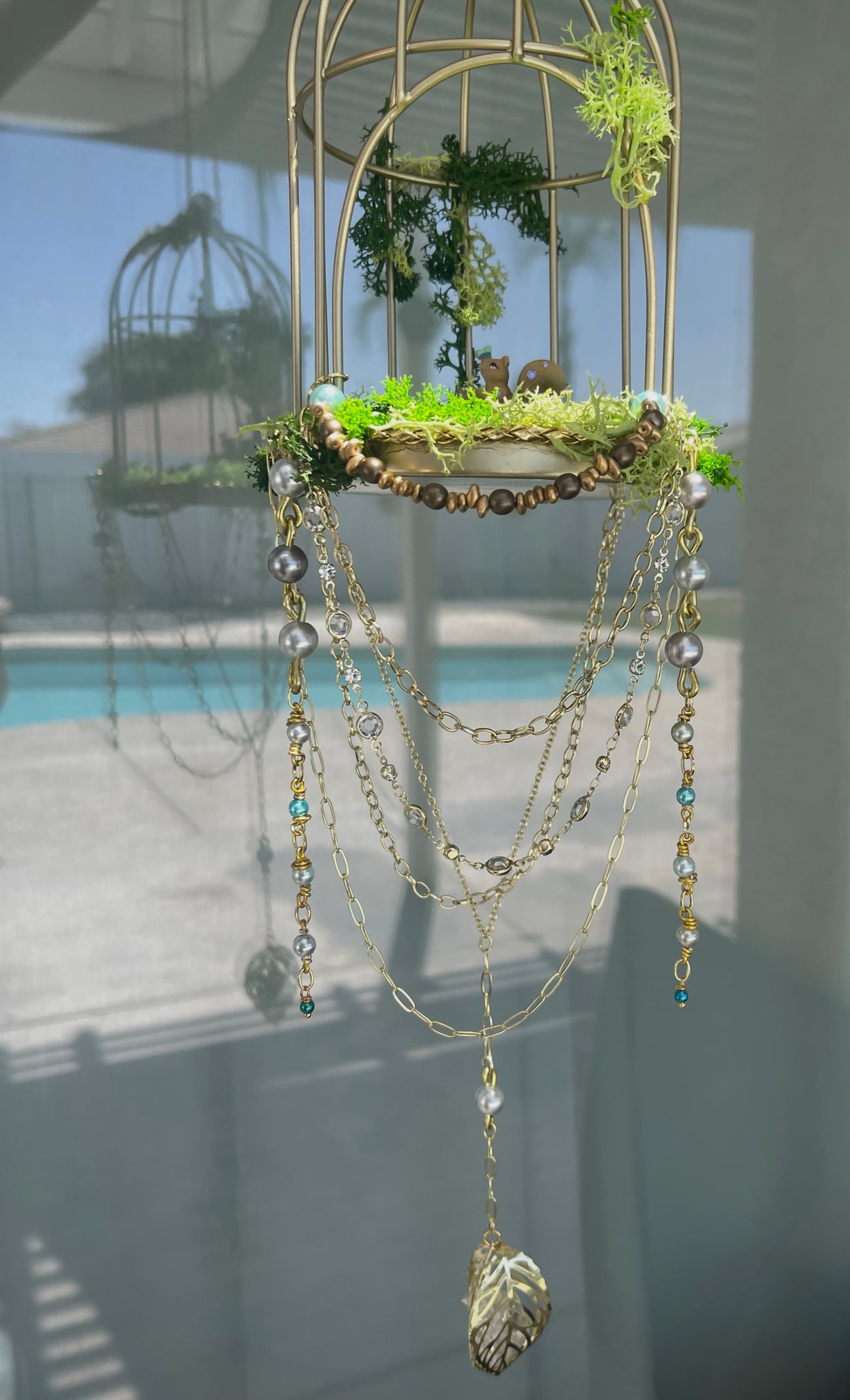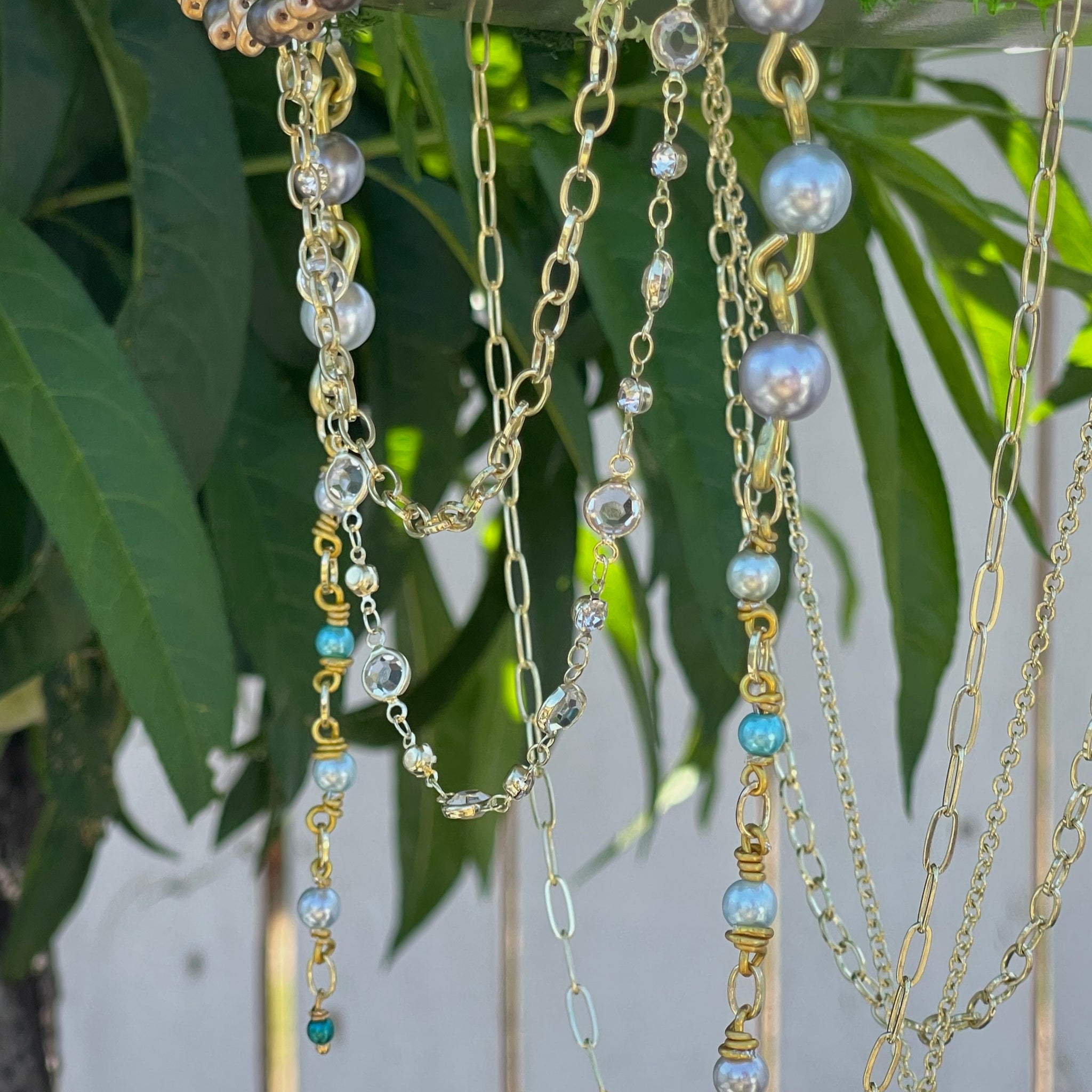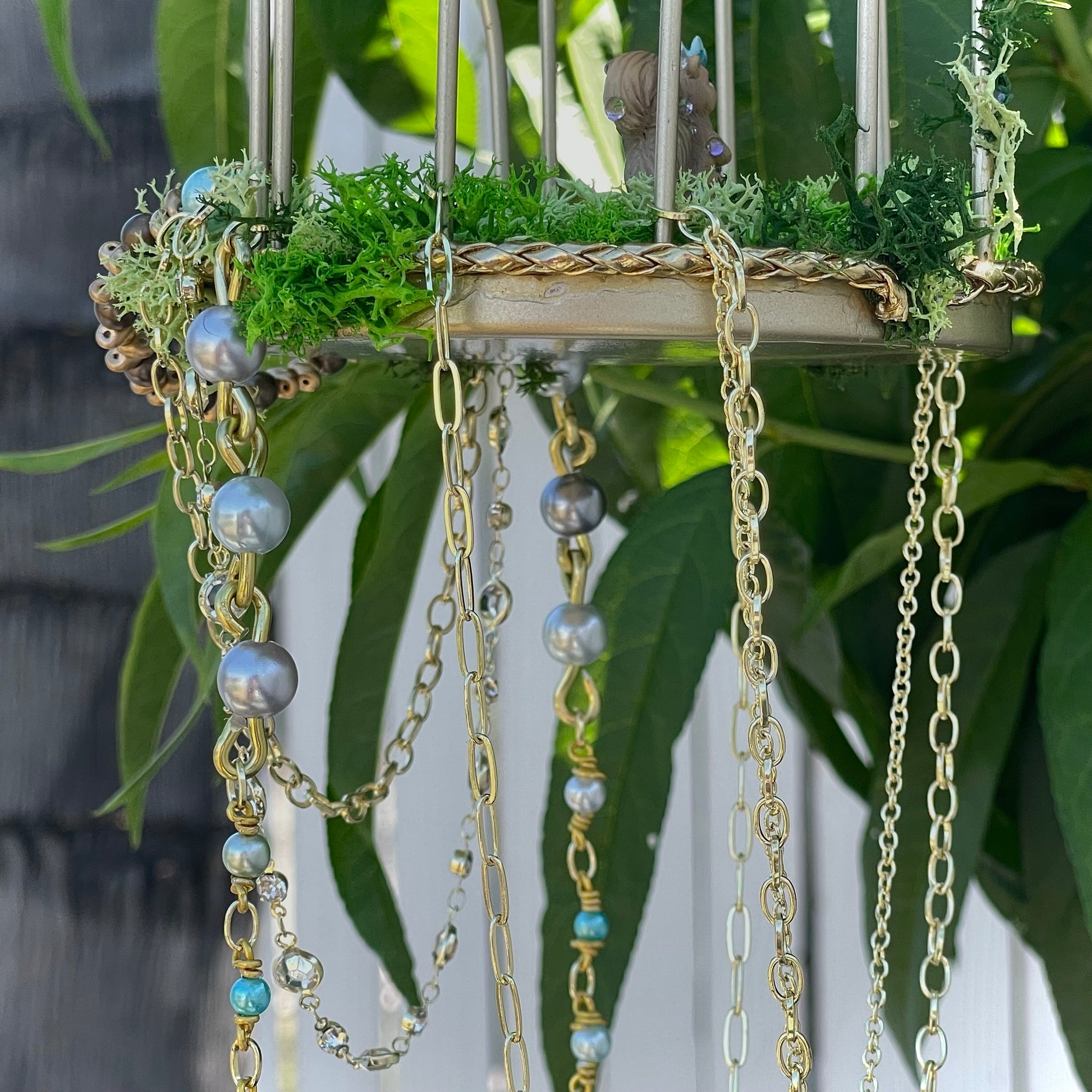 Made with: Metals, Cords, Glass, Faux Pearls and figurinesĀ