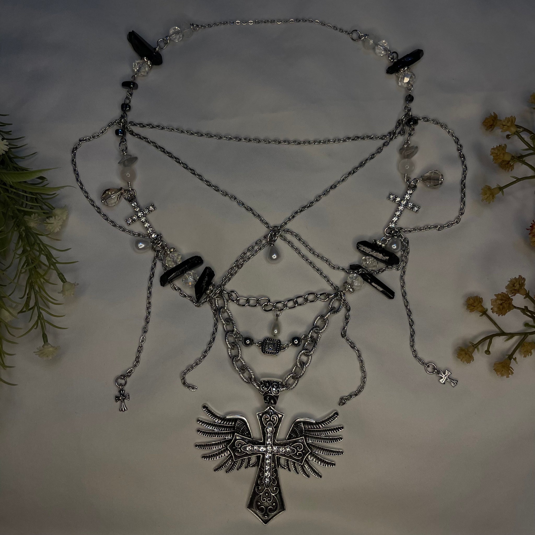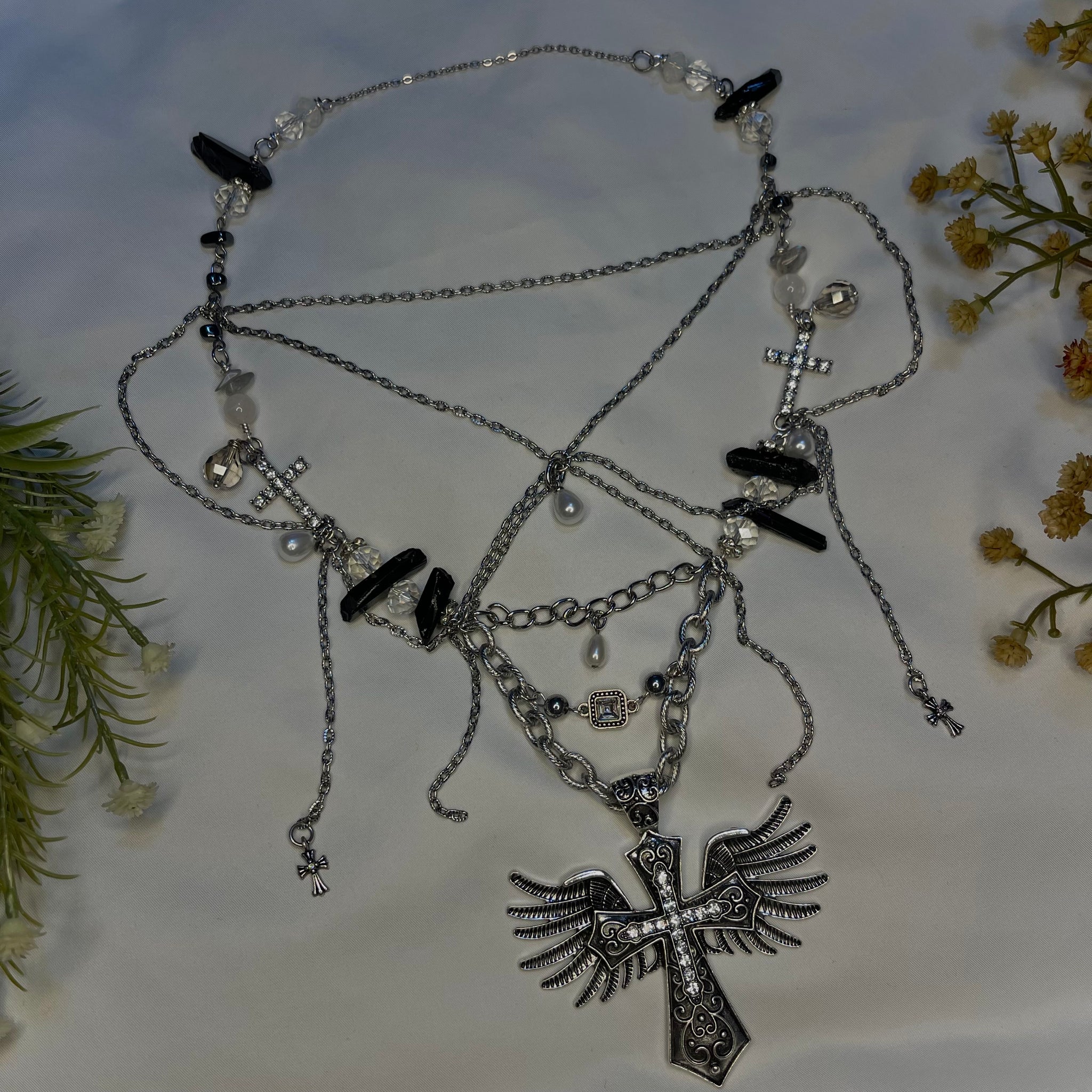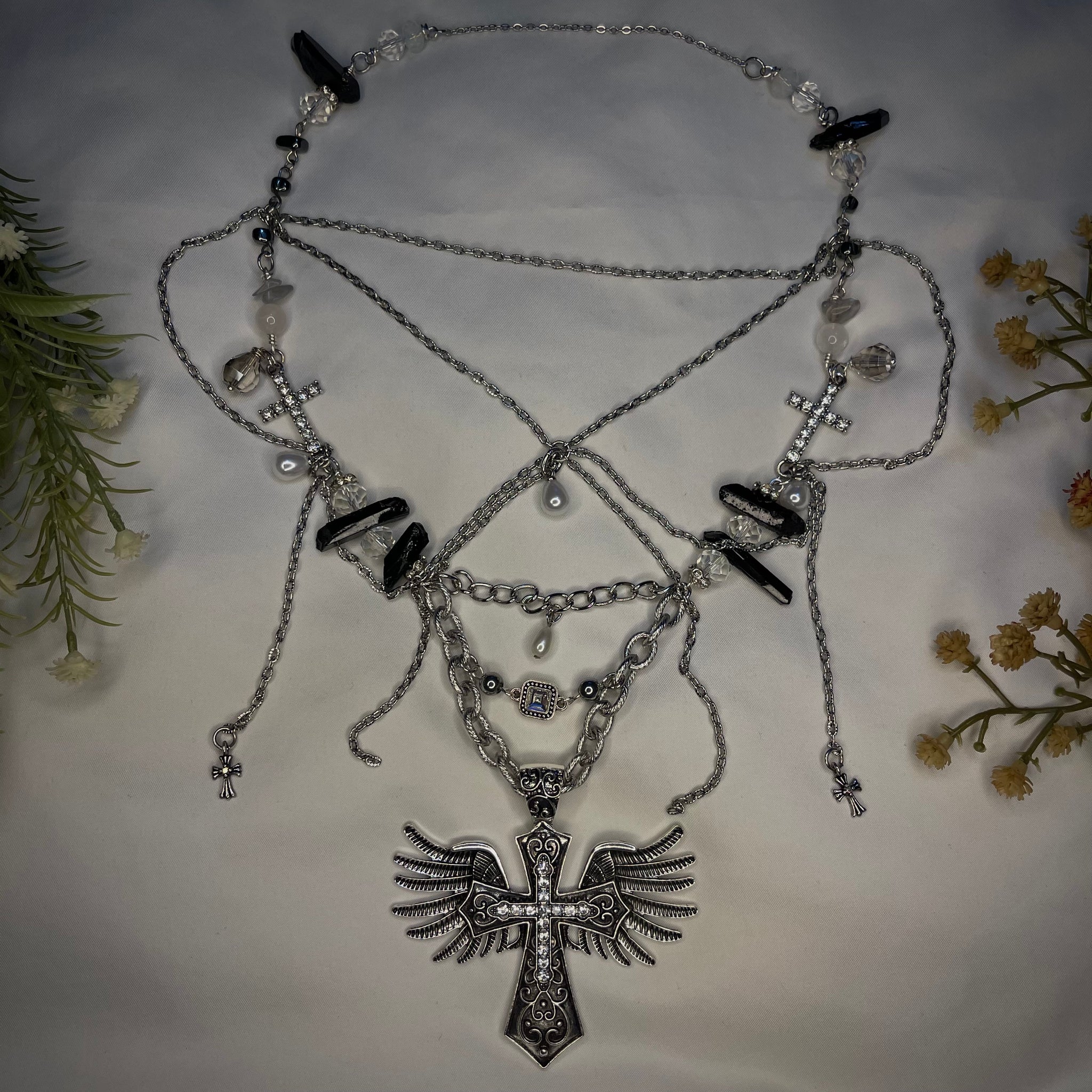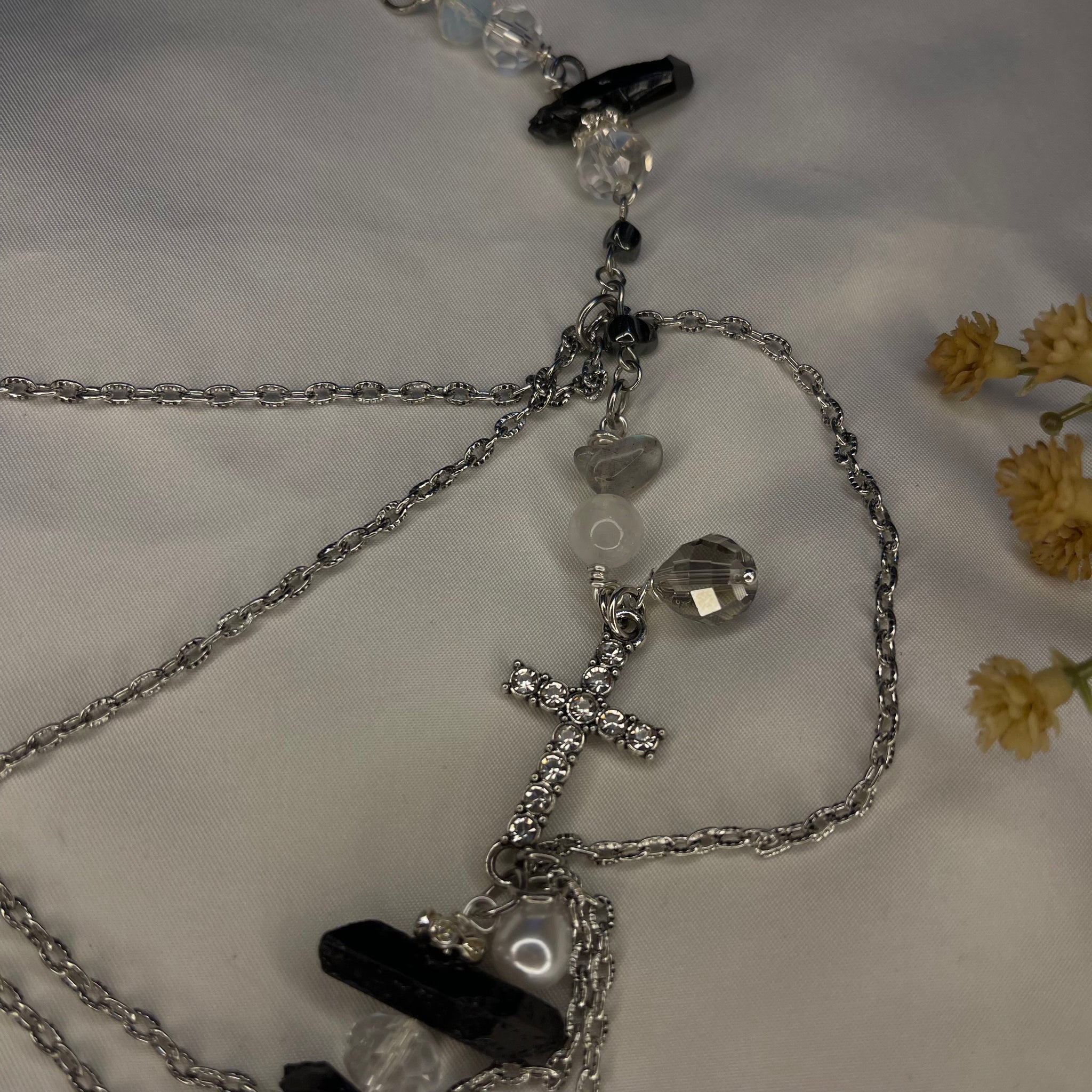 Made with: Glass, Clear Quartz, Labradorite, Stainless steel materials, non tarnish metals, hematite and obsidian