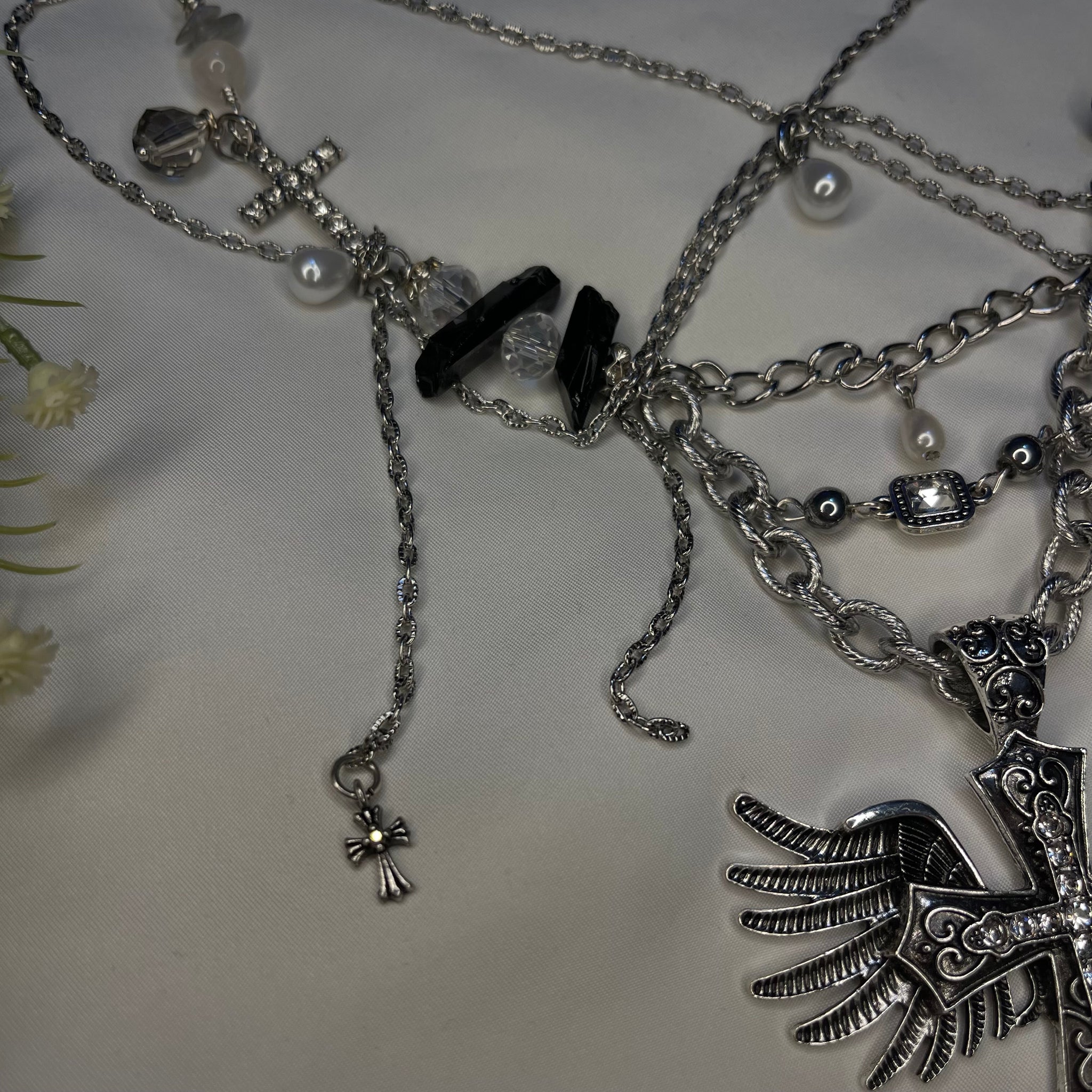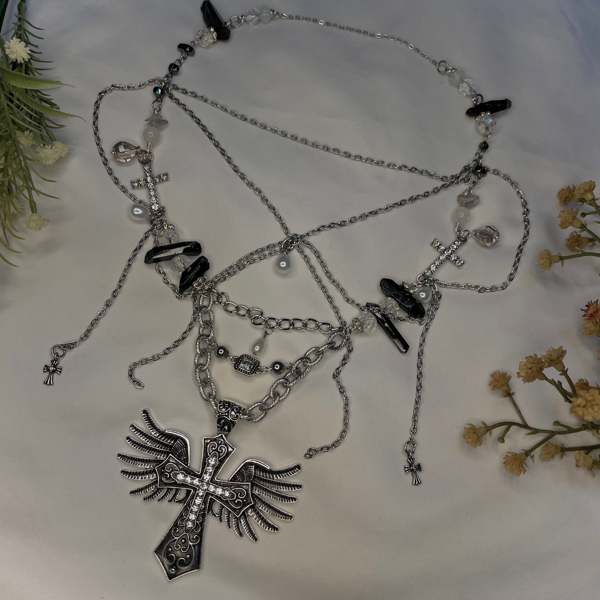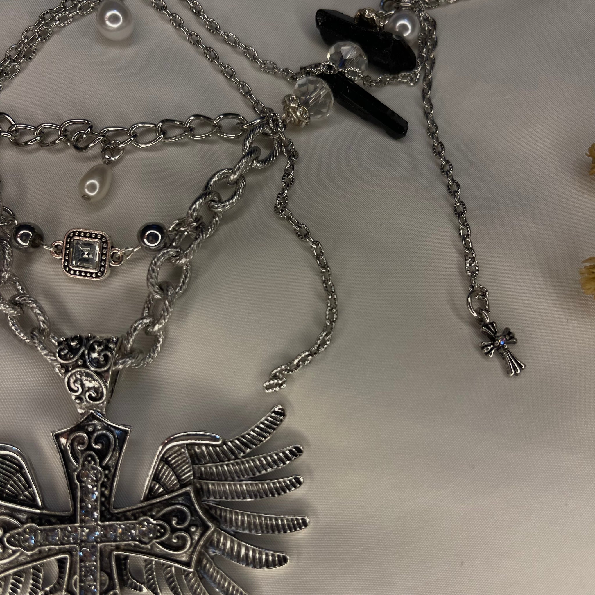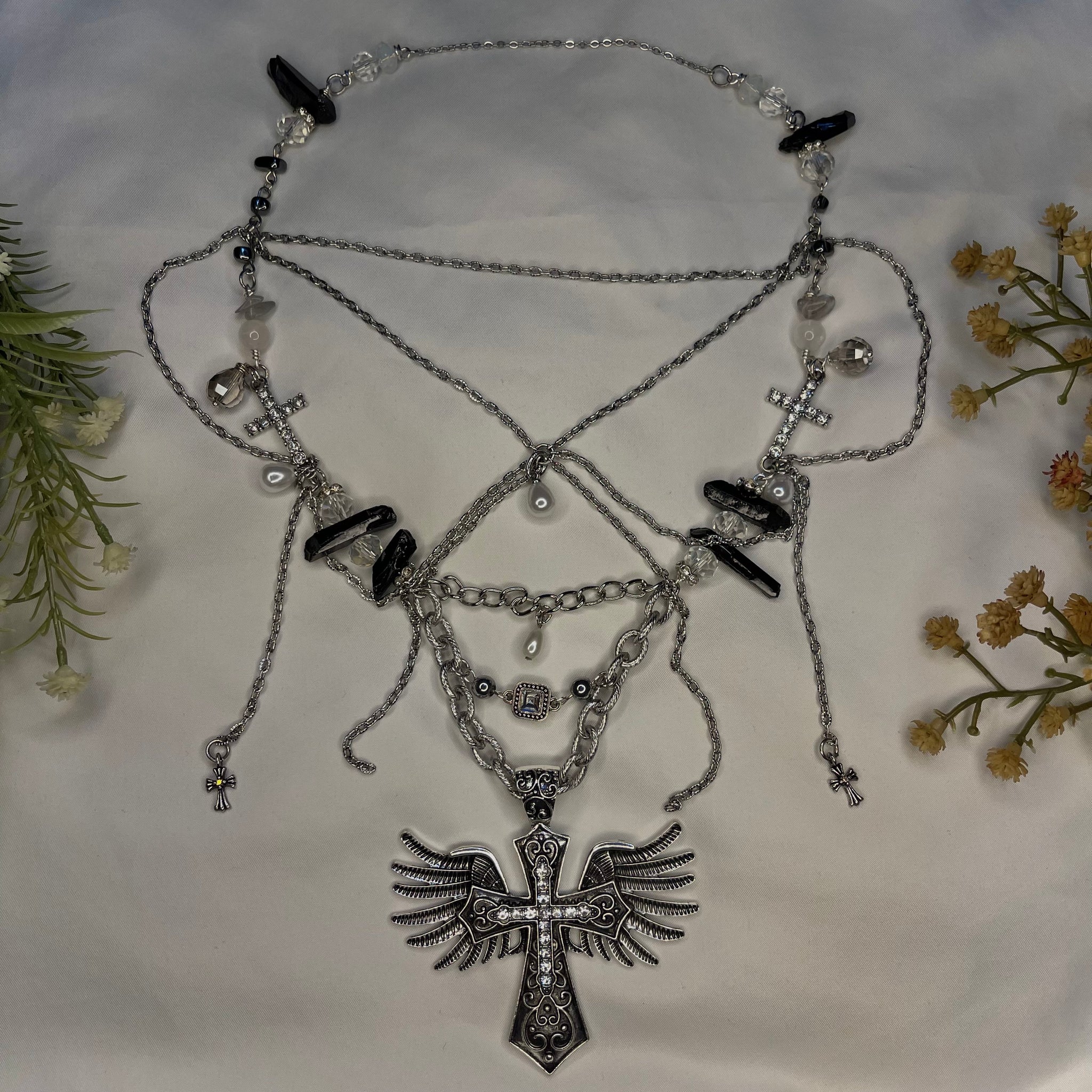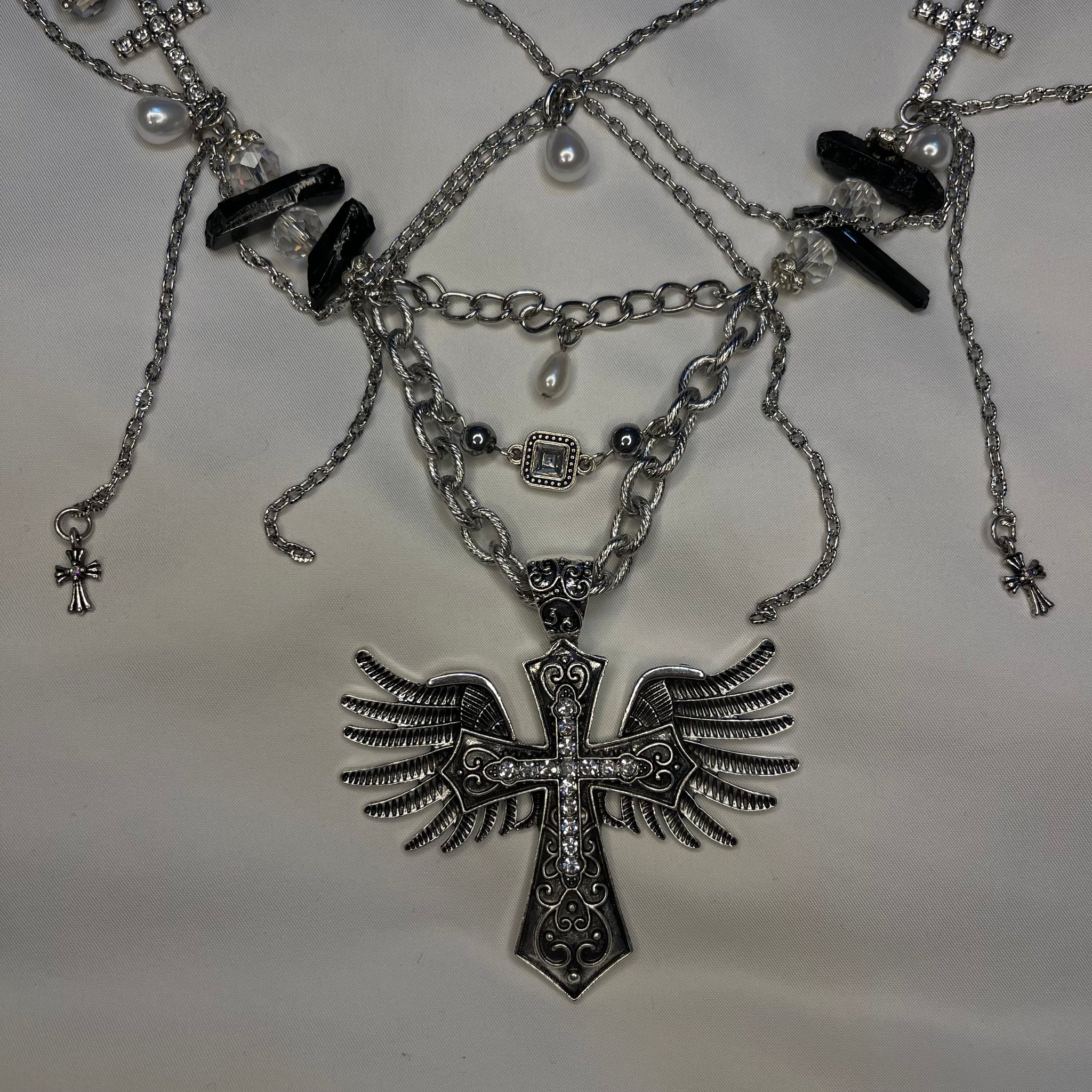 Made with: Glass, Clear Quartz, Labradorite, Stainless steel materials, non tarnish metals, hematite and obsidian