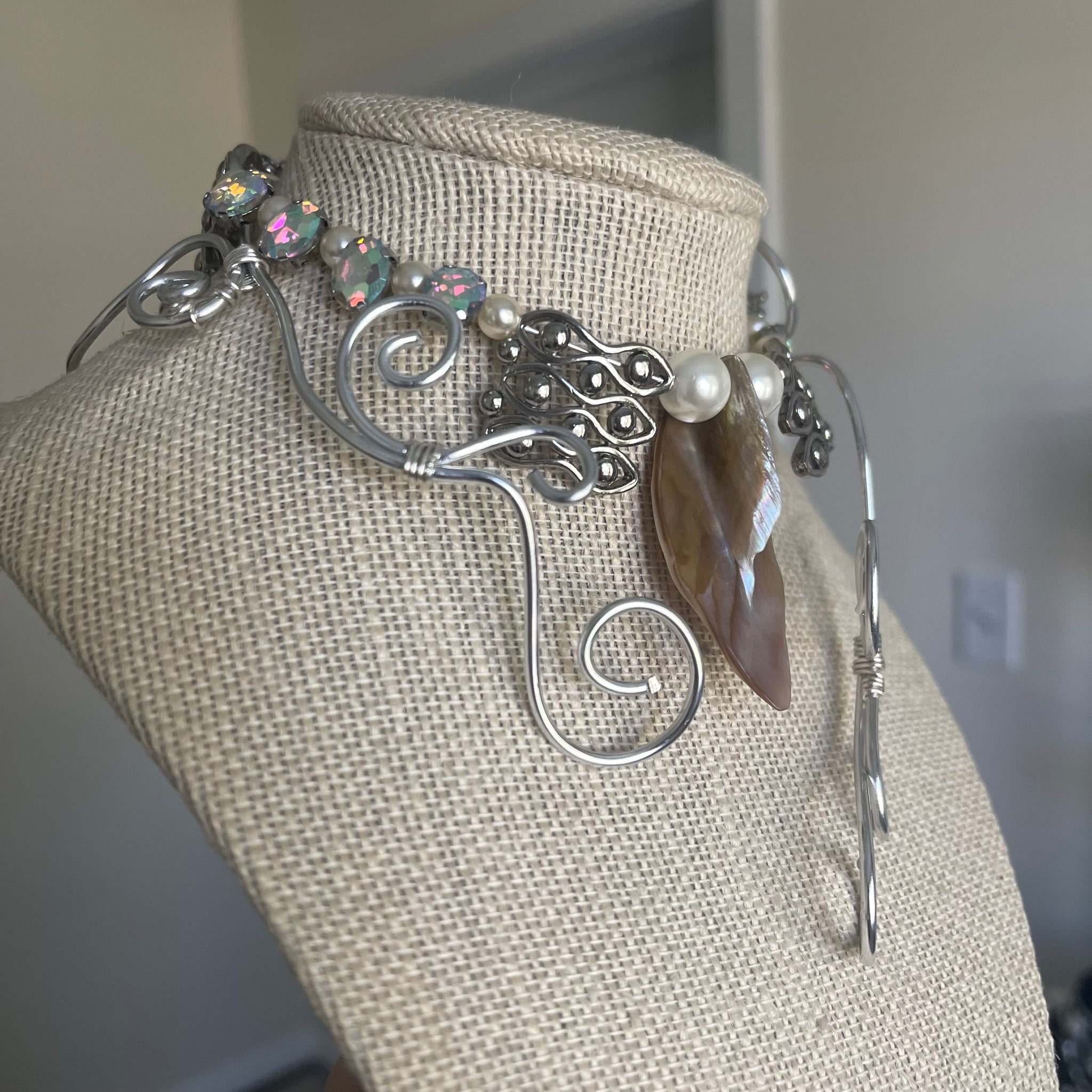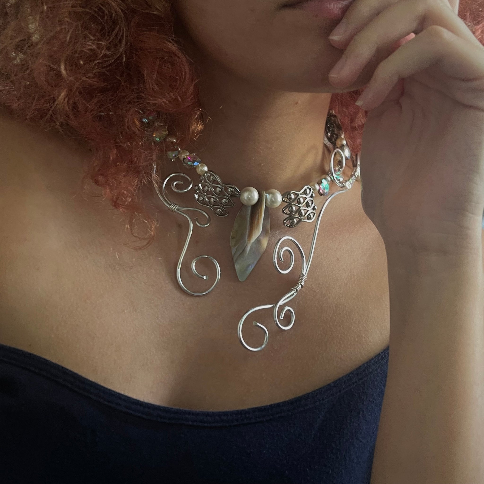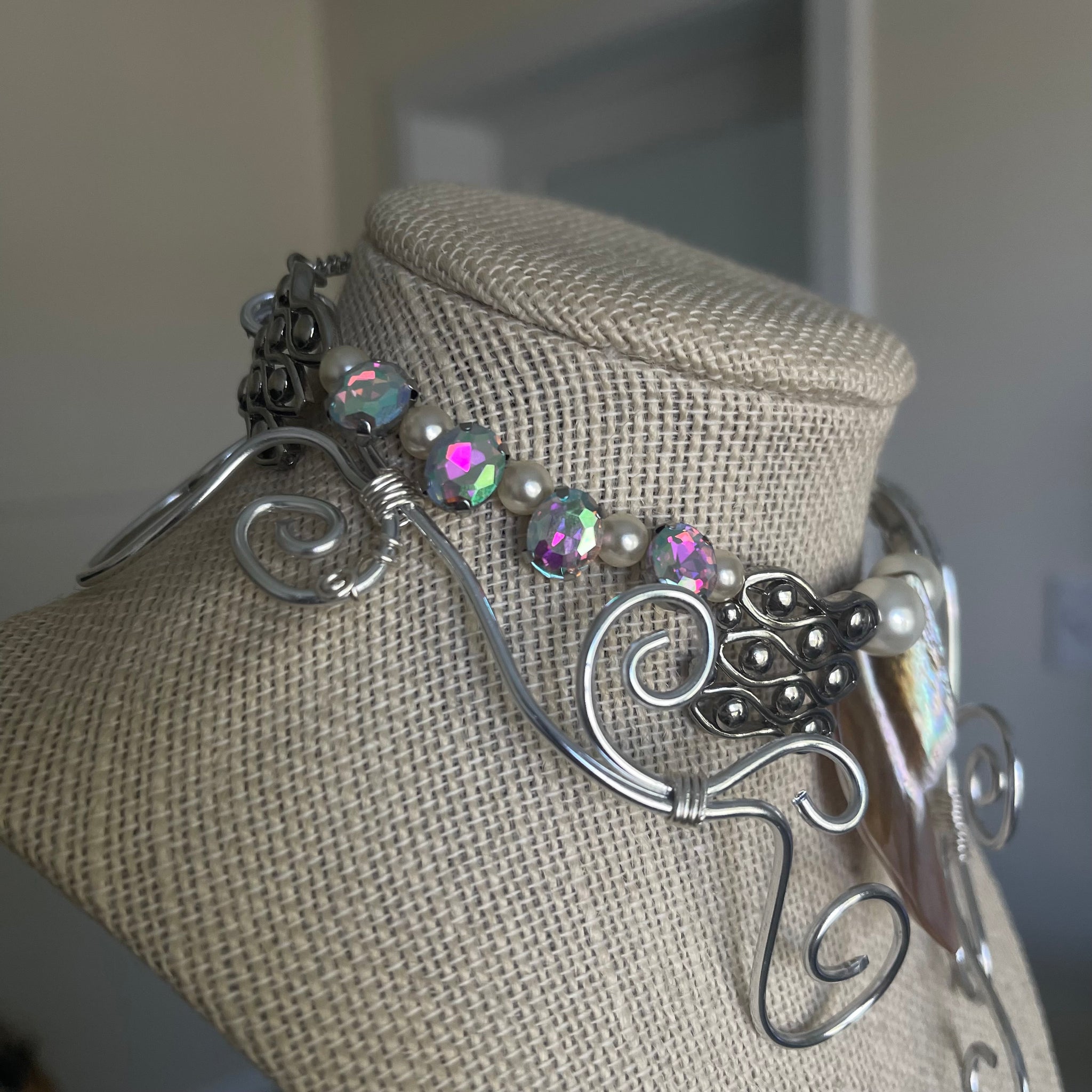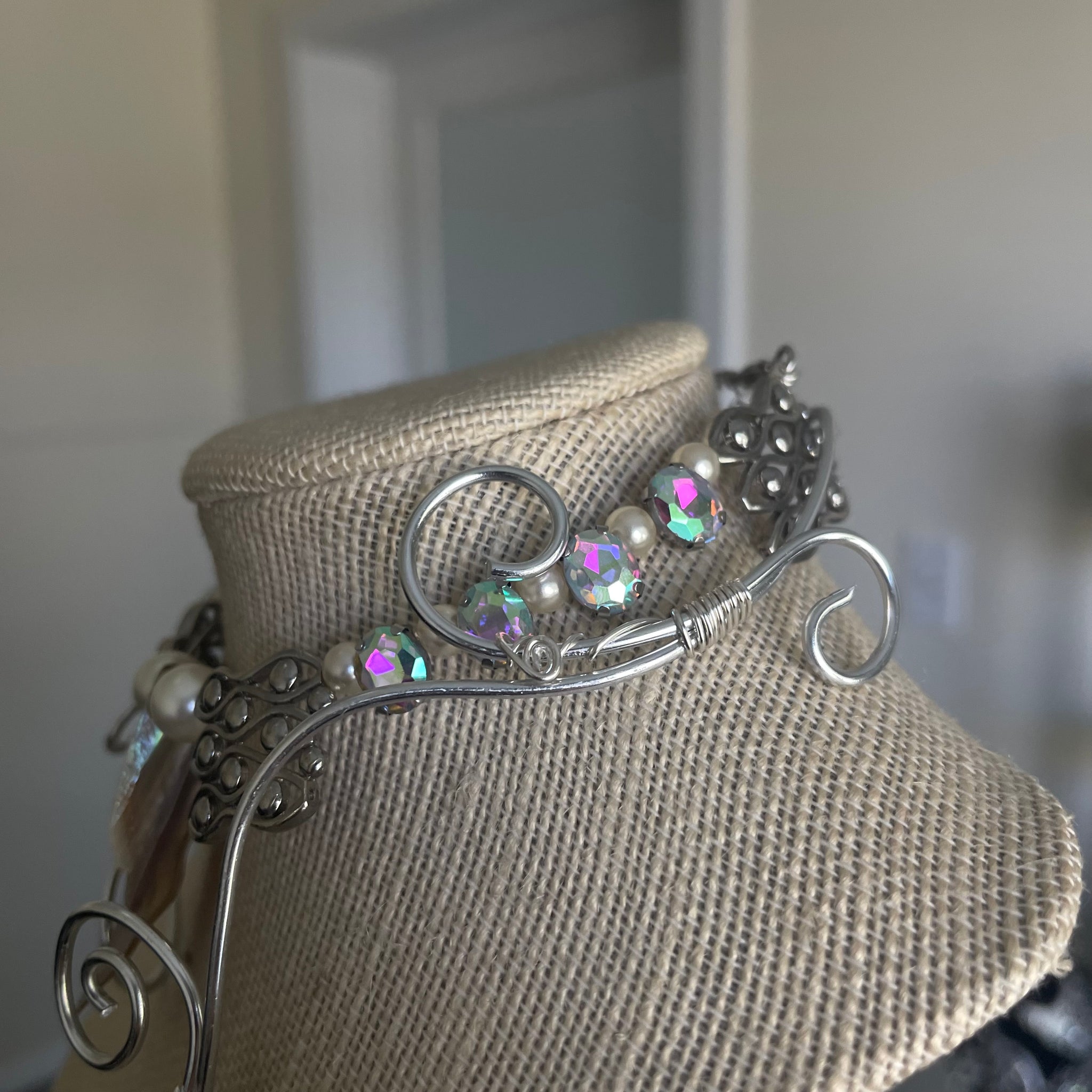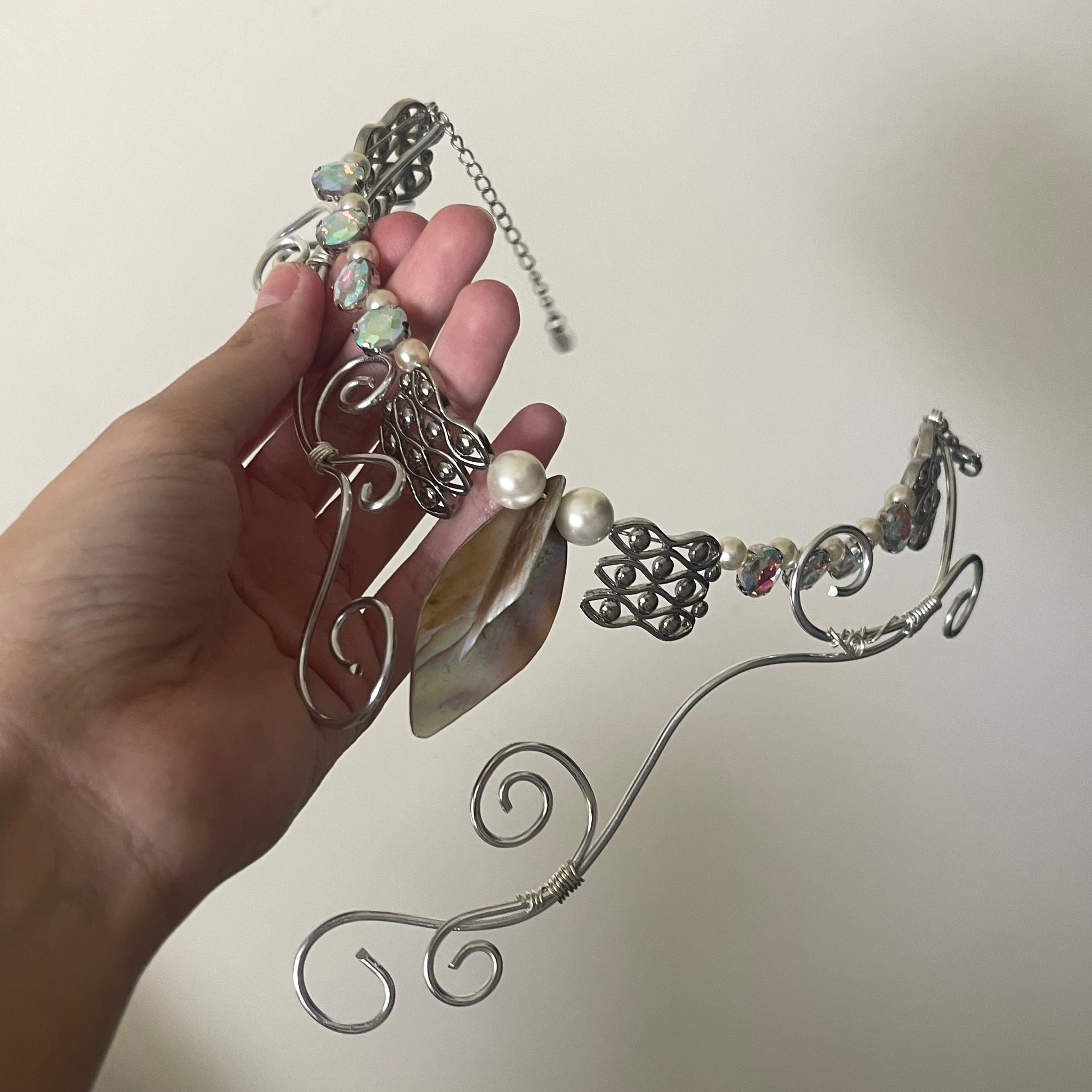 Made with: Shell, Metals, Aluminum and Rhinestones.