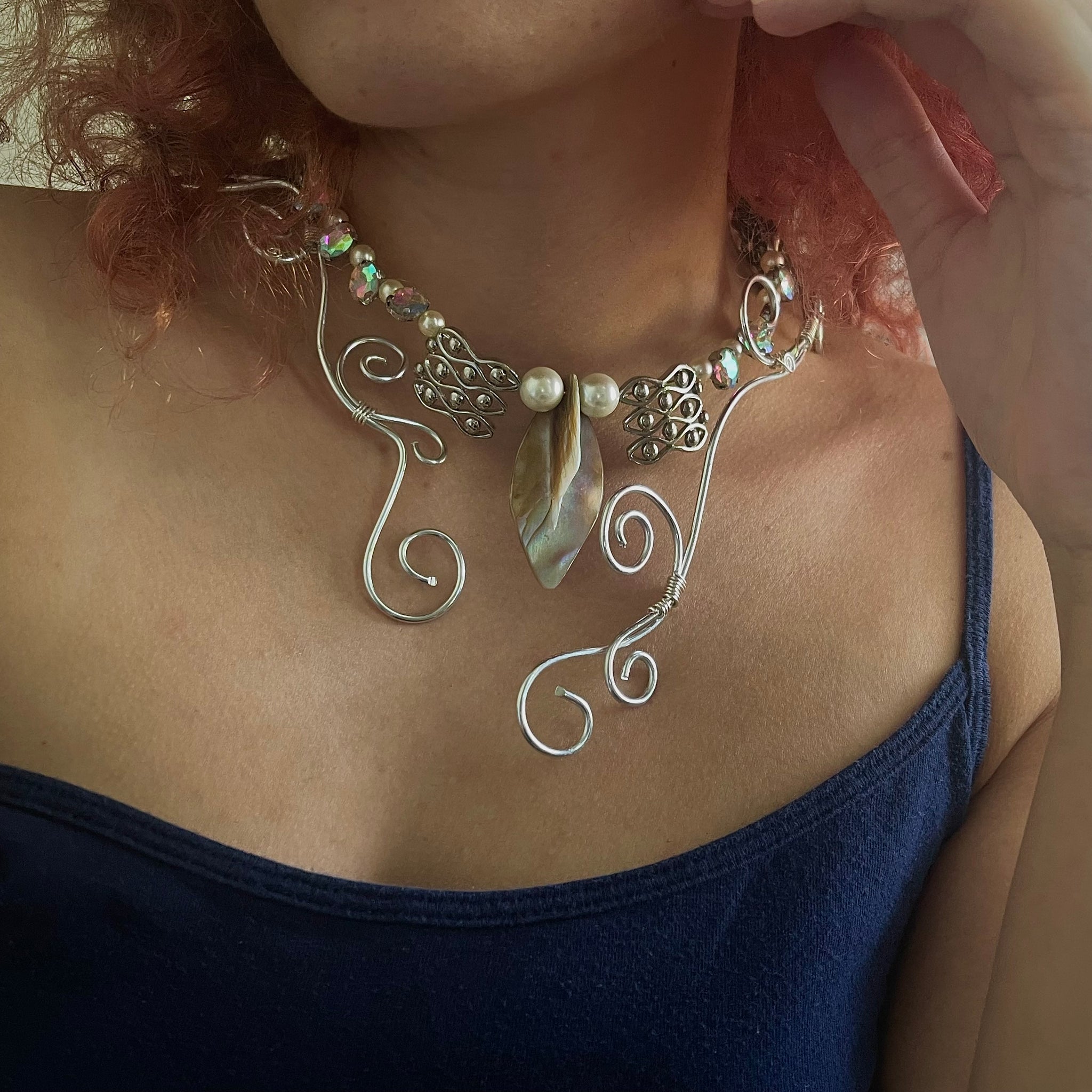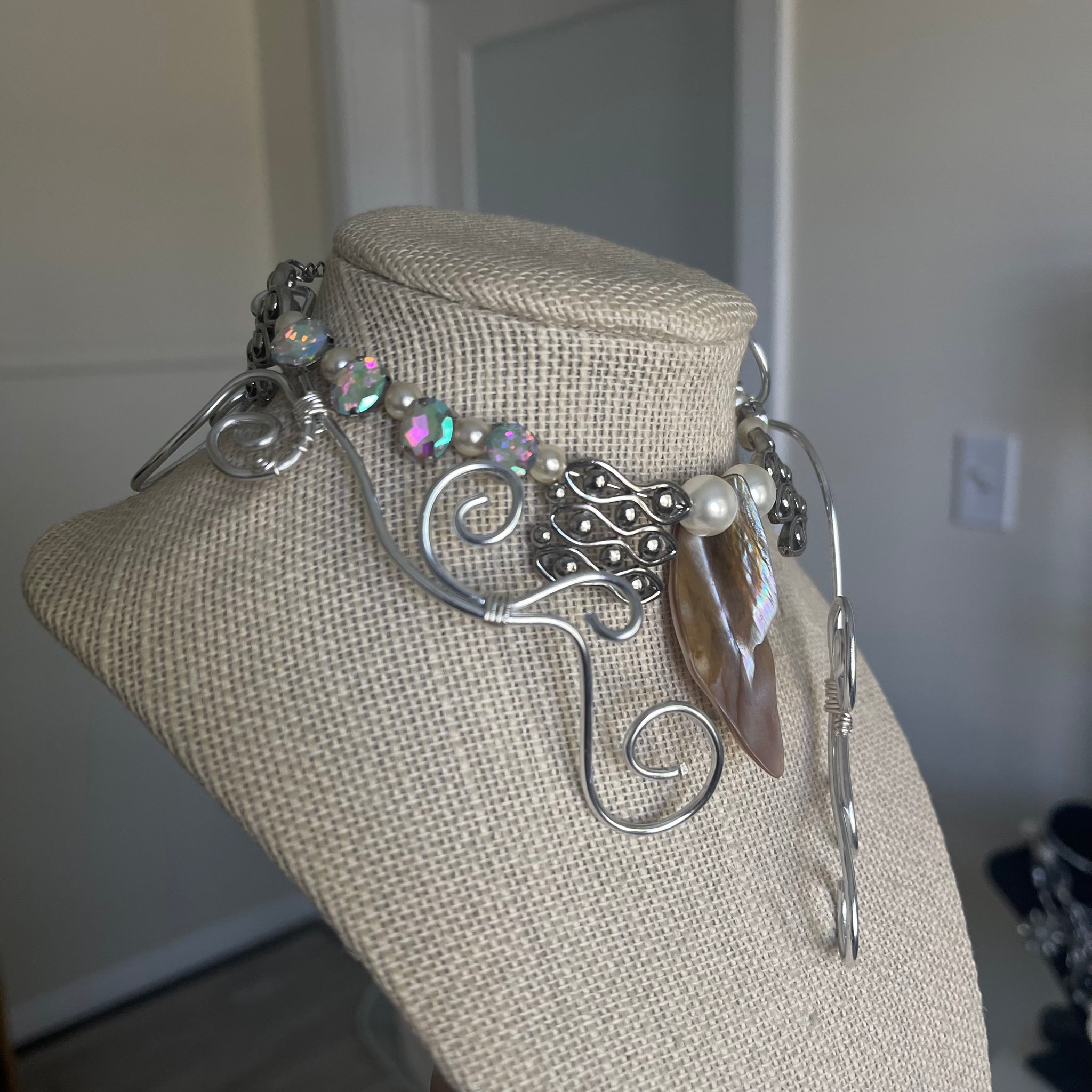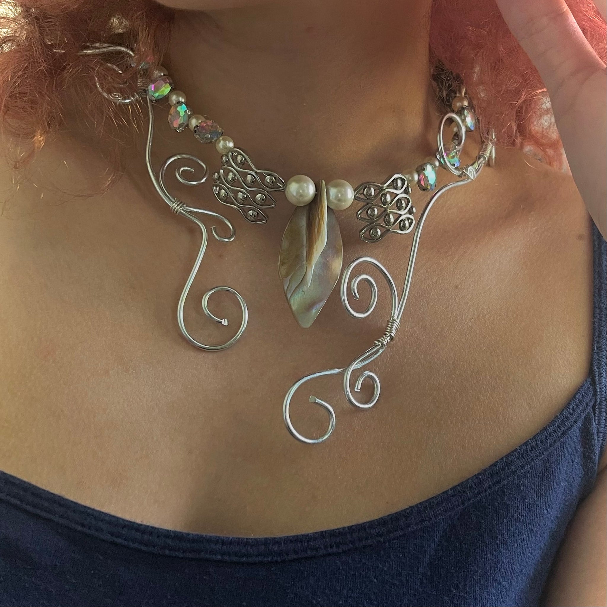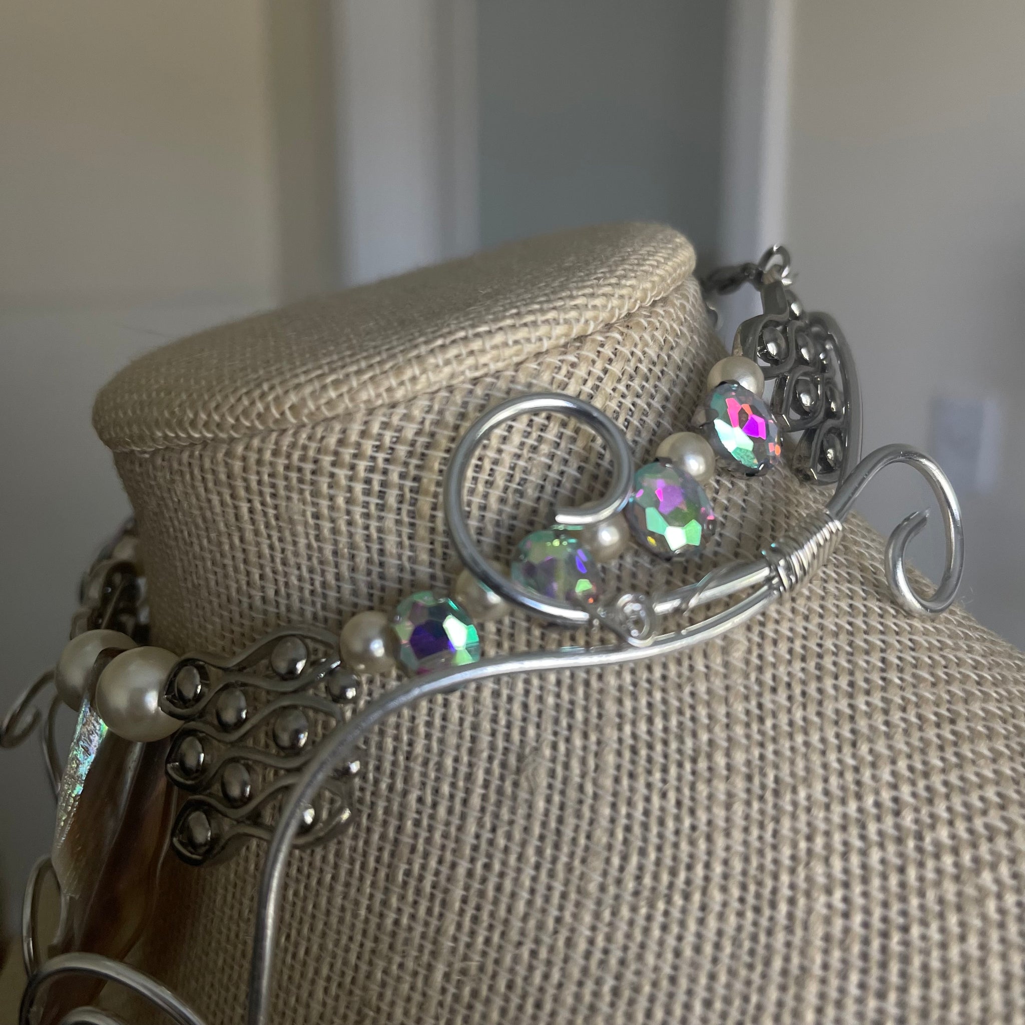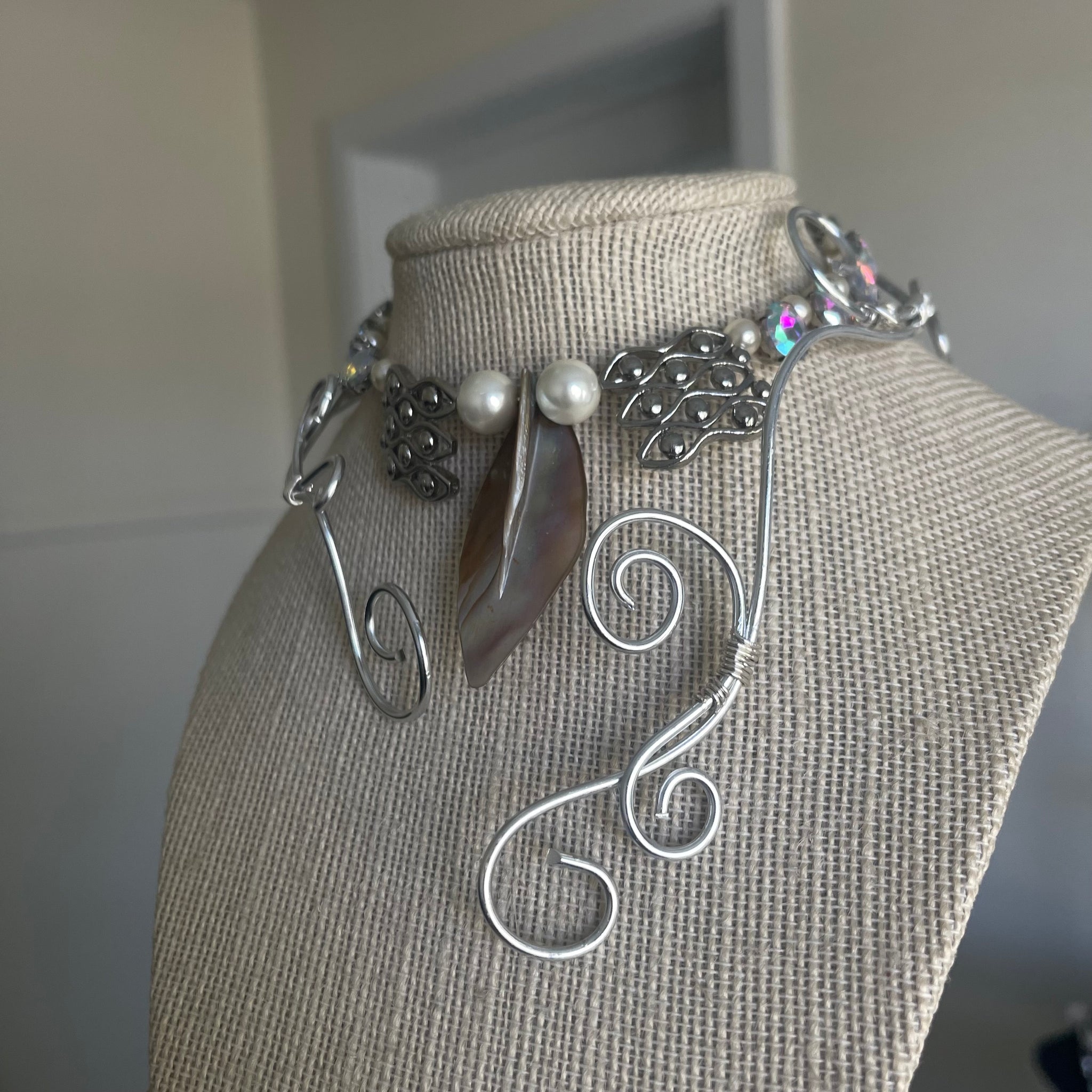 Made with: Shell, Metals, Aluminum and Rhinestones.