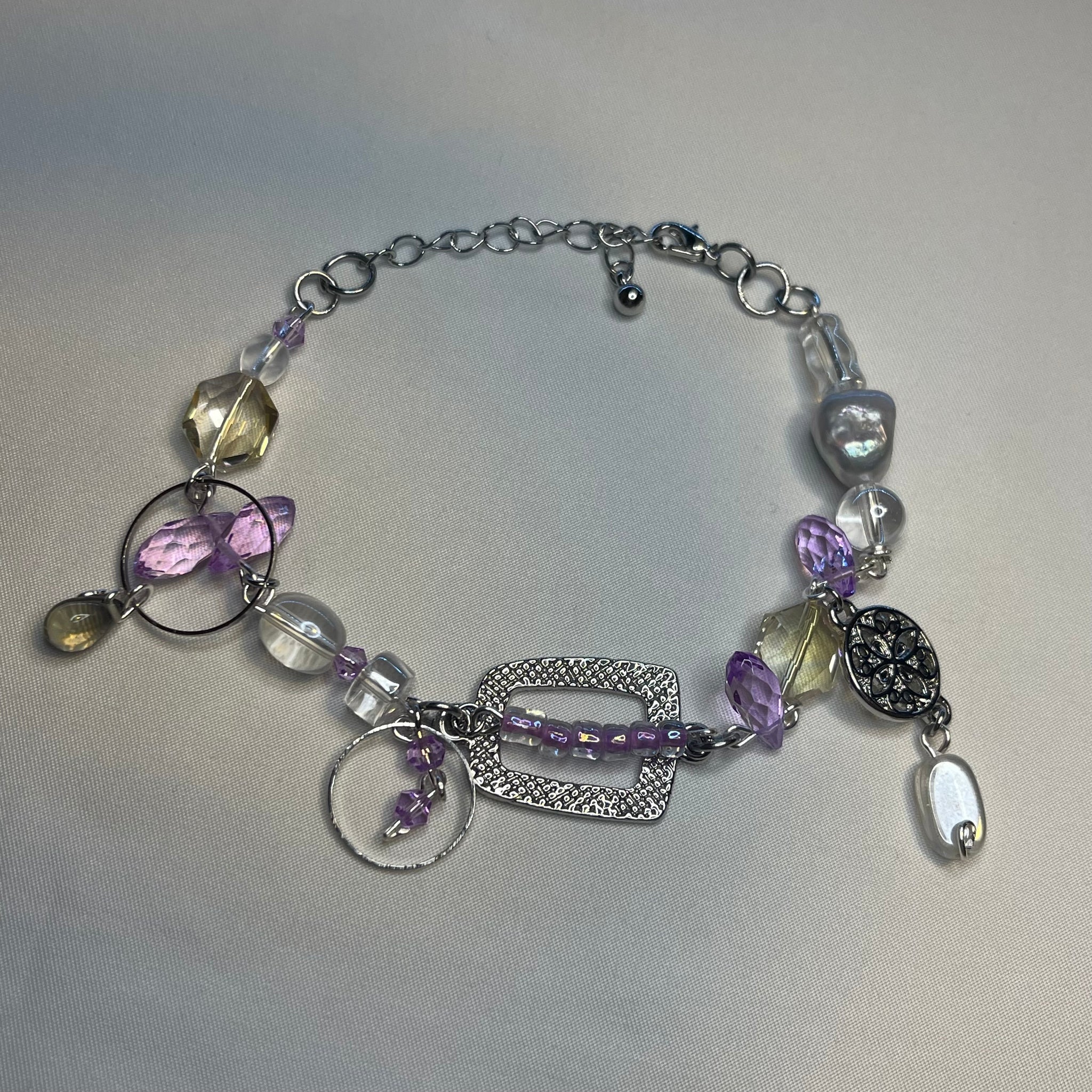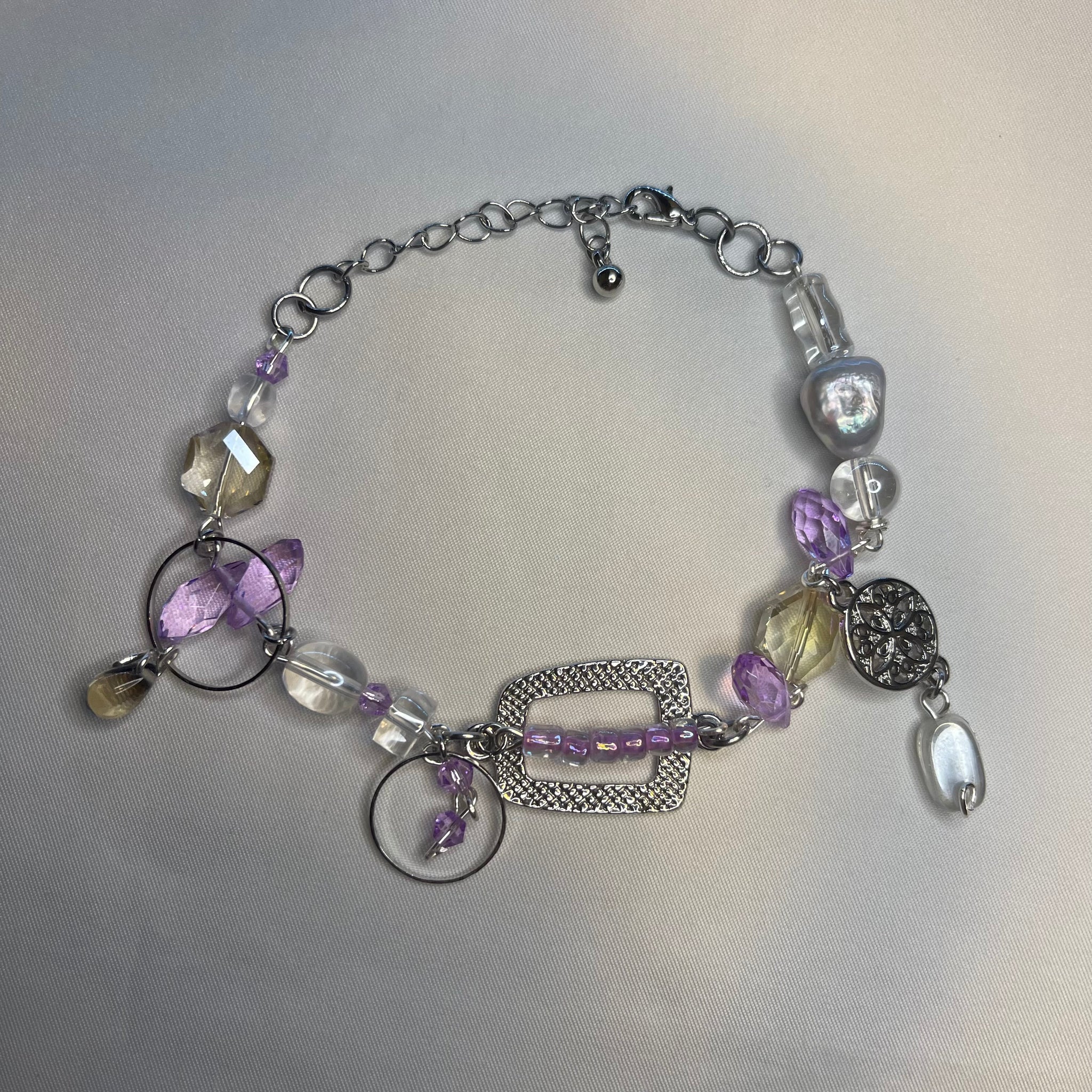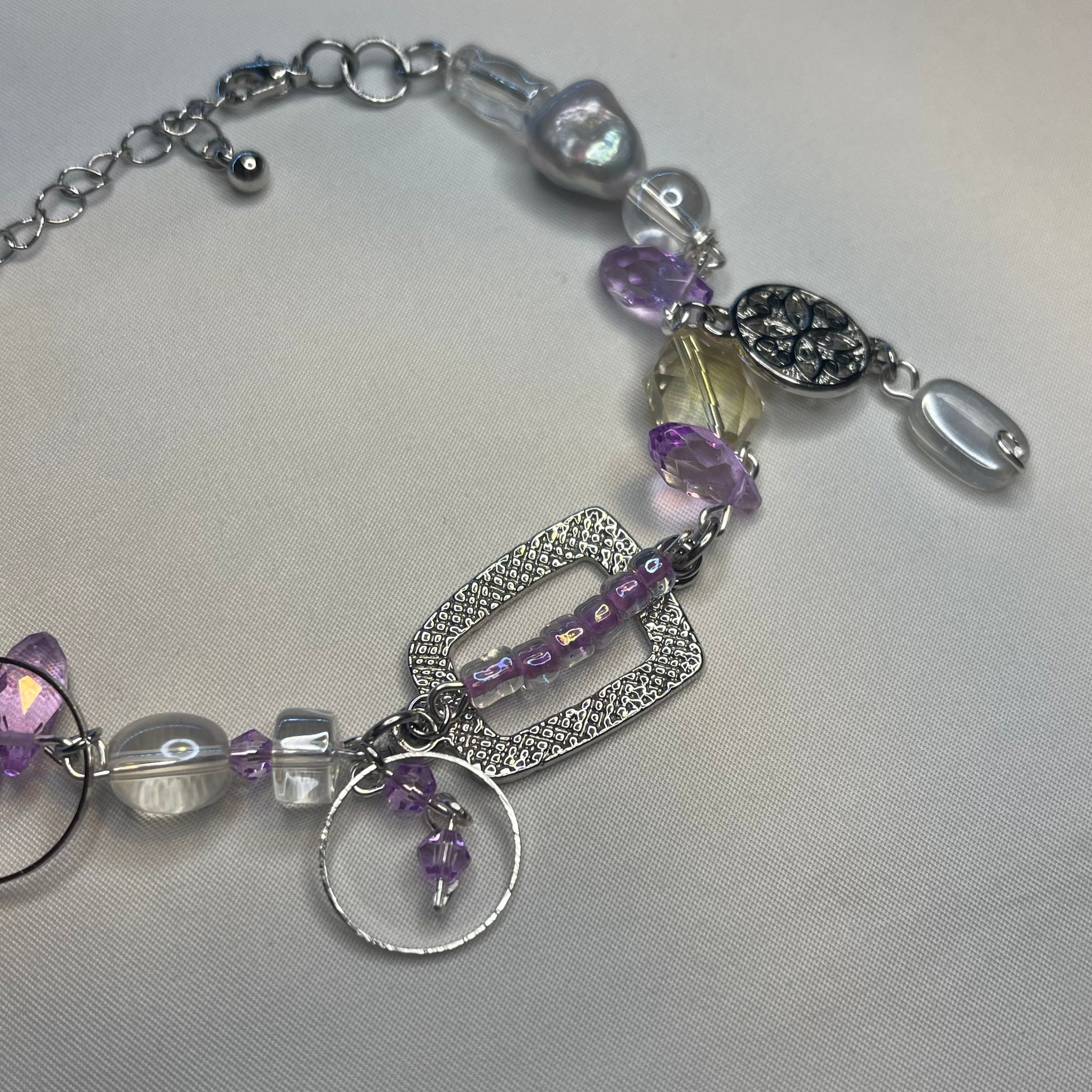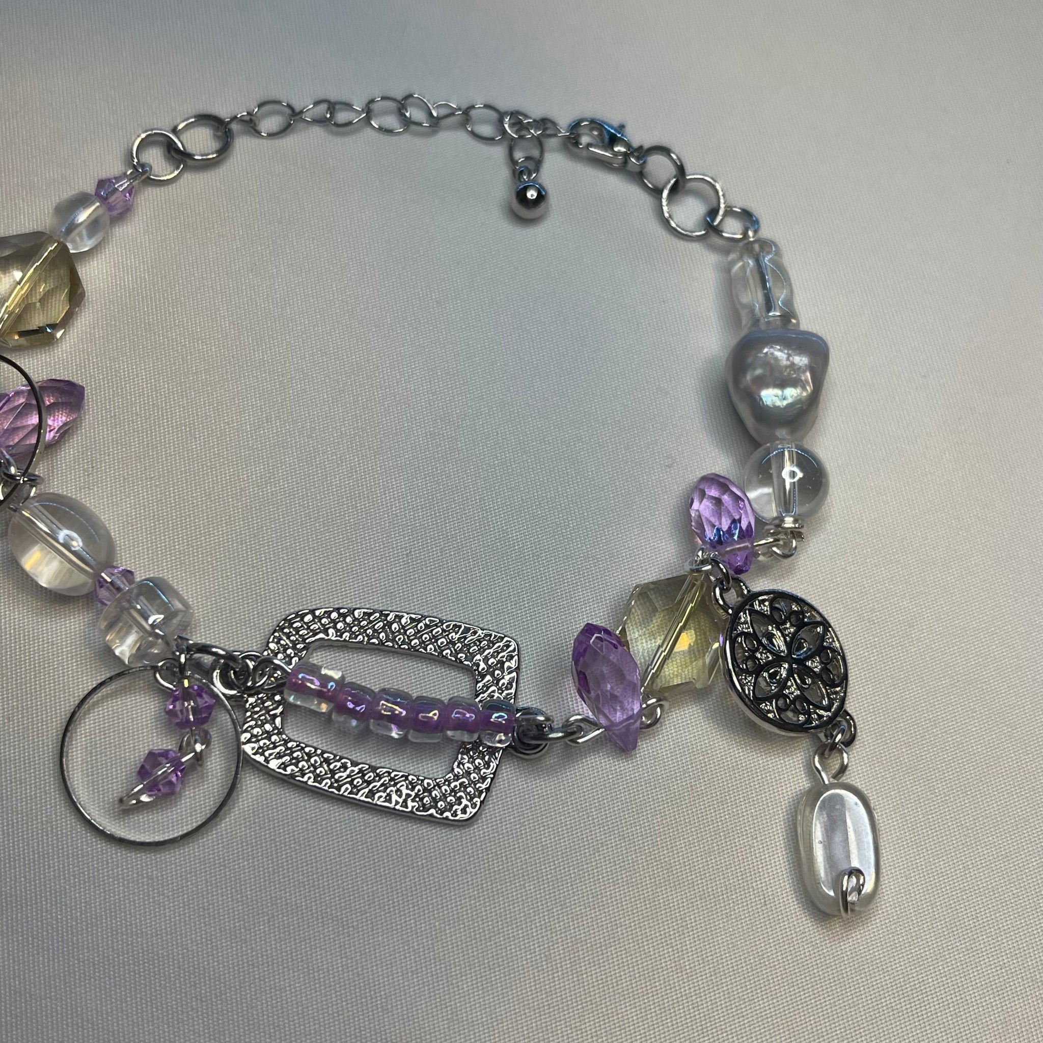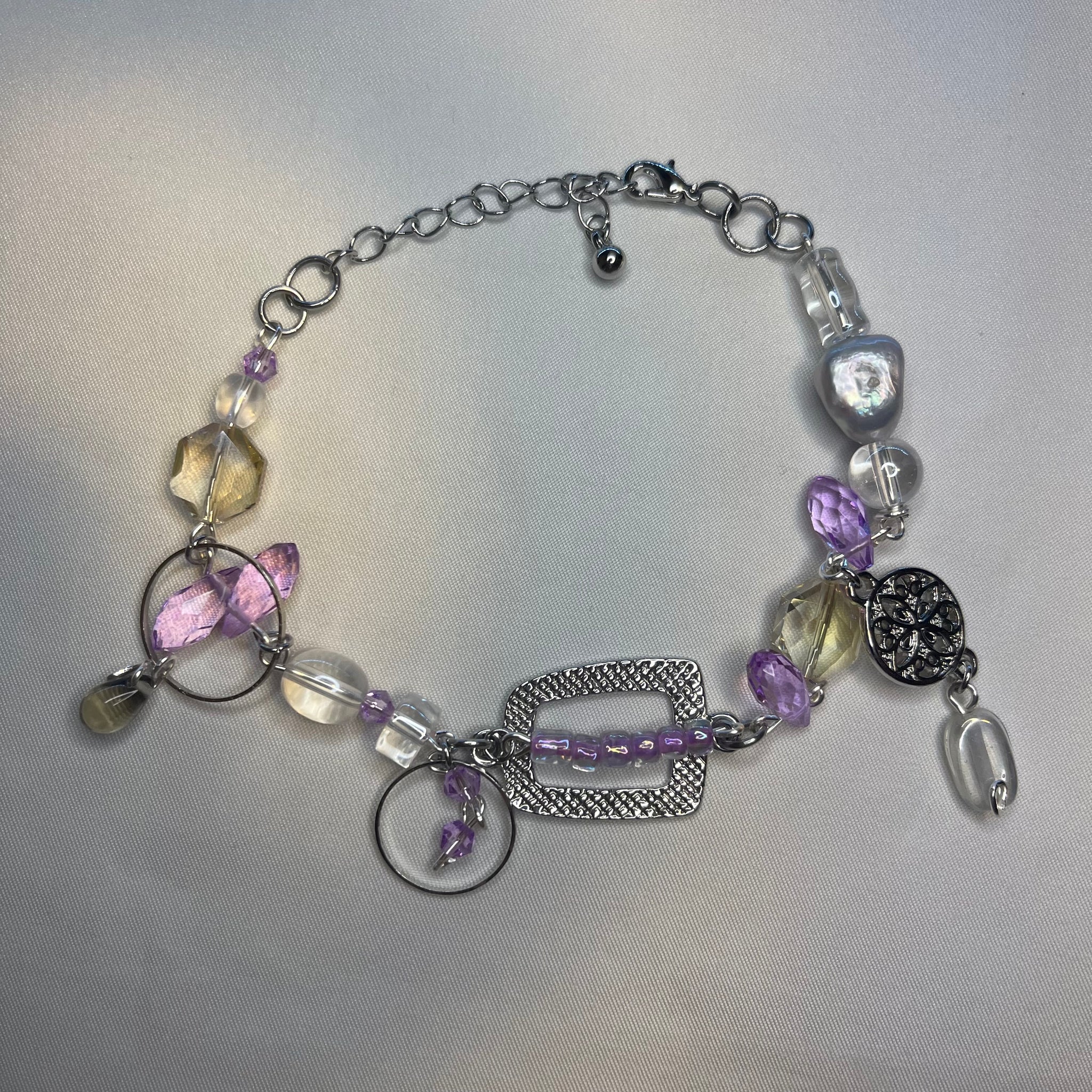 Made with: Glass, Clear Quartz, Fresh water pearl, Stainless steel and Rhodium
