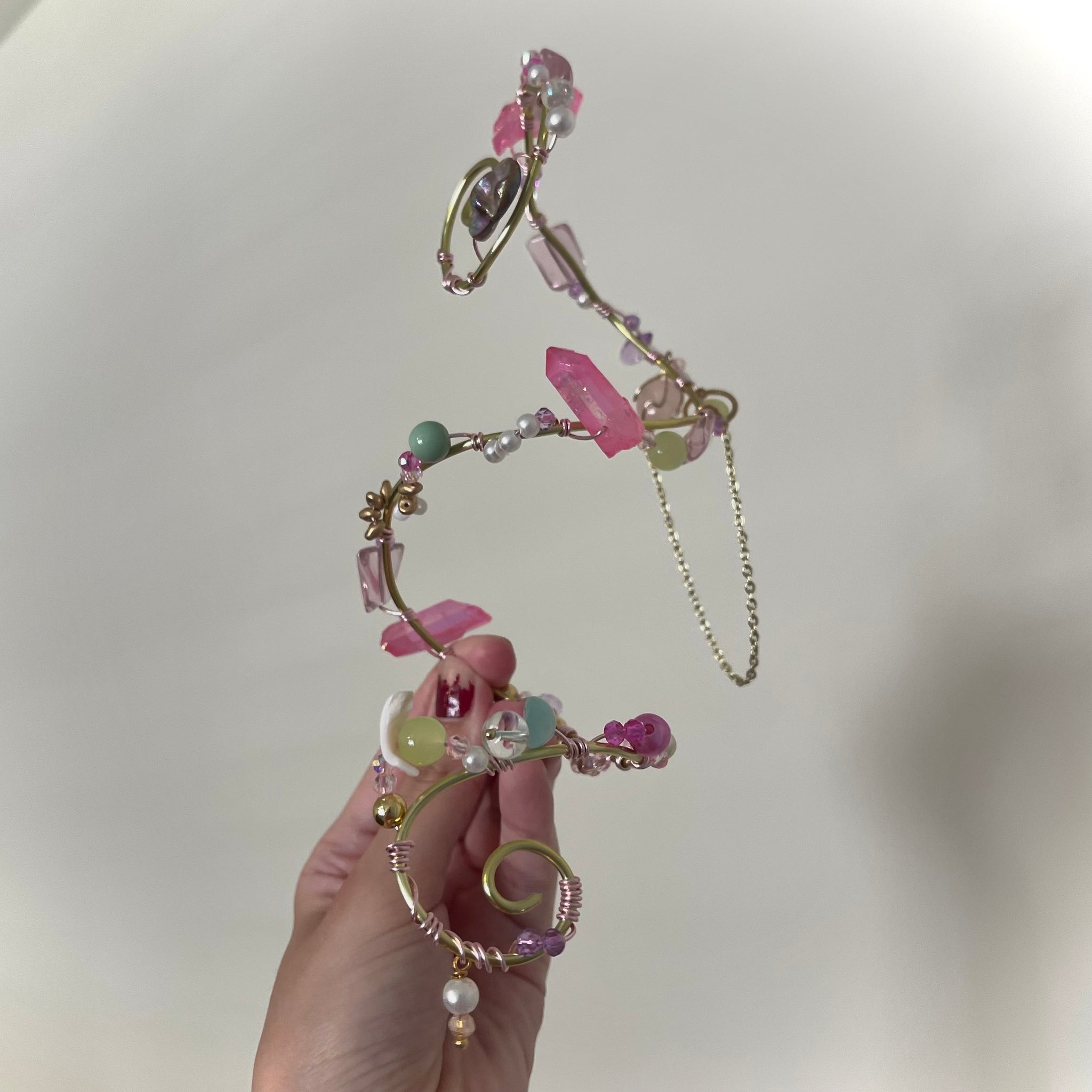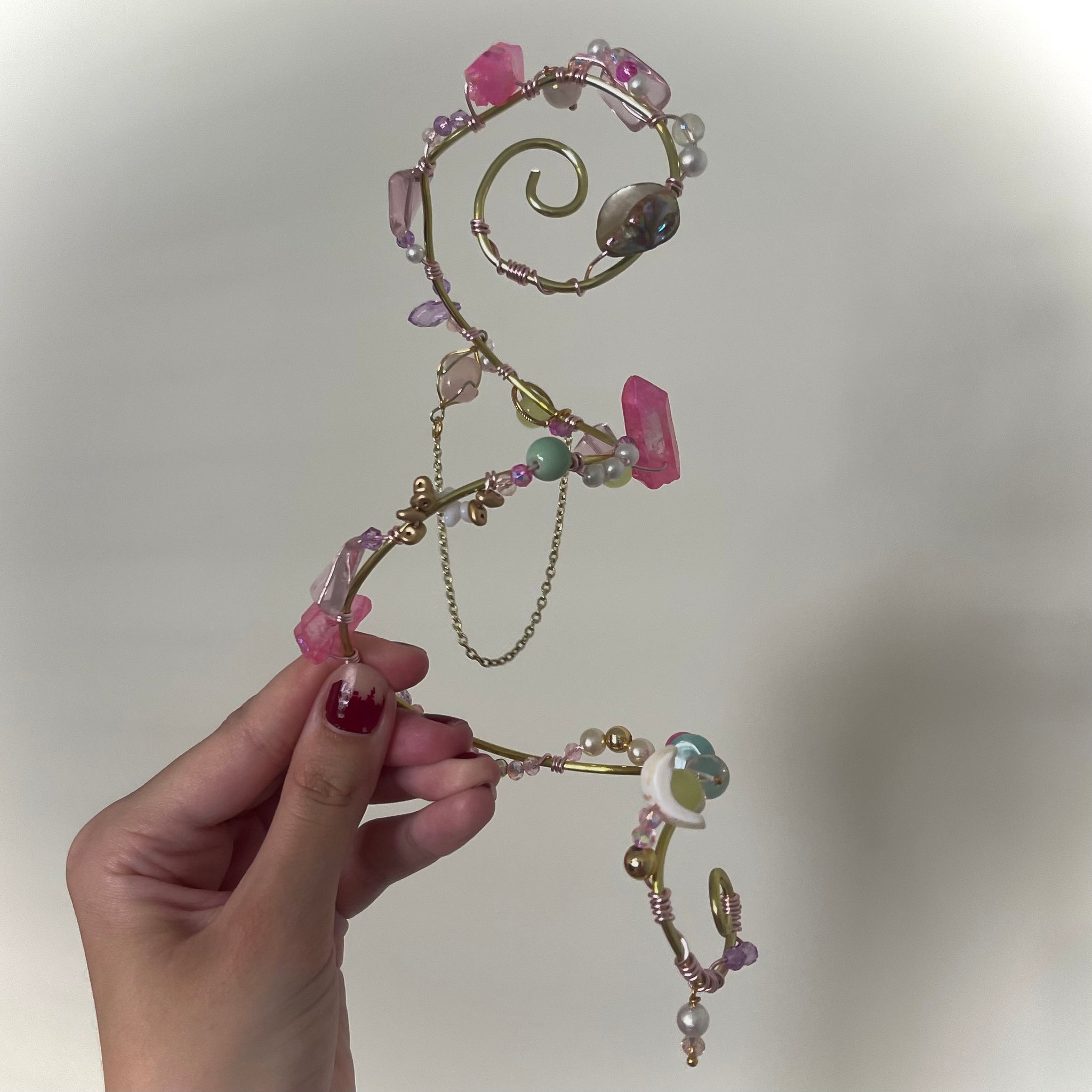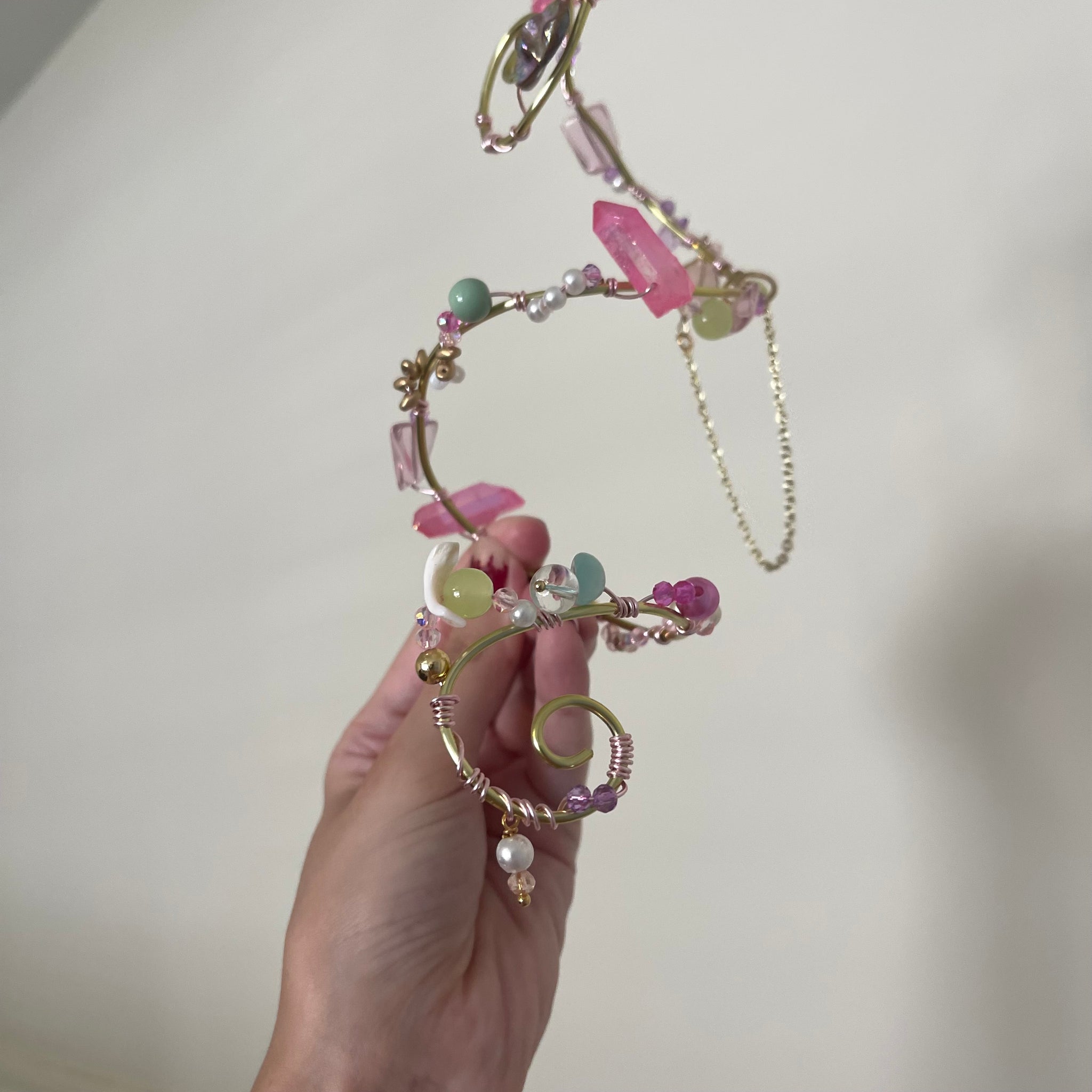 Made with: Shell, Glass, Rose quartz, Rhodium, Stainless steel chain, Pink luster.