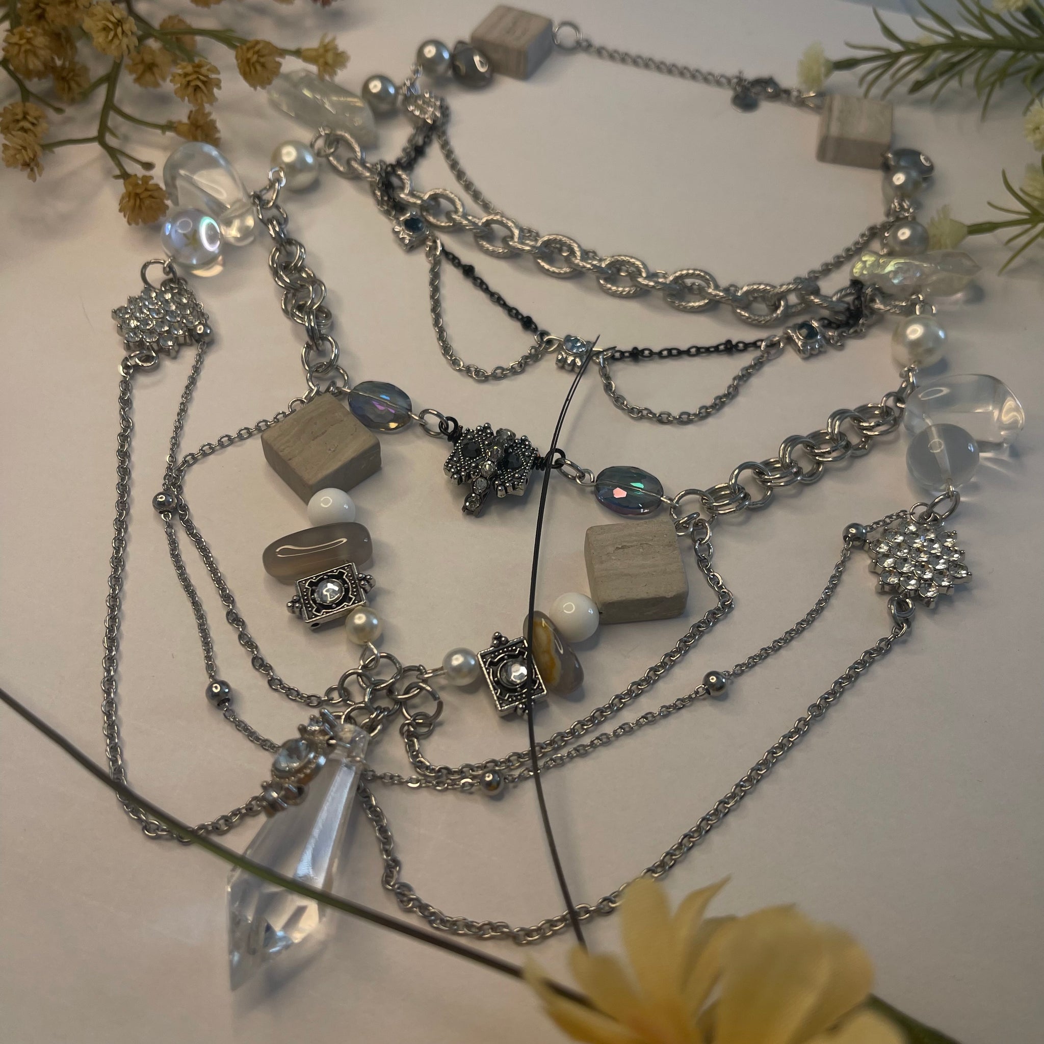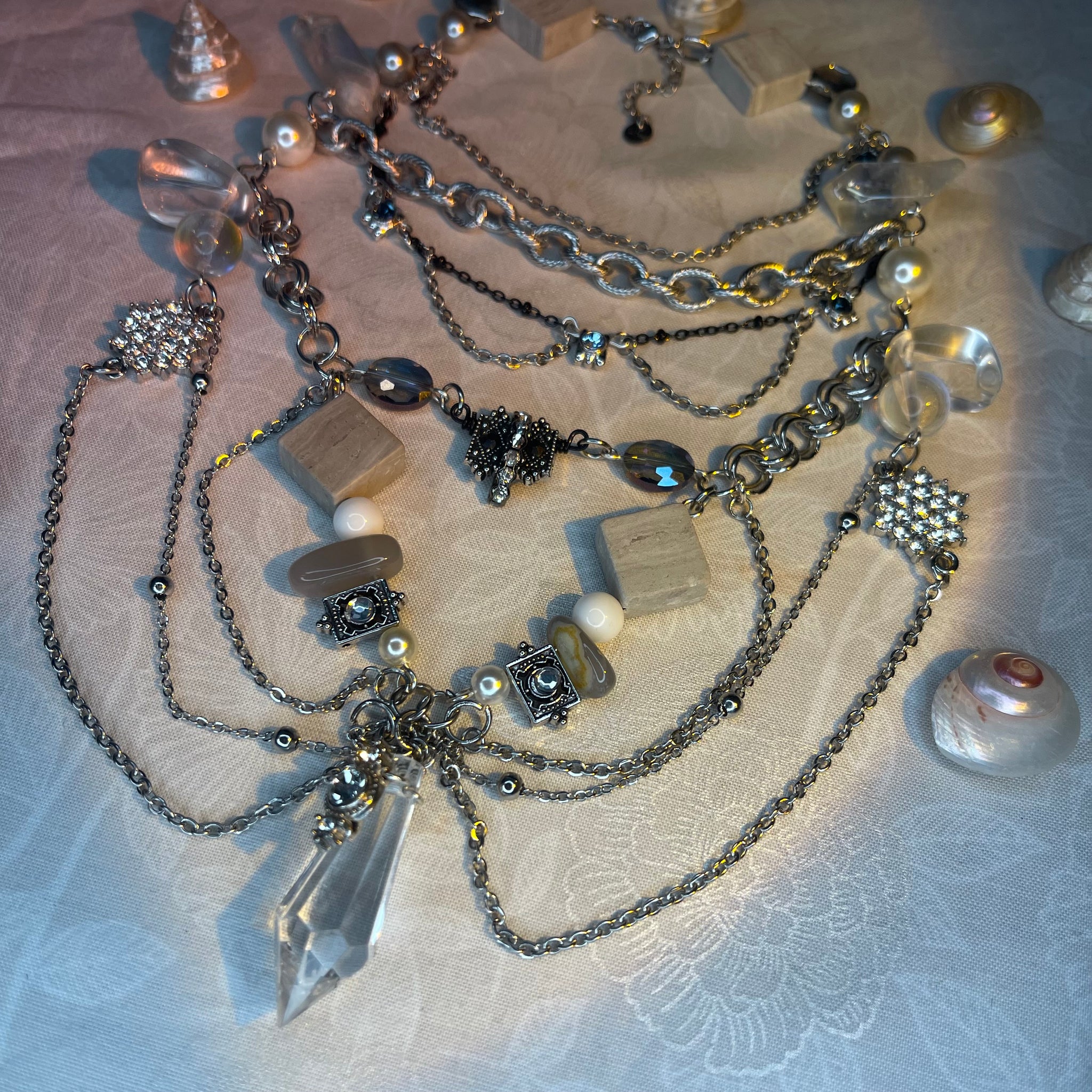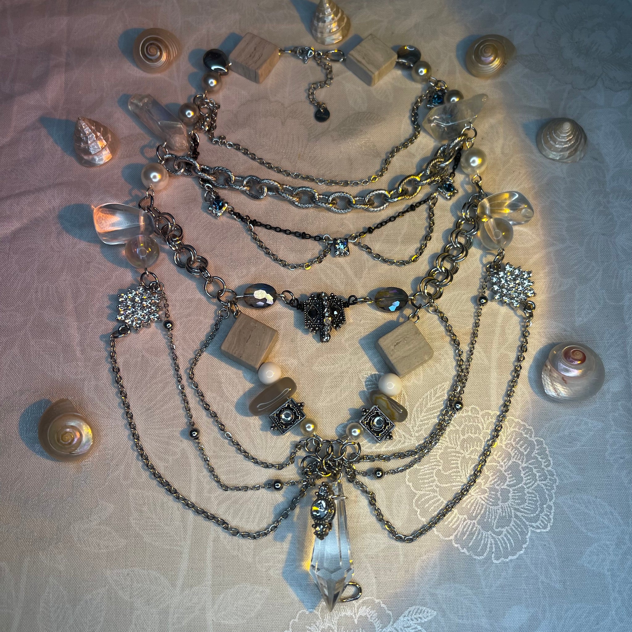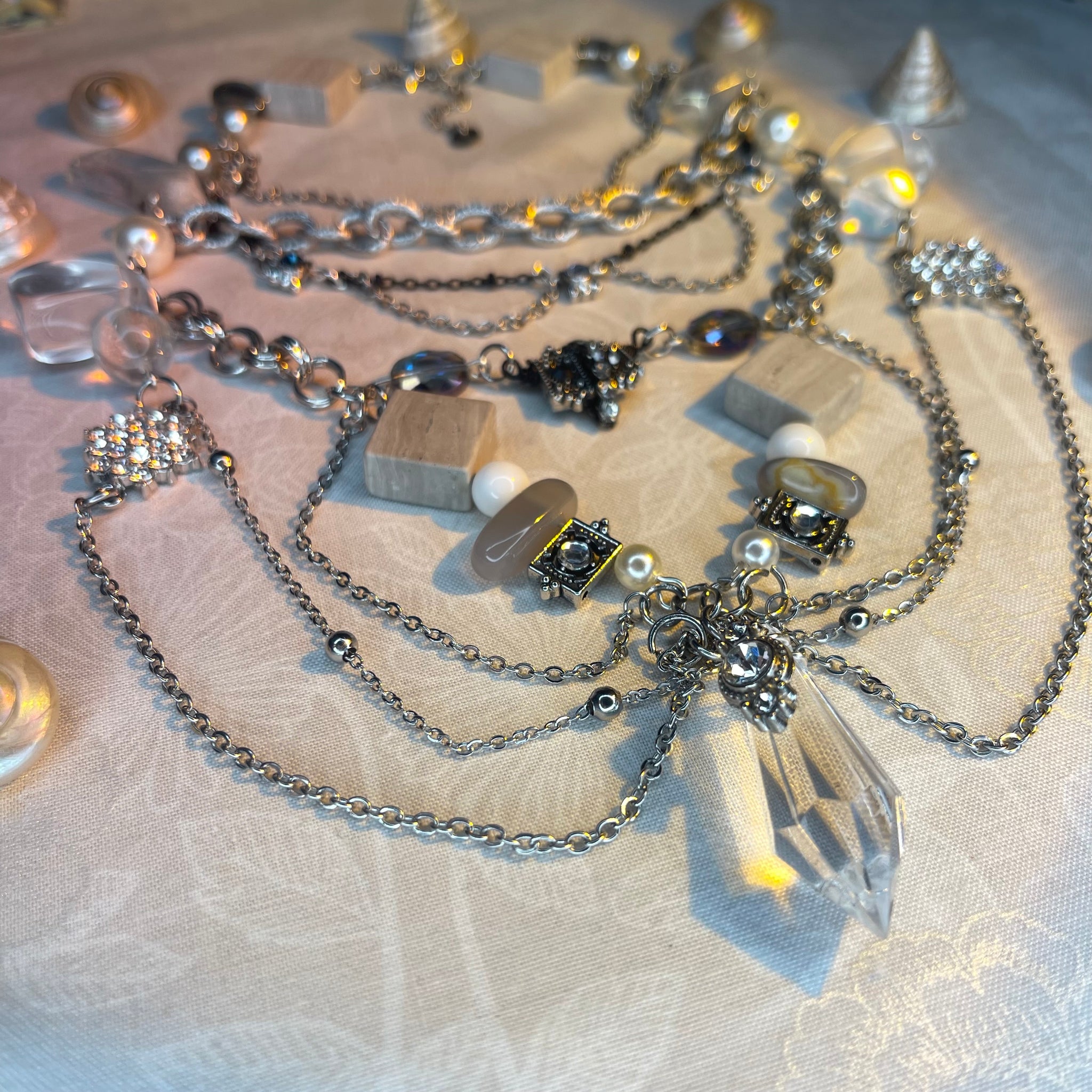 Made with: Stainless steel, Clear quartz, Marble, Glass, Labradorite, Opal, Metals and Quartz.