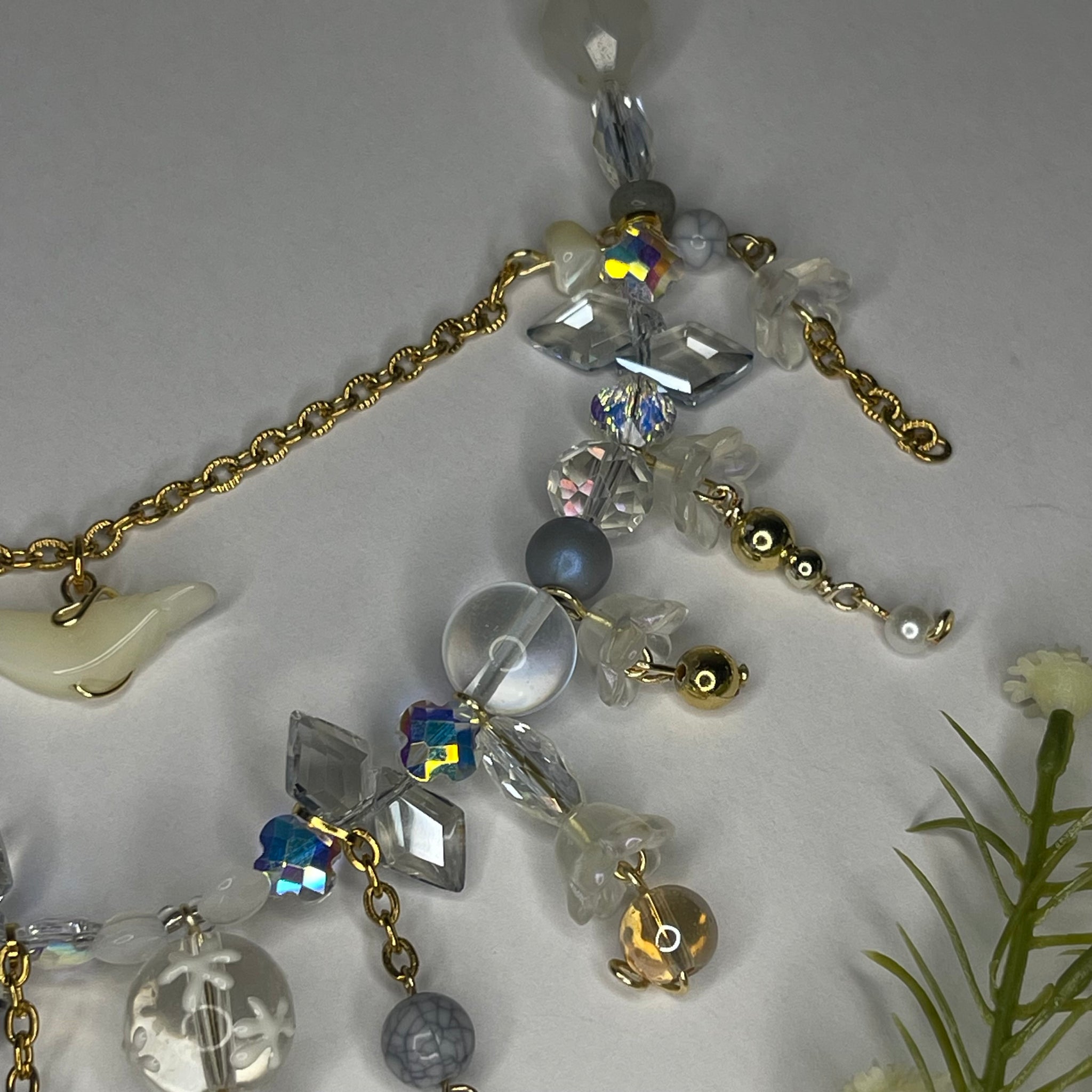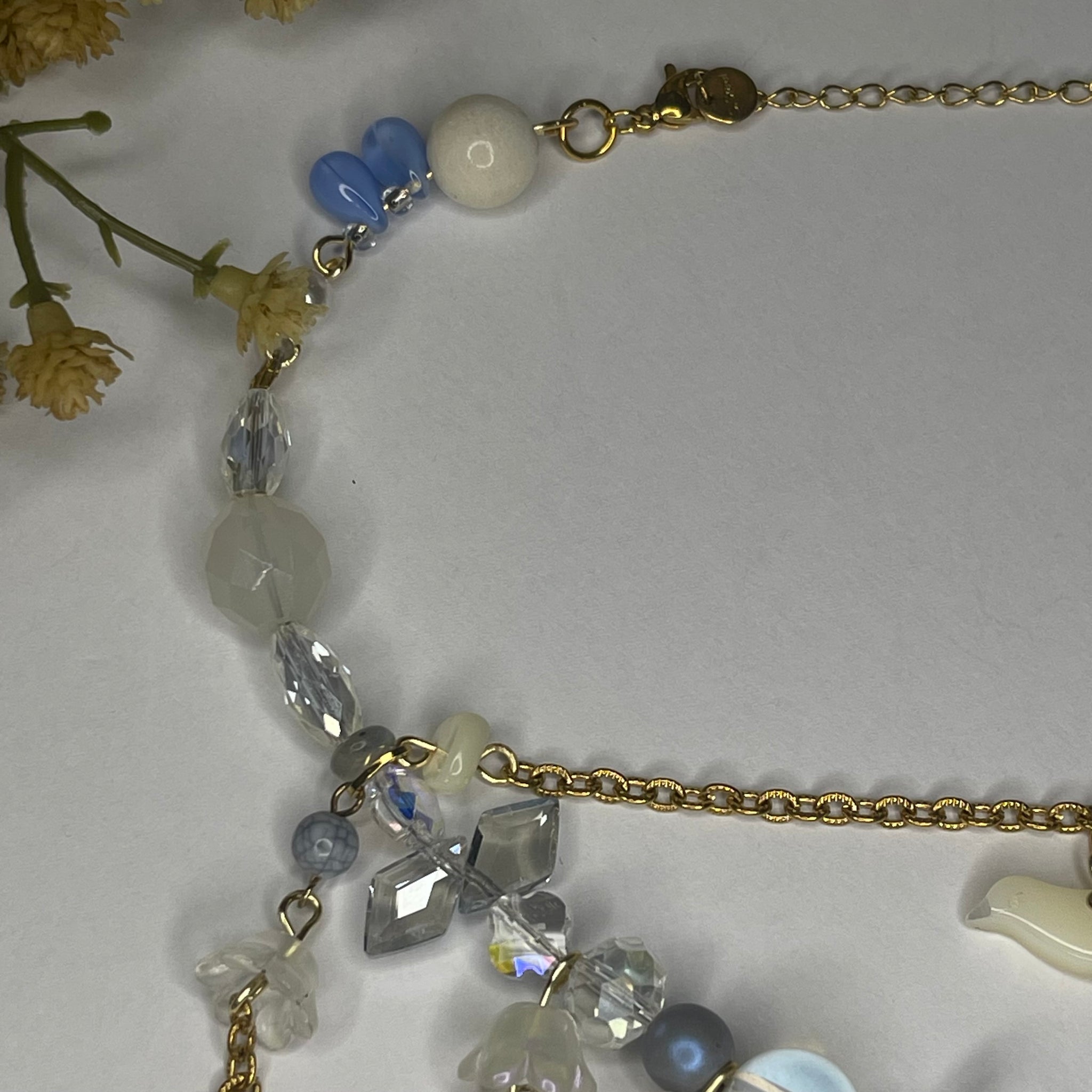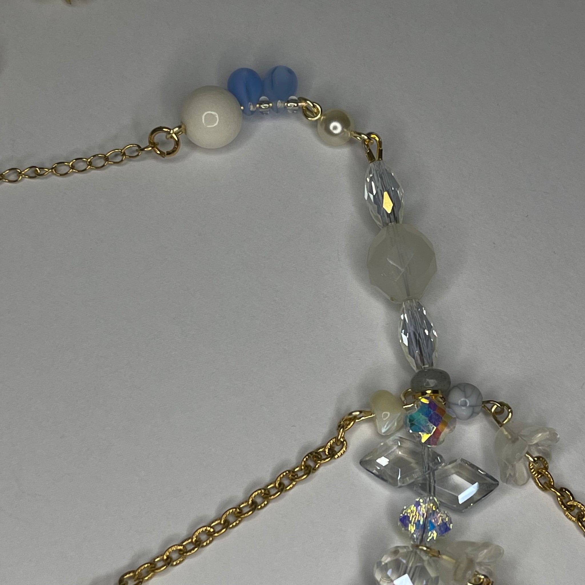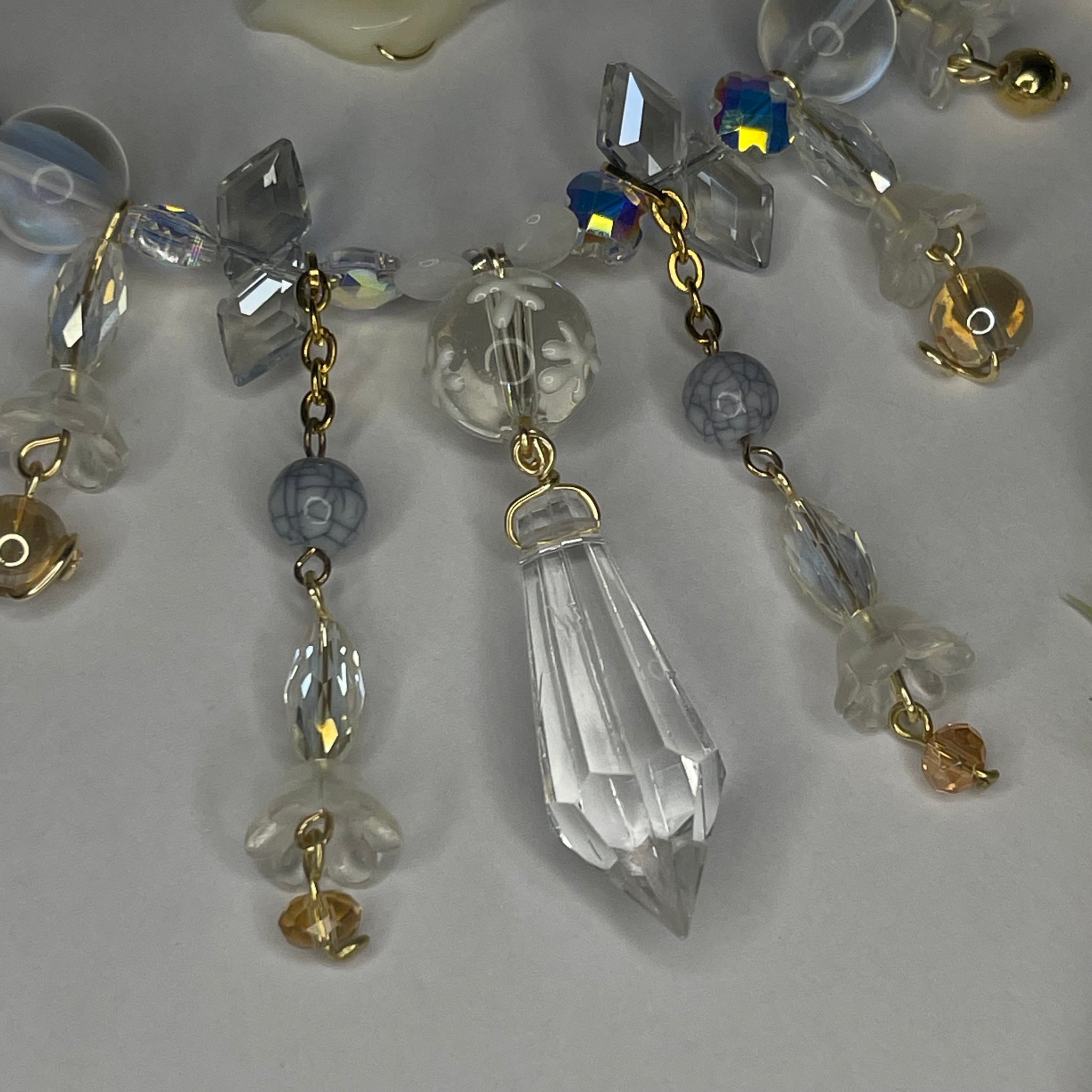 Made with: Glass, Mother of pearl, Clear Quartz, Opal, Stainless steel and blue lapiz.