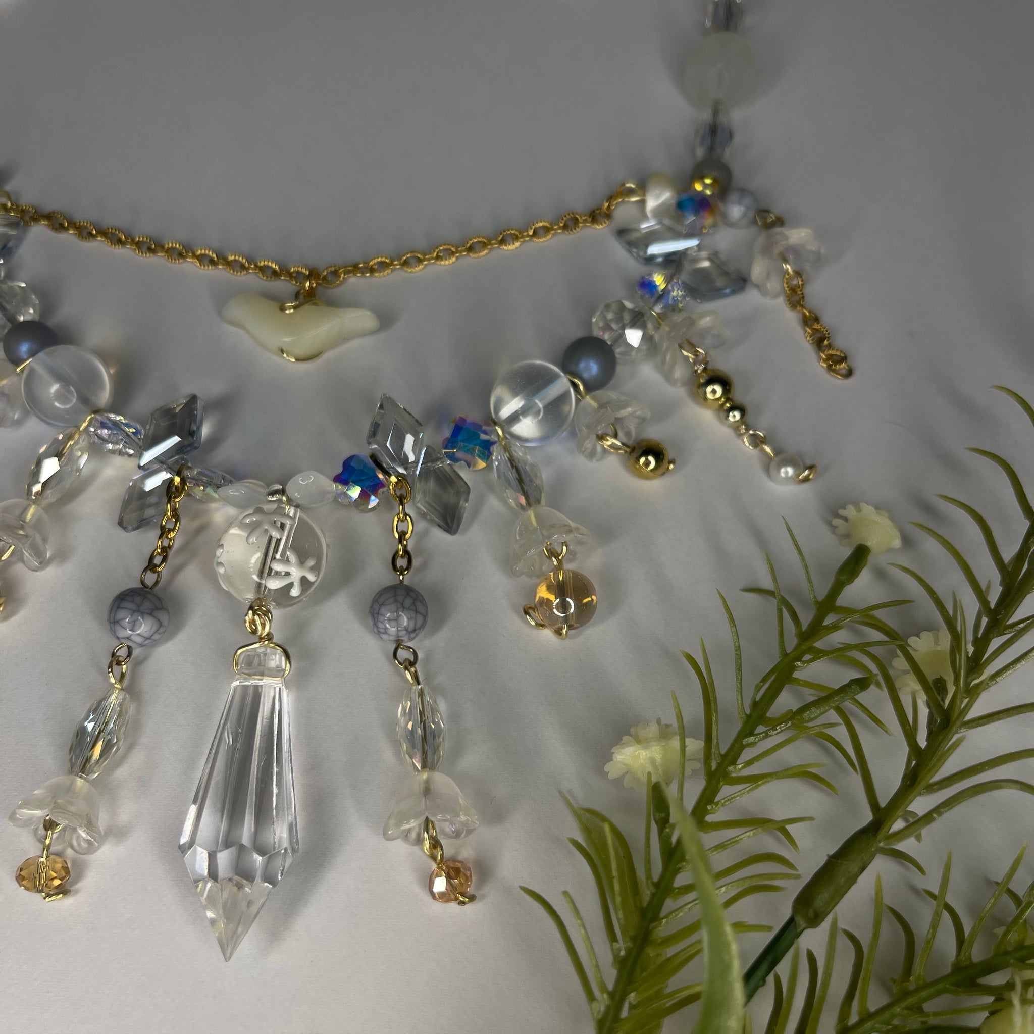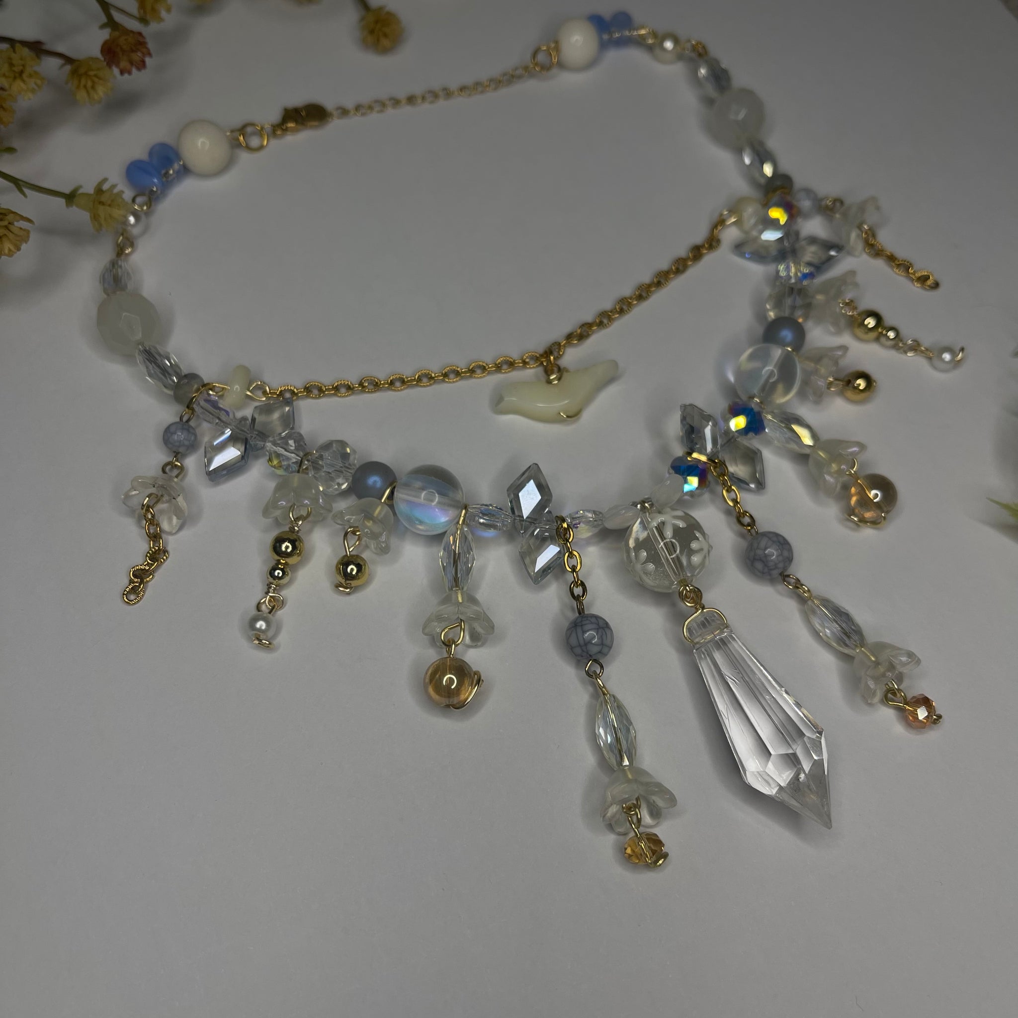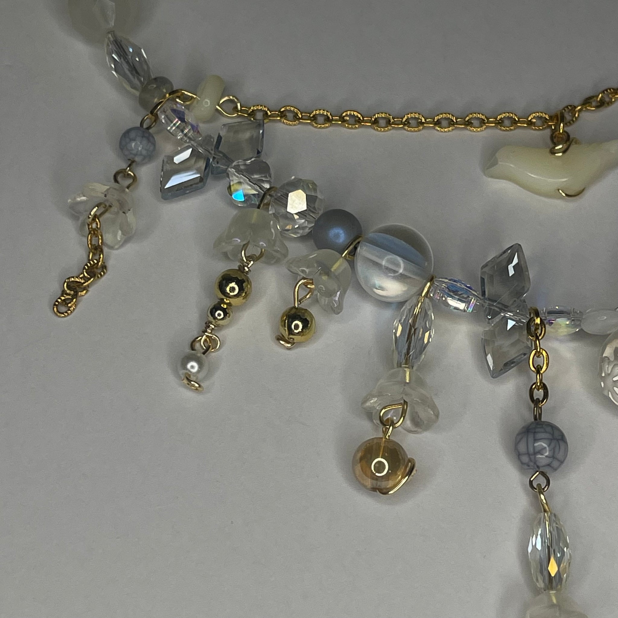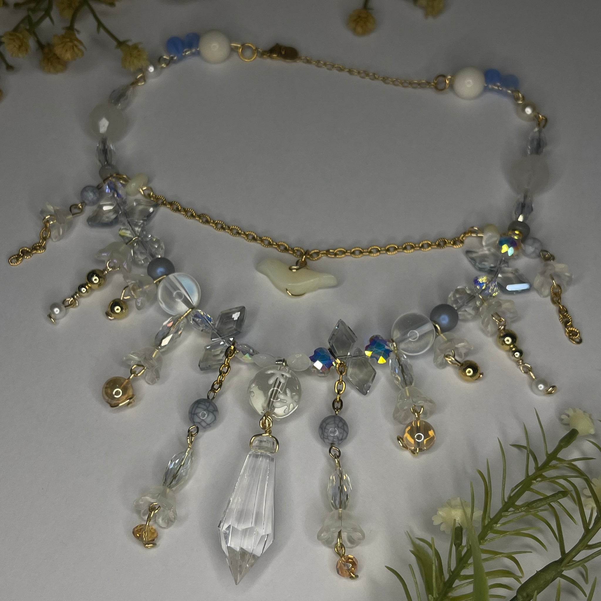 Made with: Glass, Mother of pearl, Clear Quartz, Opal, Stainless steel and blue lapiz.