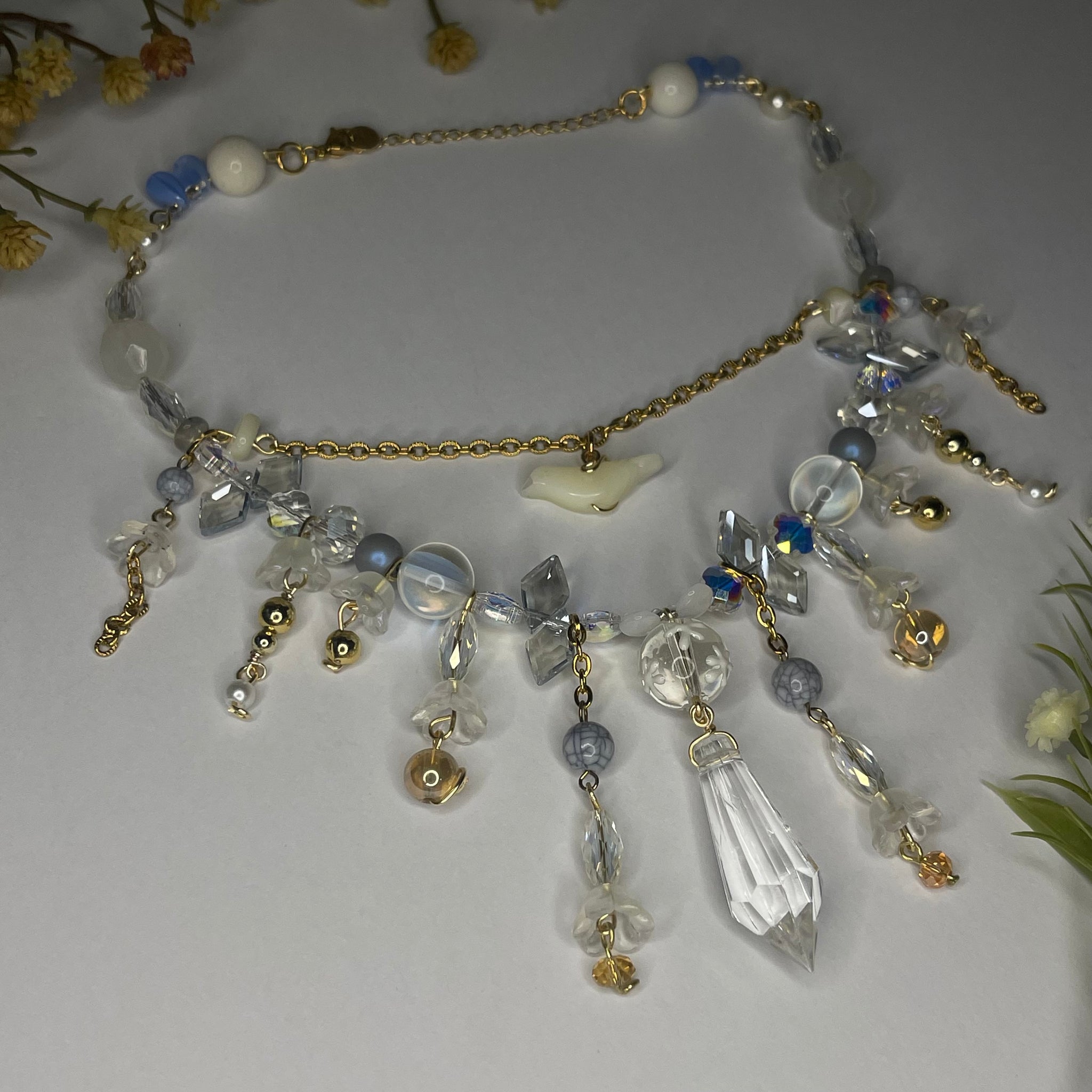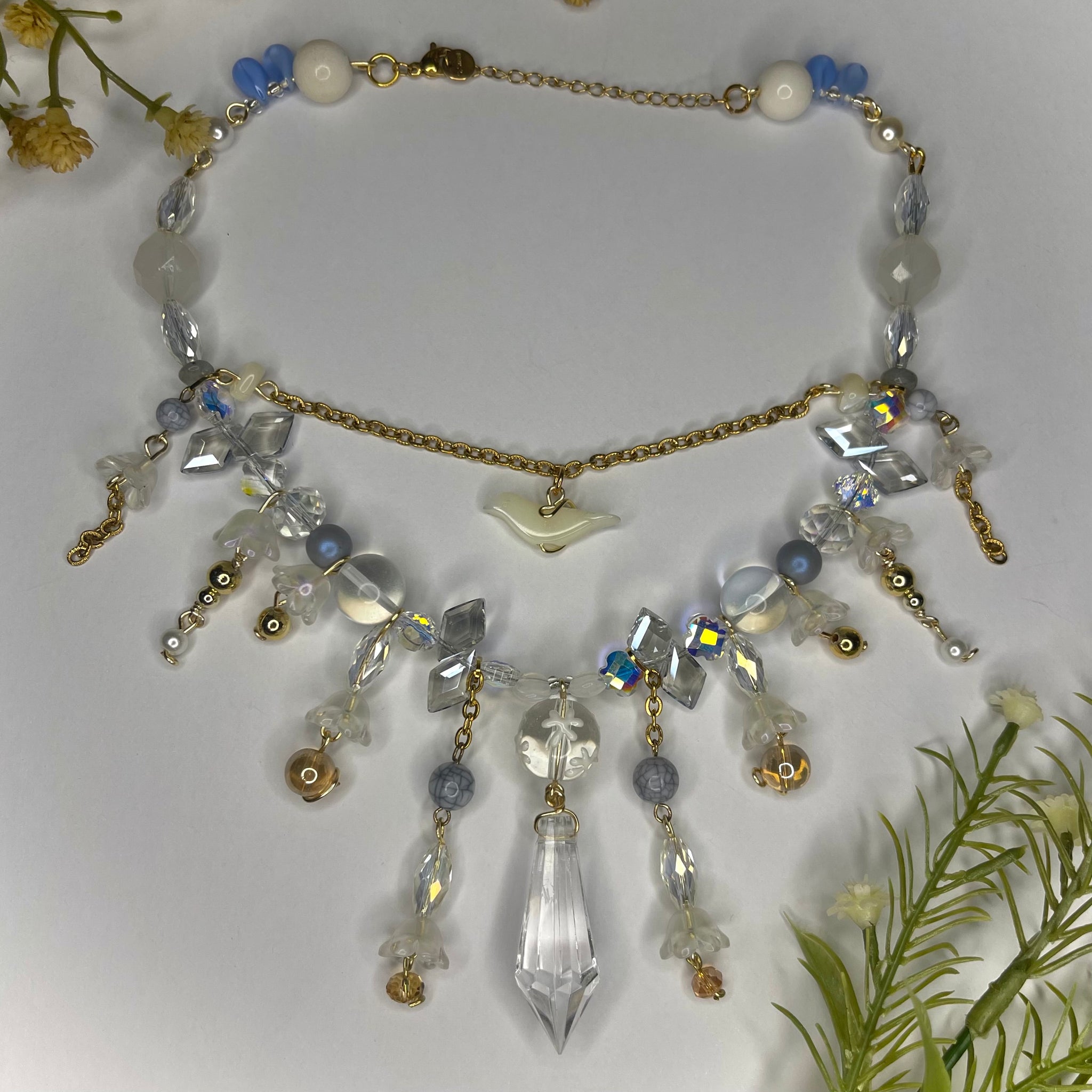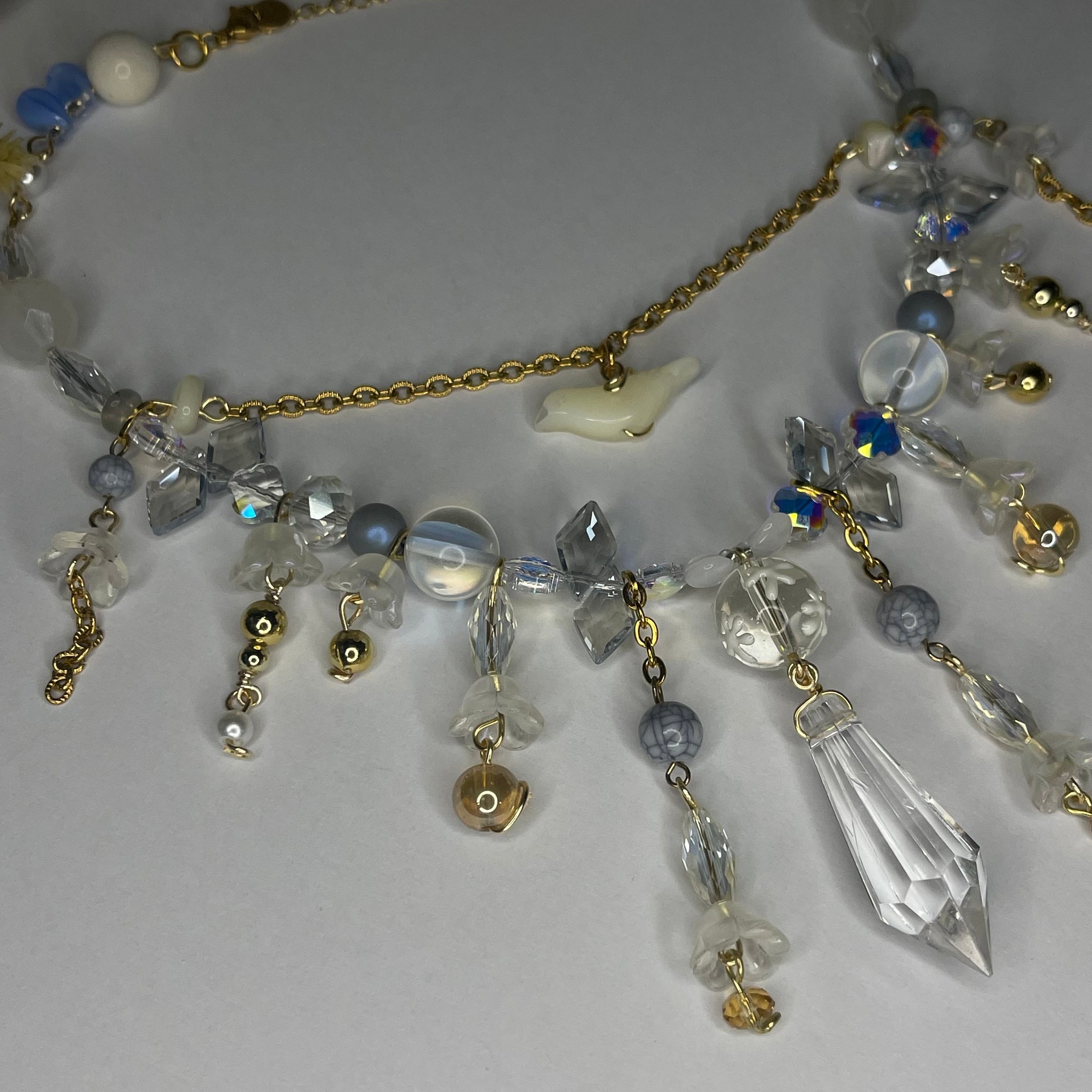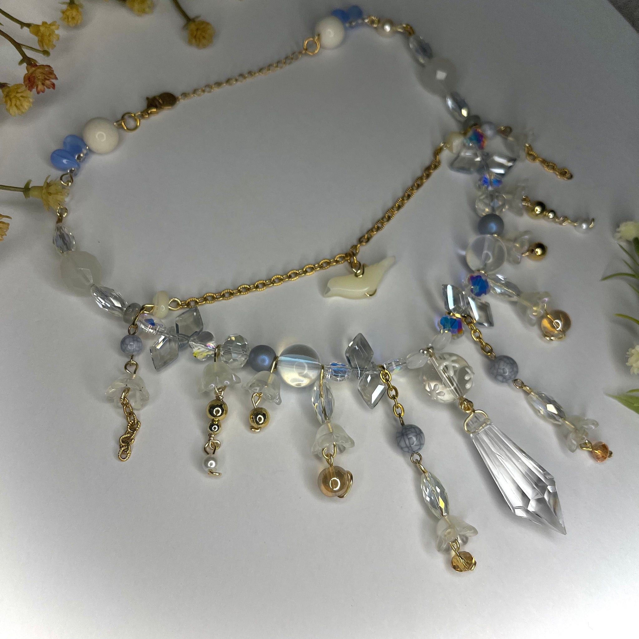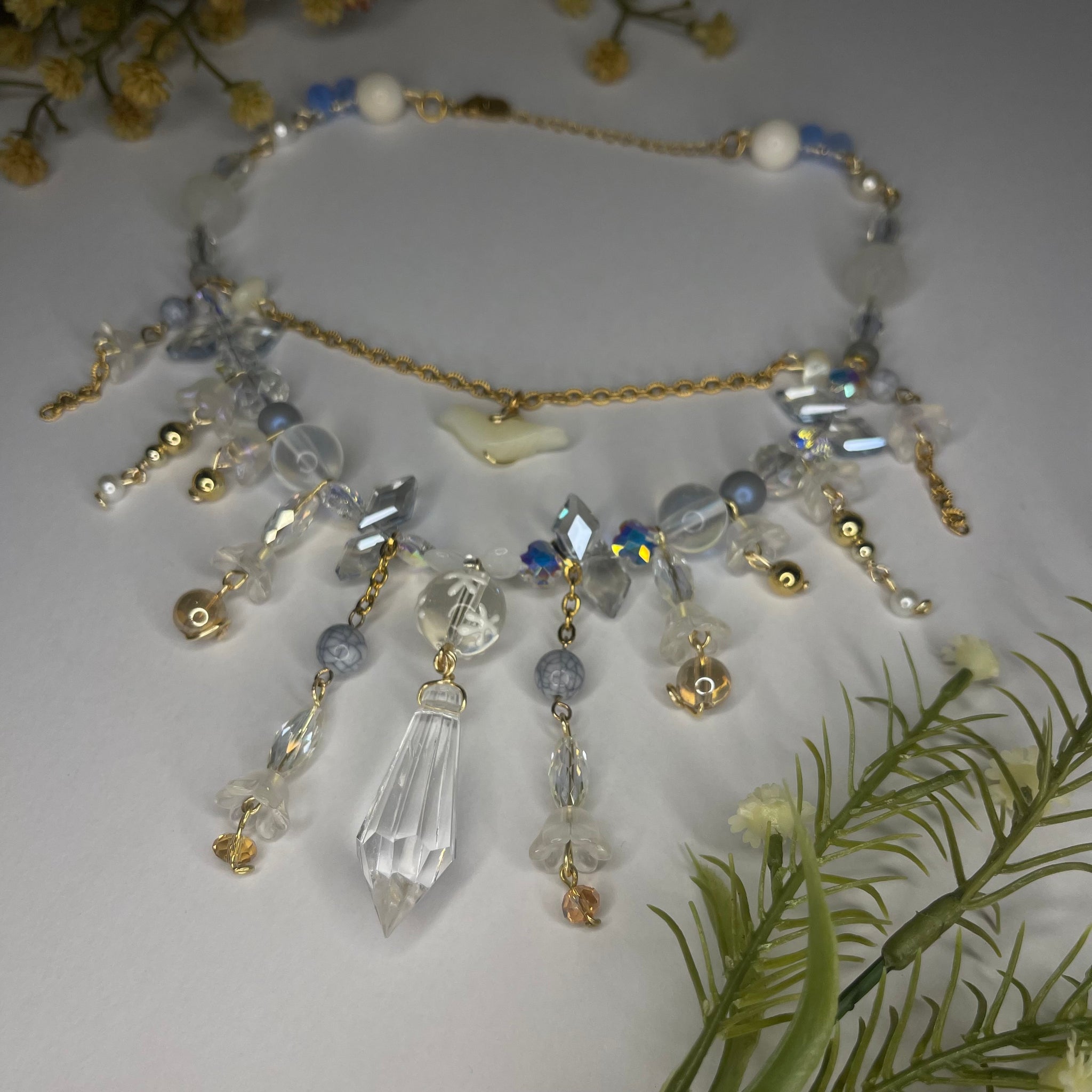 Made with: Glass, Mother of pearl, Clear Quartz, Opal, Stainless steel and blue lapiz.