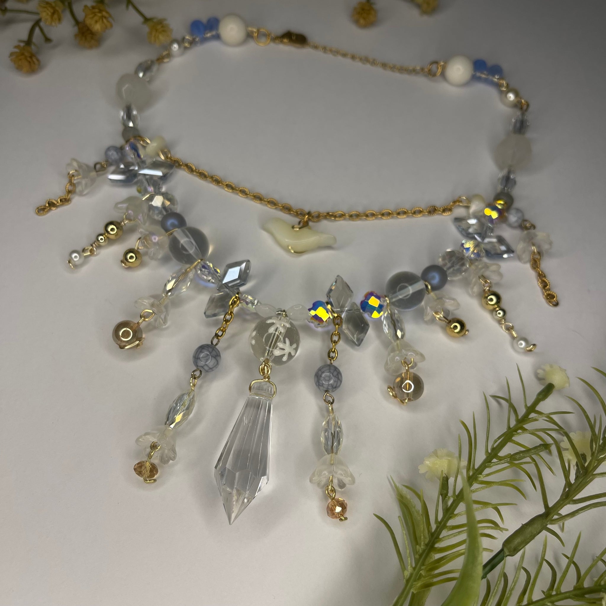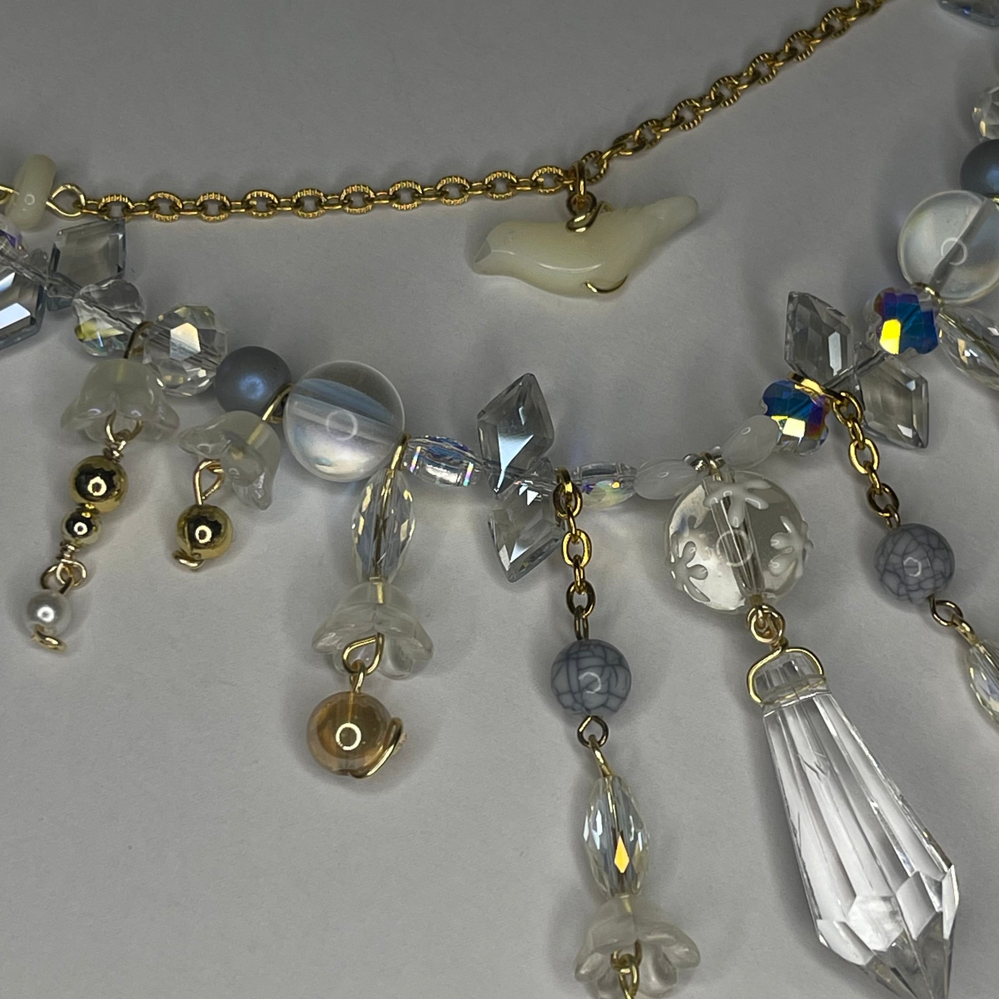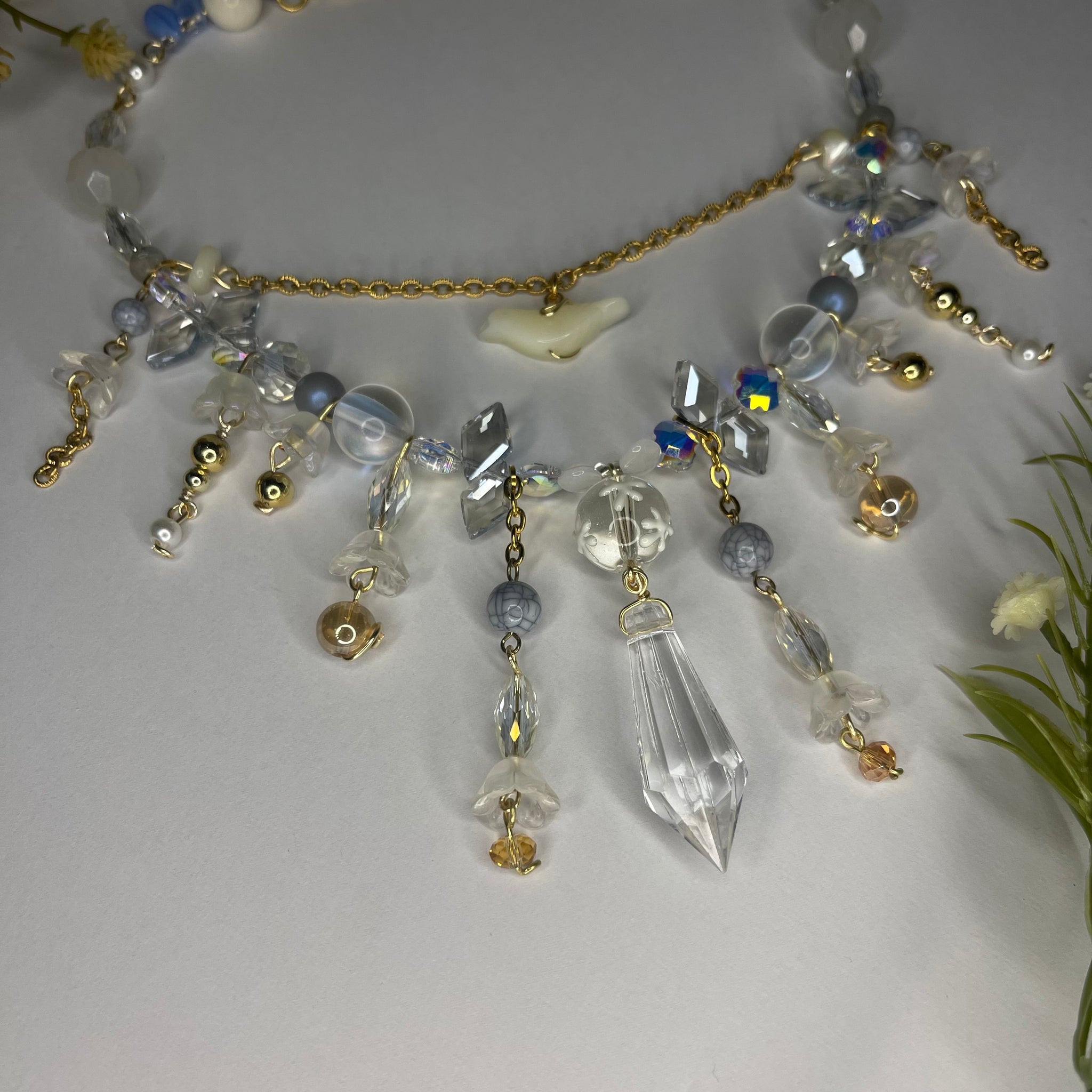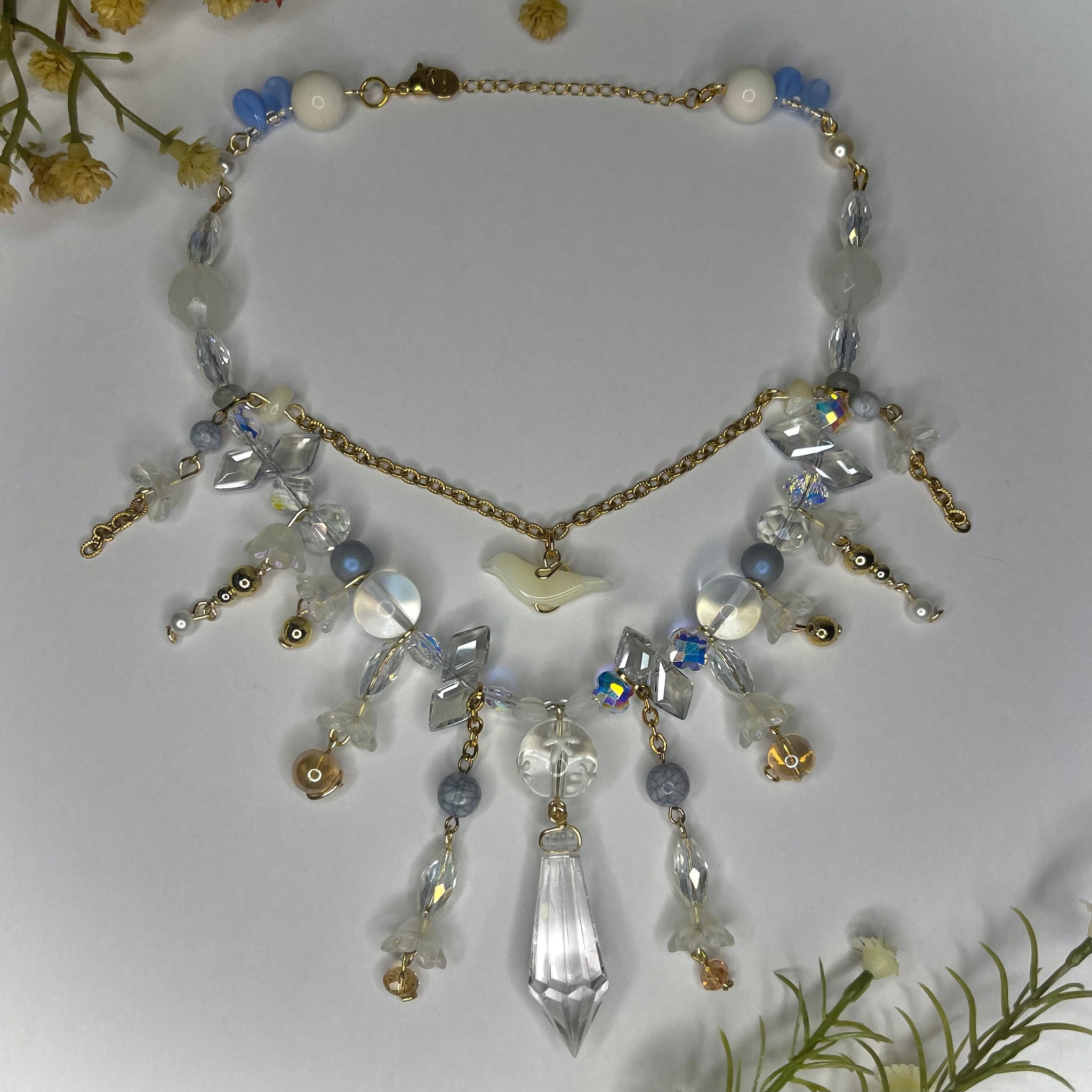 Made with: Glass, Mother of pearl, Clear Quartz, Opal, Stainless steel and blue lapiz.