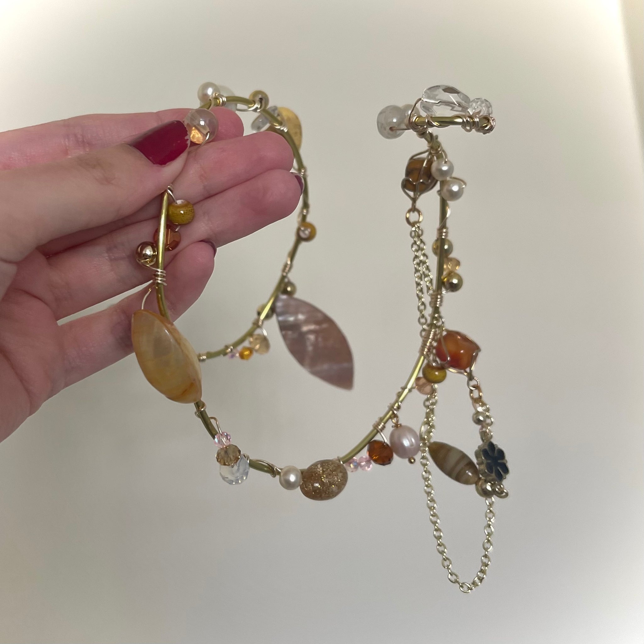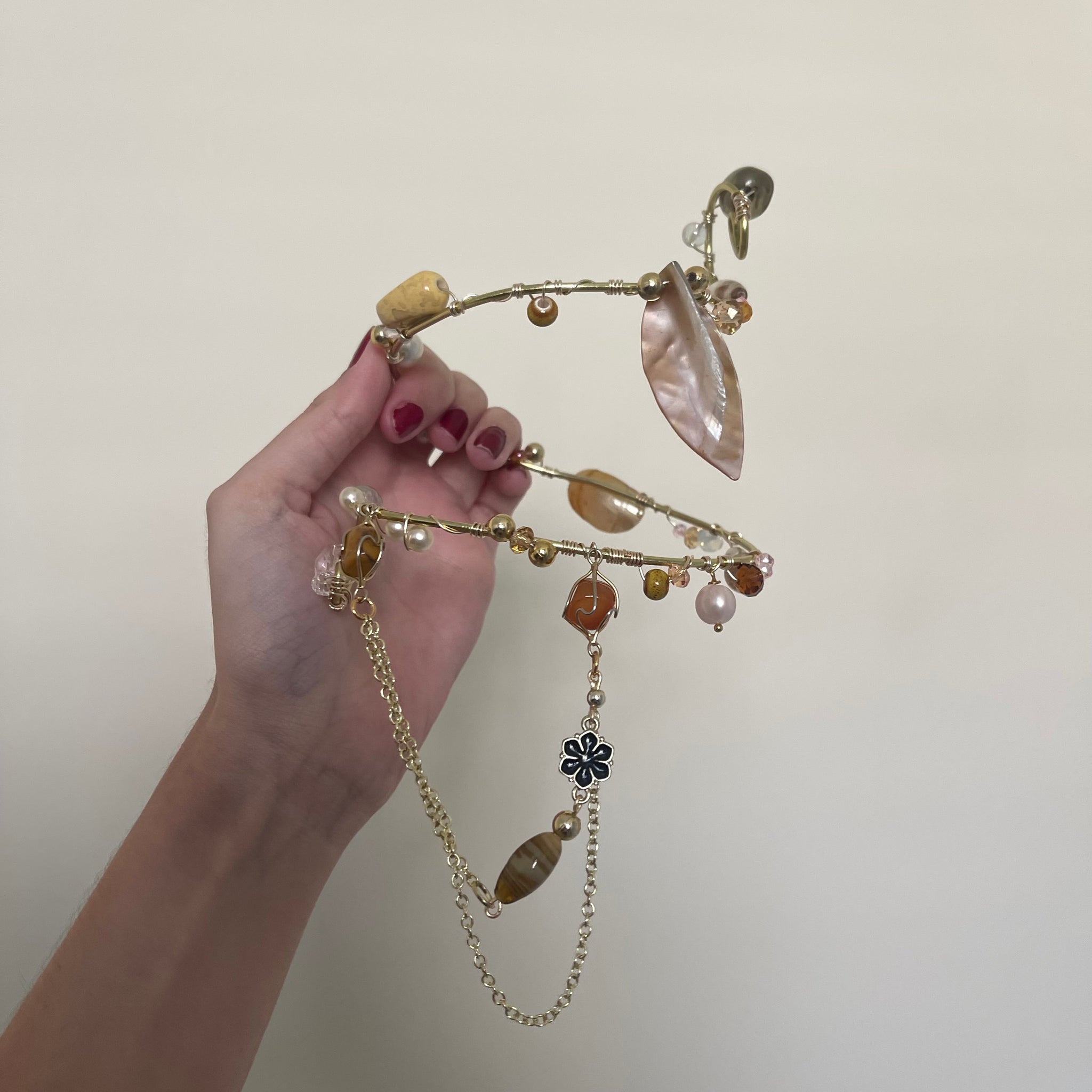 Made with: Glass, Seashell, Freshwater pearls, Metals and chandelier glass.