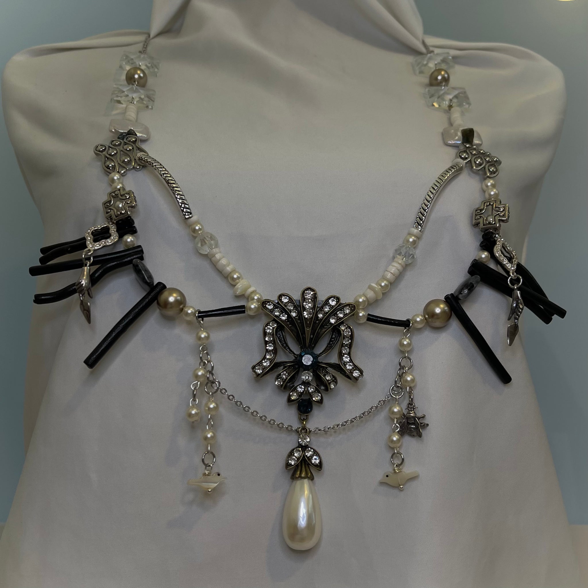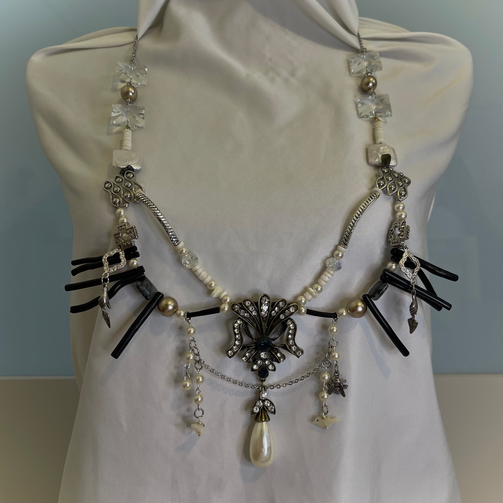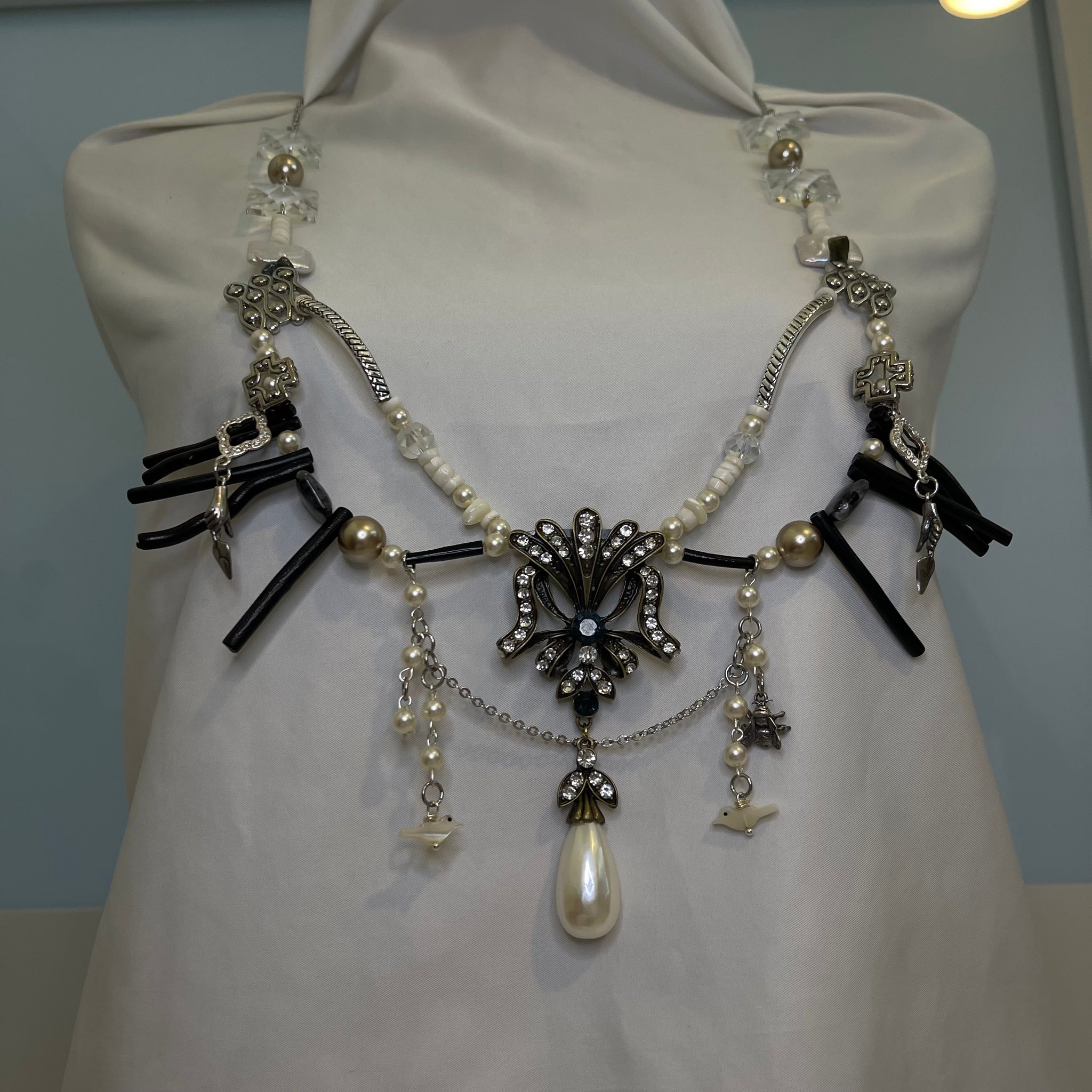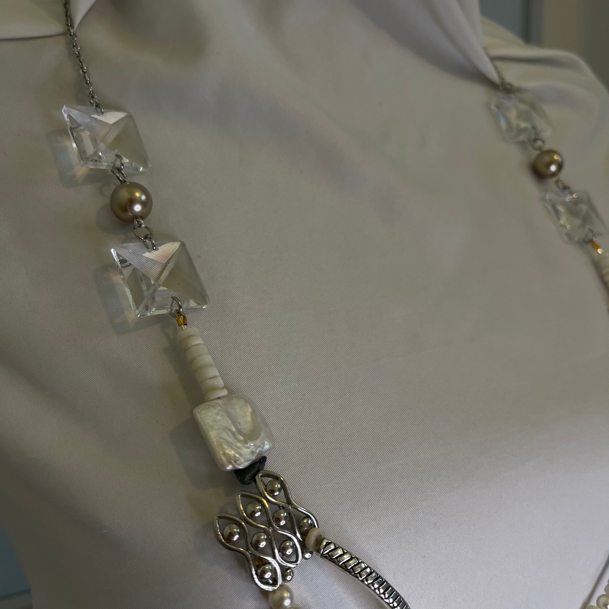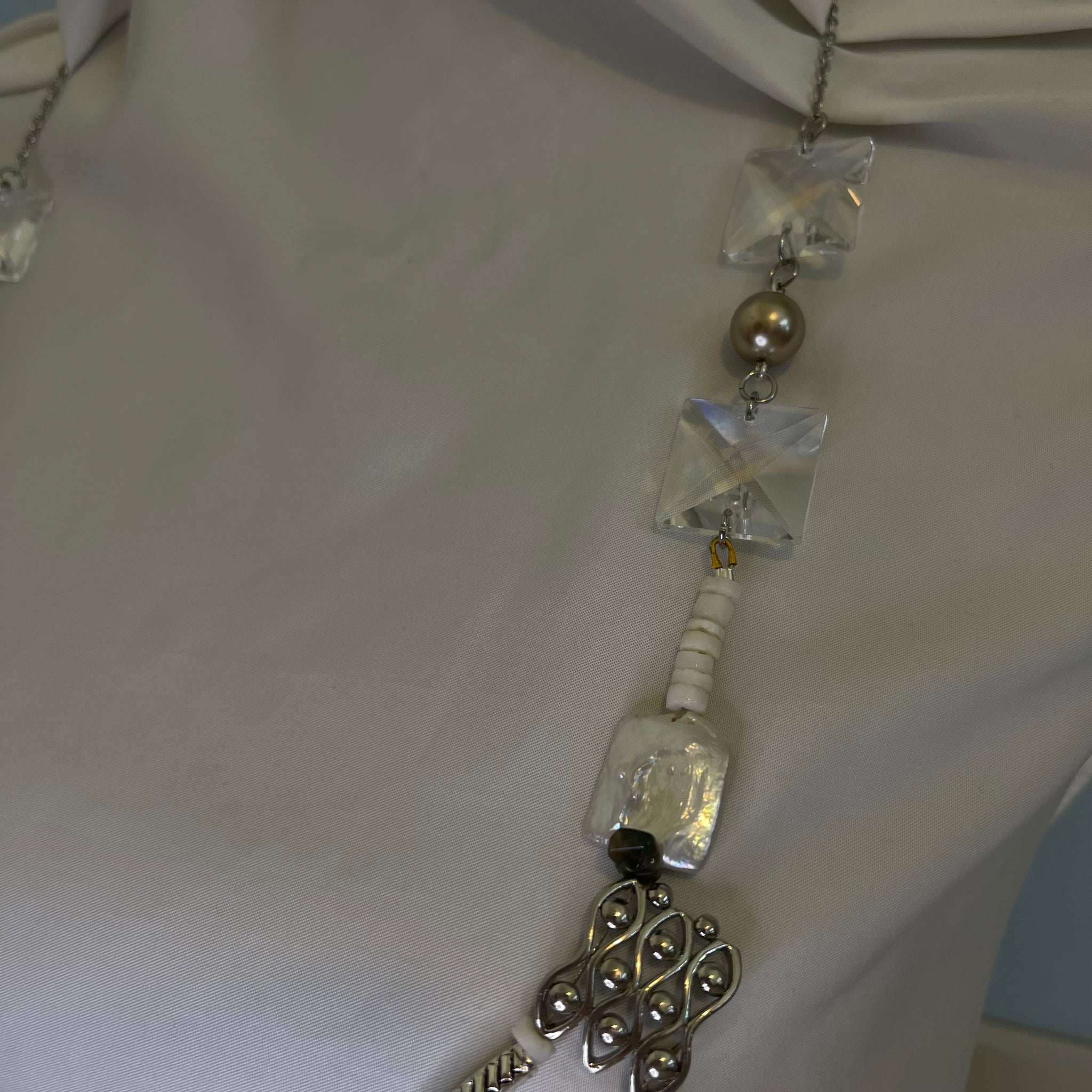 Made with: Rhodium, Metals, Glass, Chandelier glass, Shells, Mother of pearl and Freshwater pearls.