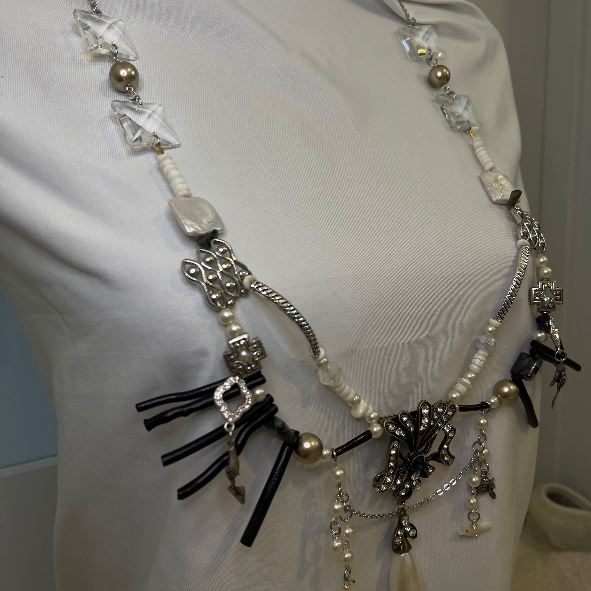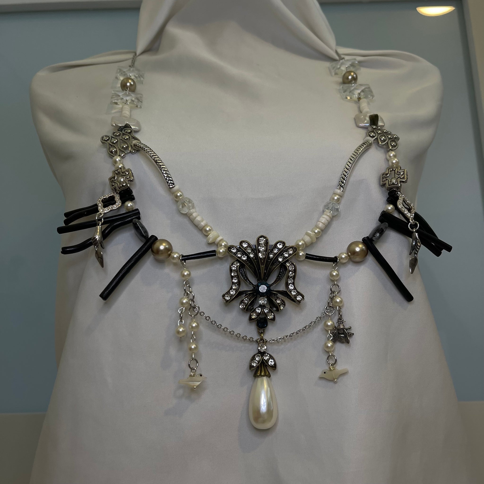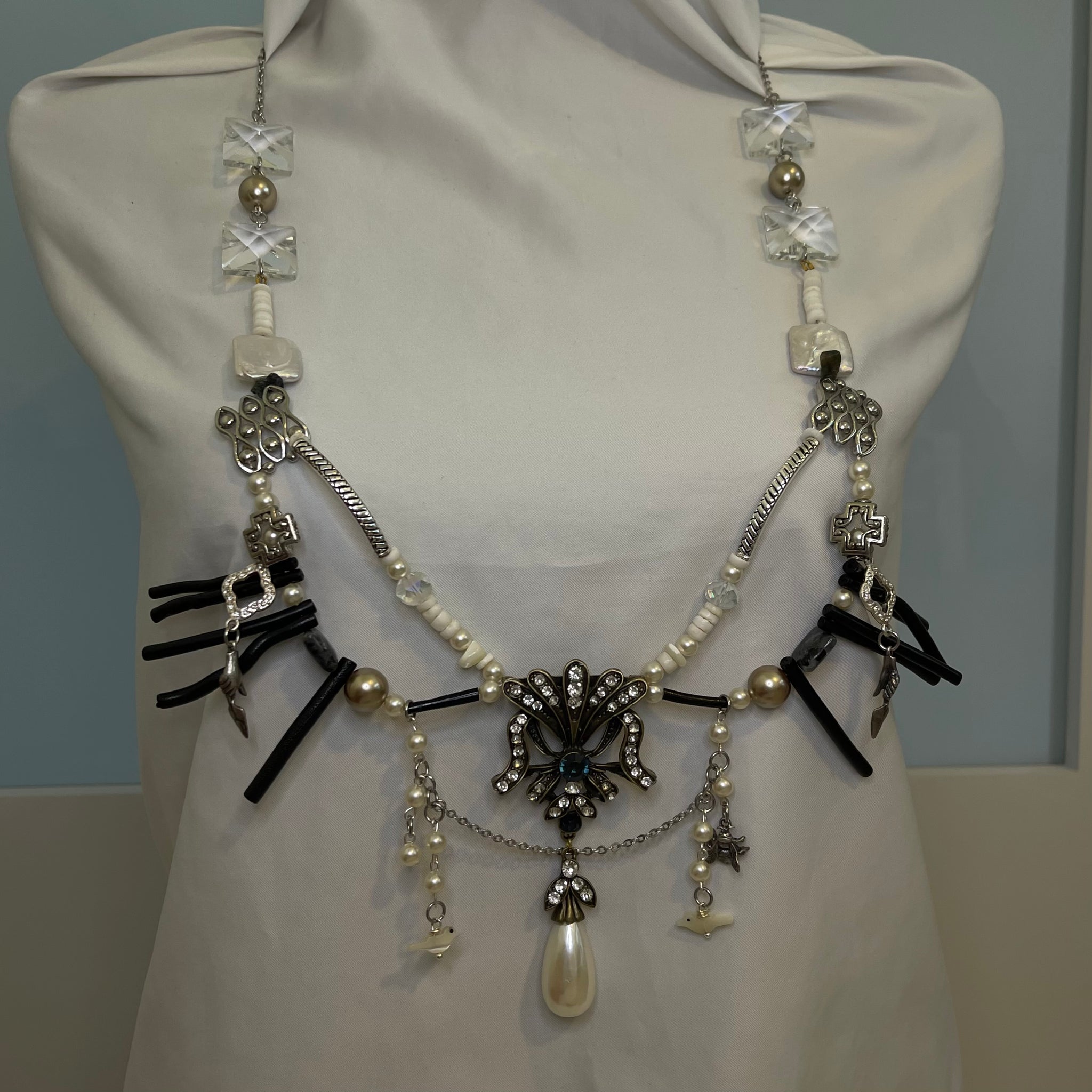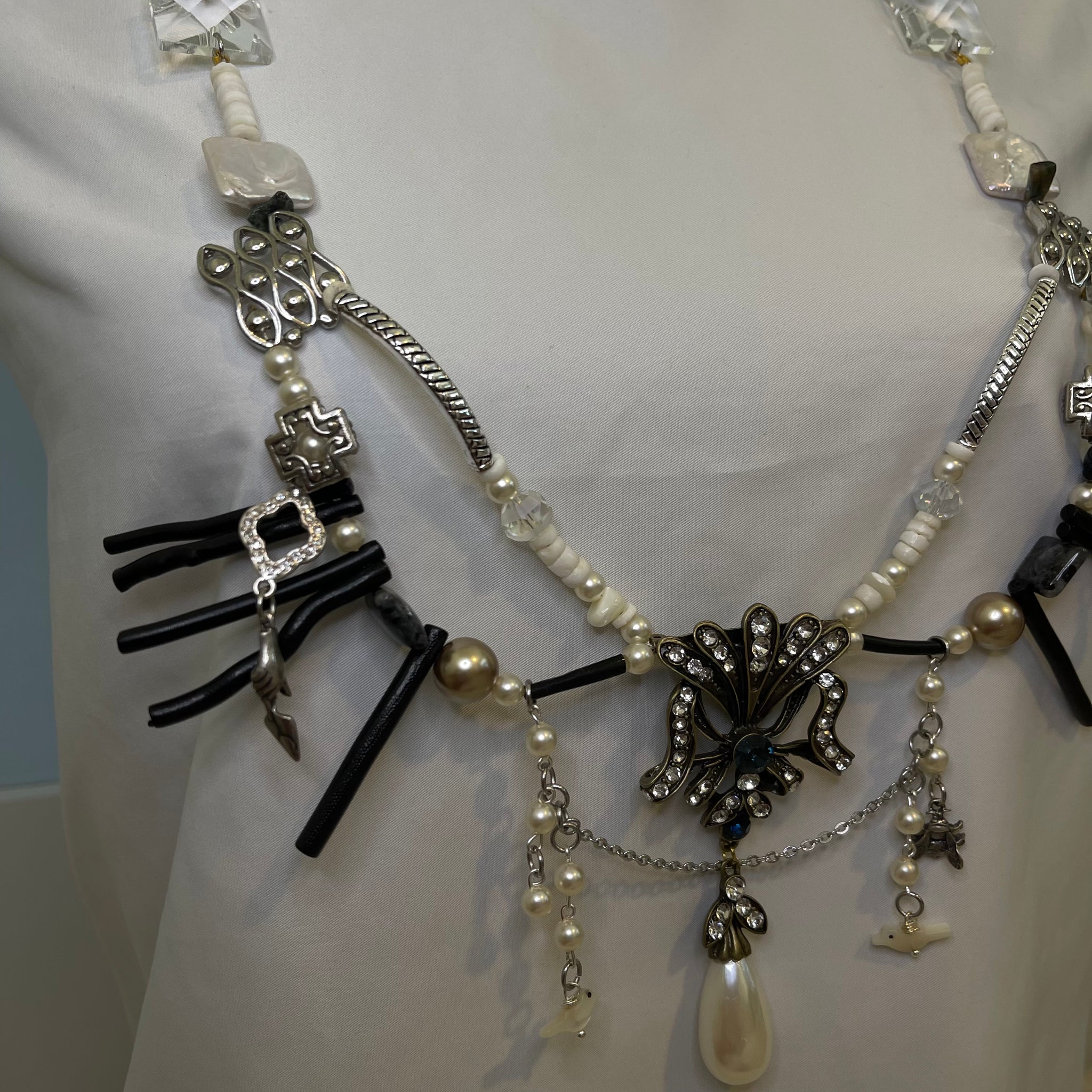 Made with: Rhodium, Metals, Glass, Chandelier glass, Shells, Mother of pearl and Freshwater pearls.