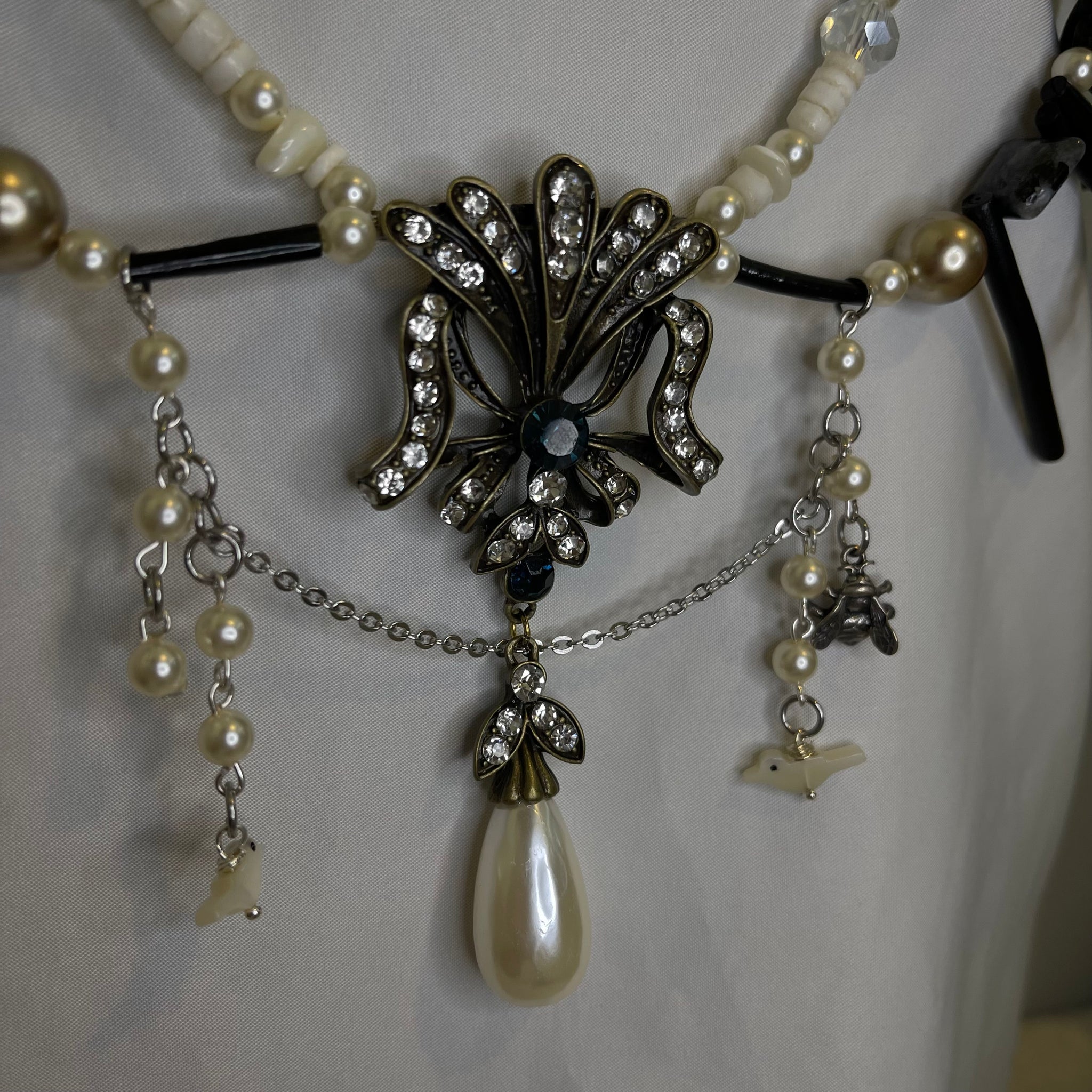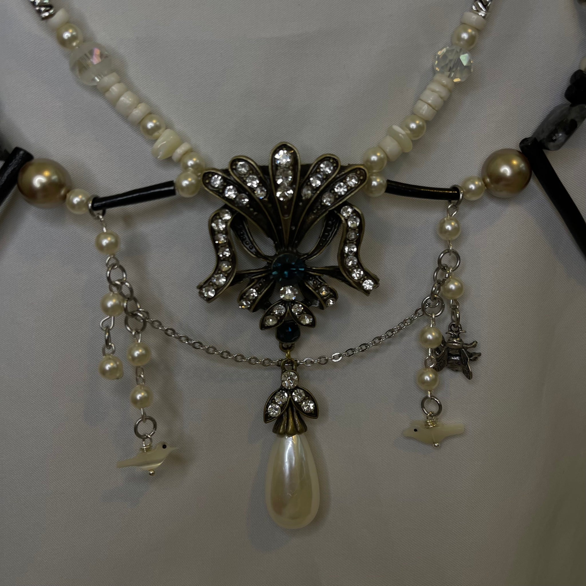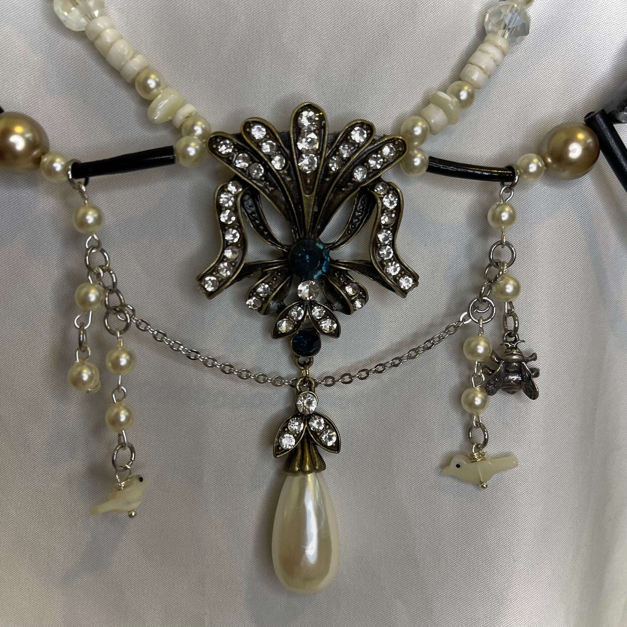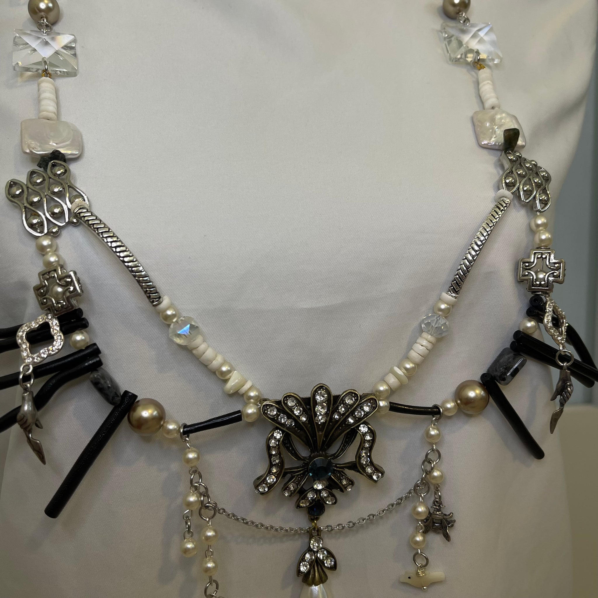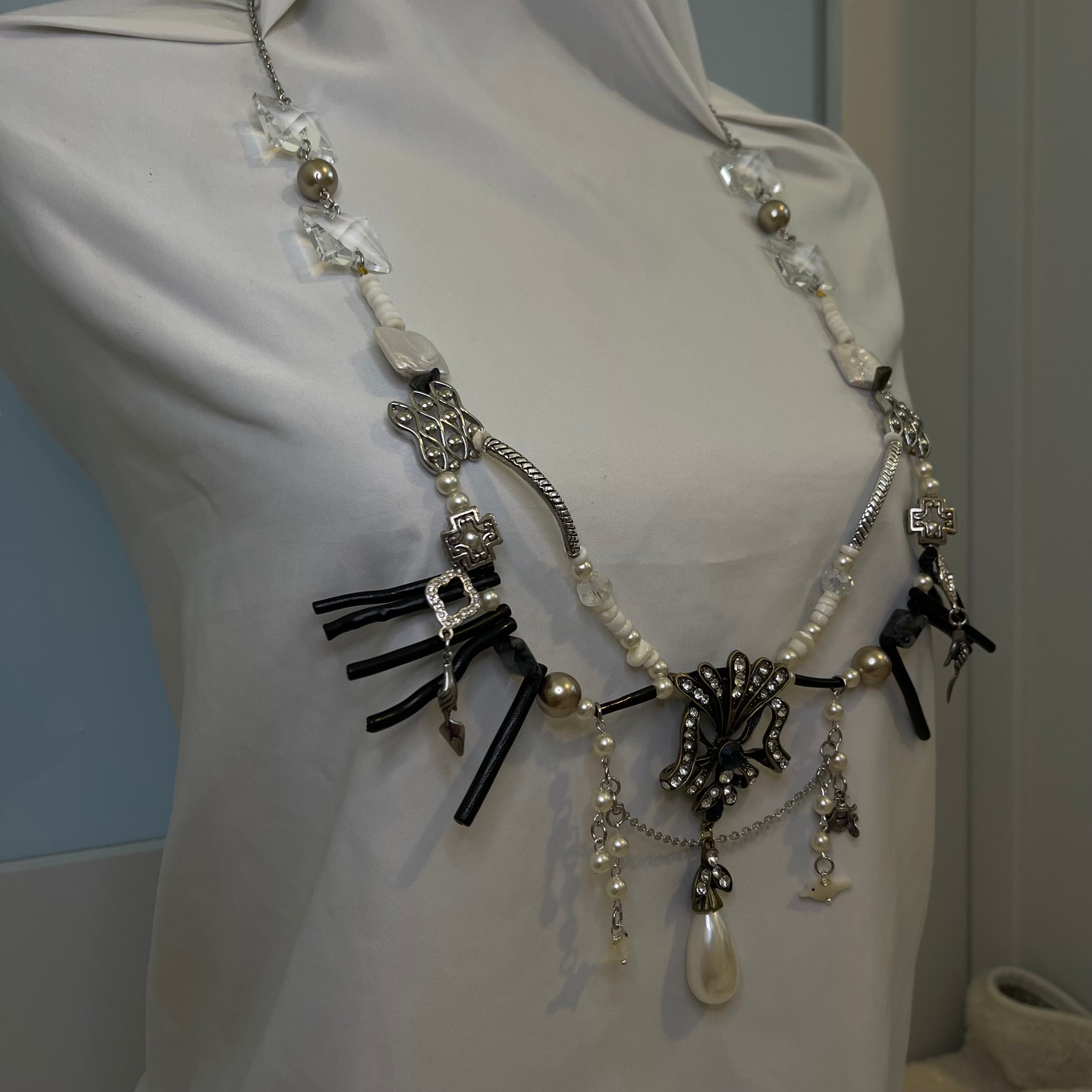 Made with: Rhodium, Metals, Glass, Chandelier glass, Shells, Mother of pearl and Freshwater pearls.