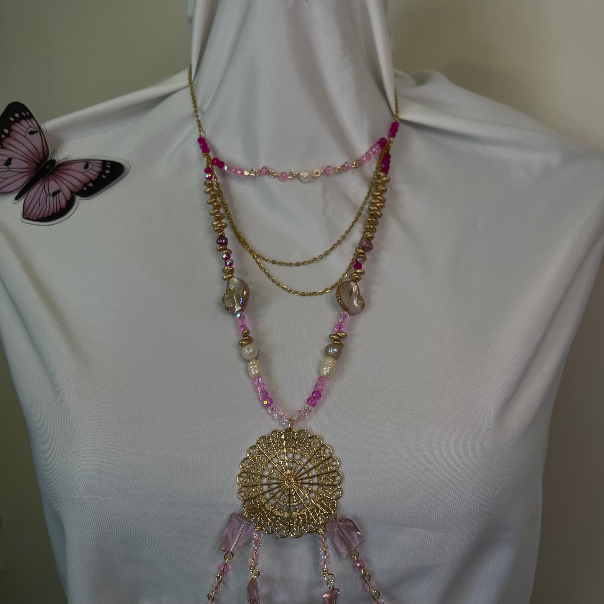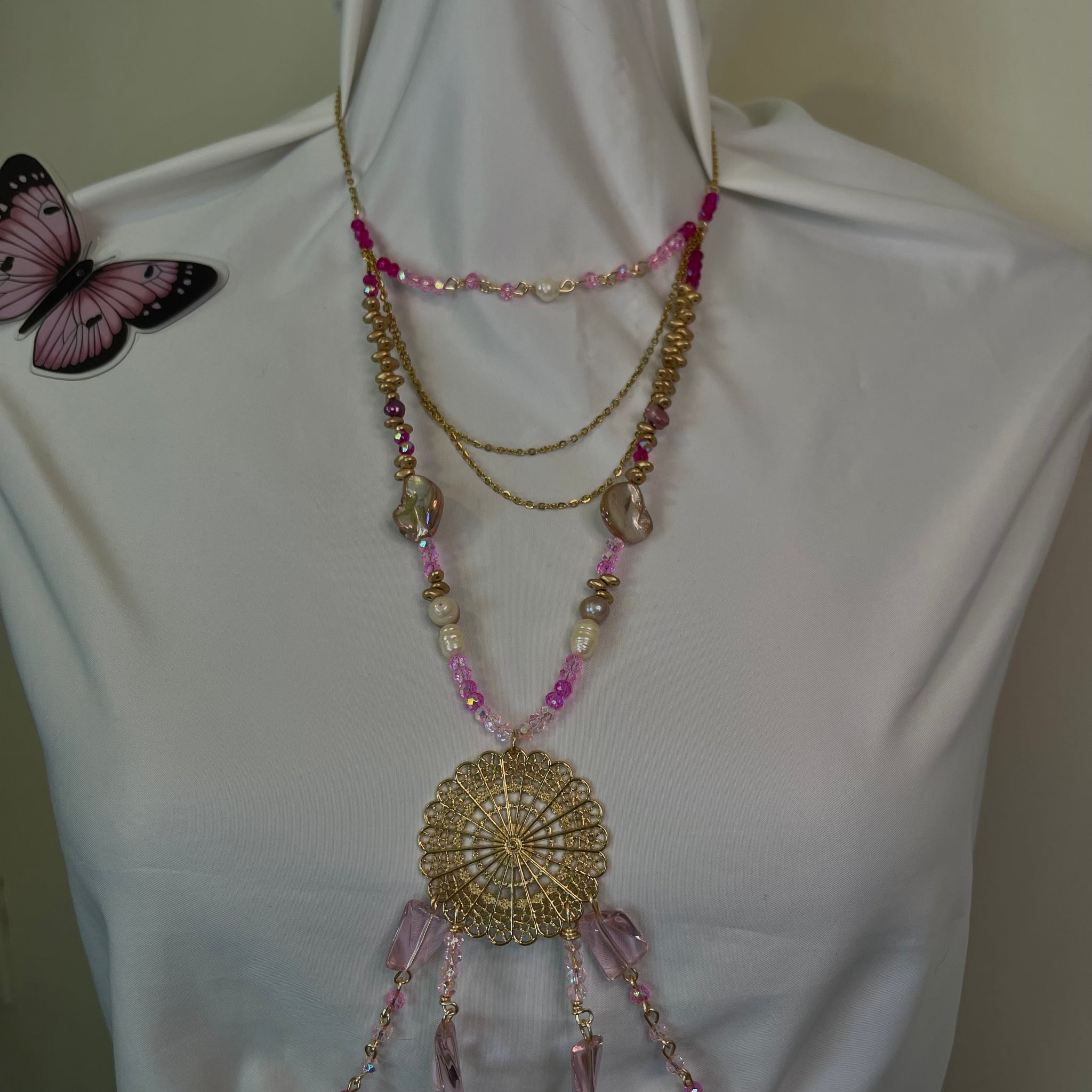 Made with: Freshwater pearls, Twisted Glass, Shell, Czech glass and Stainless steel.