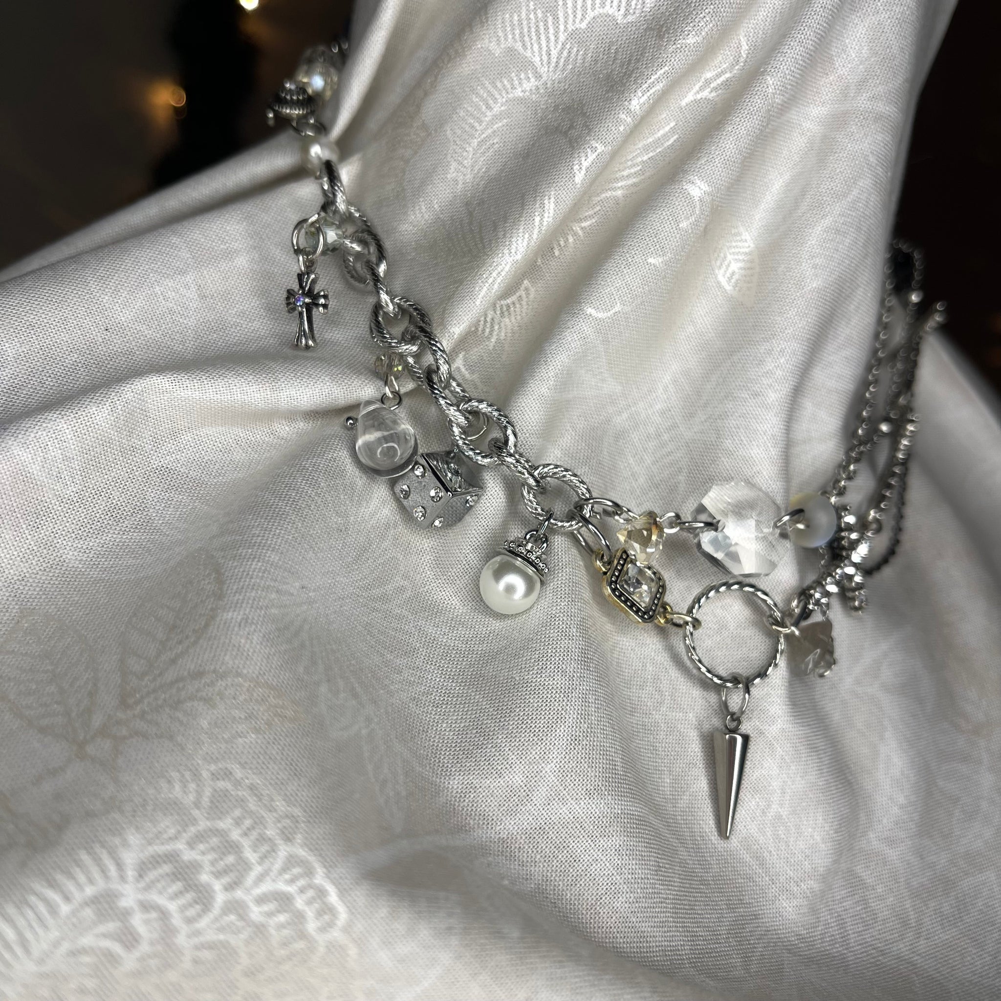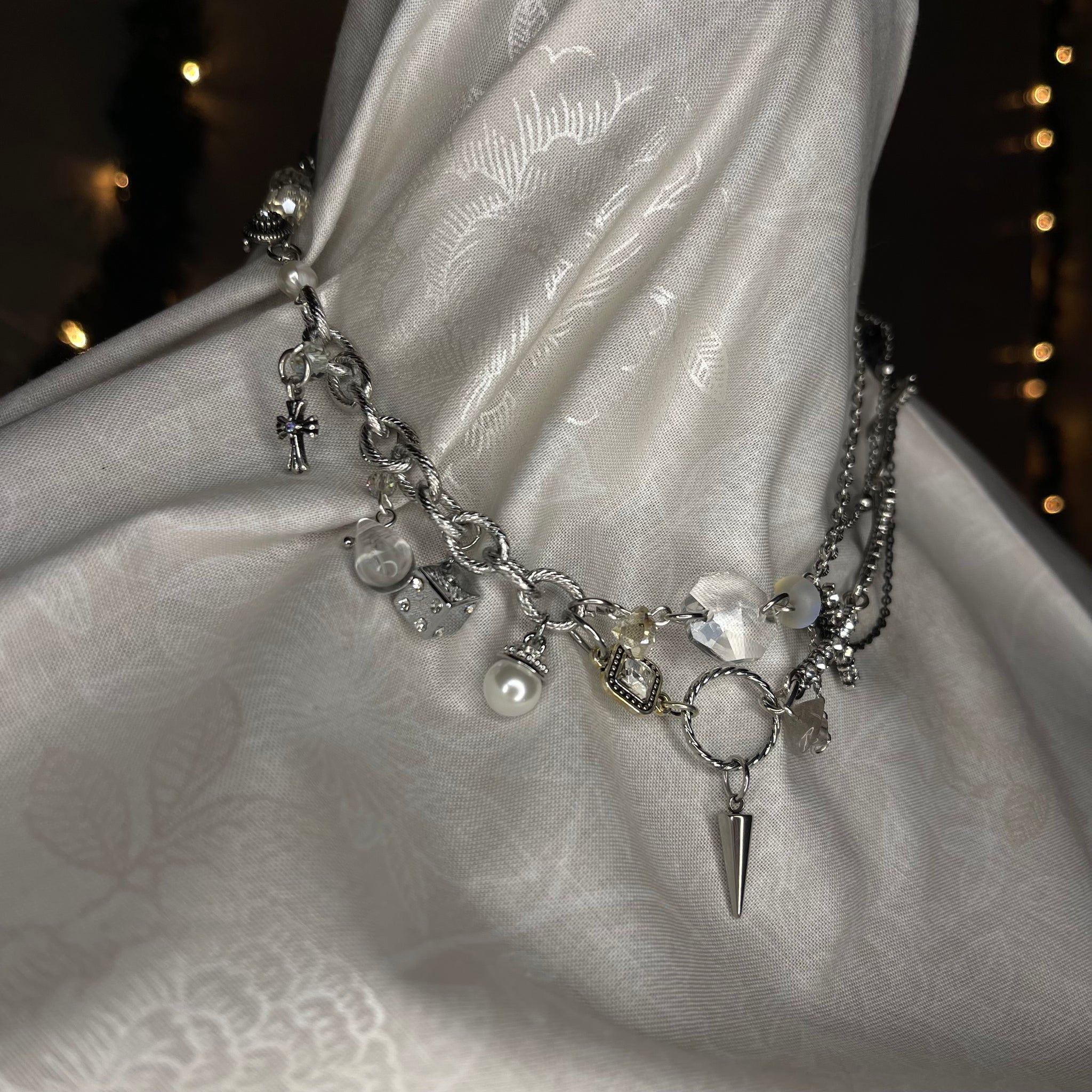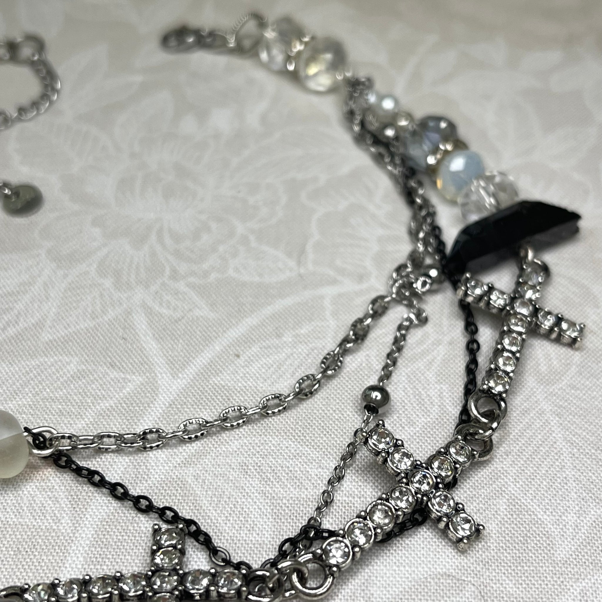 Made with: Stainless steel, Rhodium, Glass, Obsidian, Labradorite, opal, freshwater pearls and non tarnish metals.